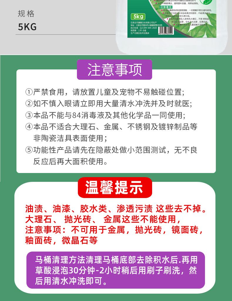 高浓度草酸瓷砖清洁剂强力去污水泥厕所地板砖外墙马桶除垢洁瓷剂