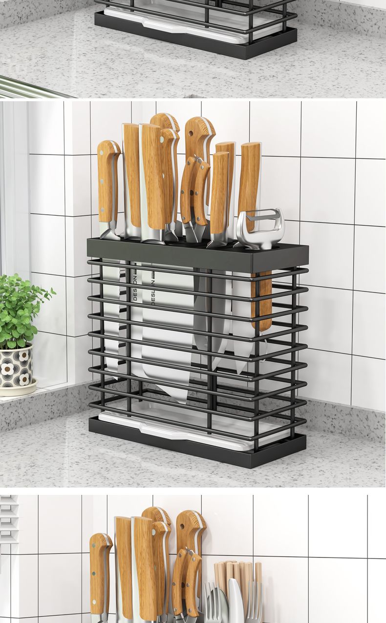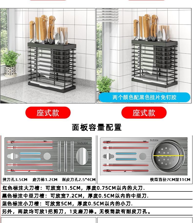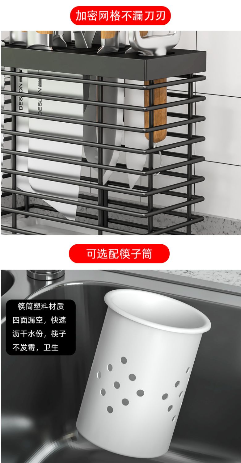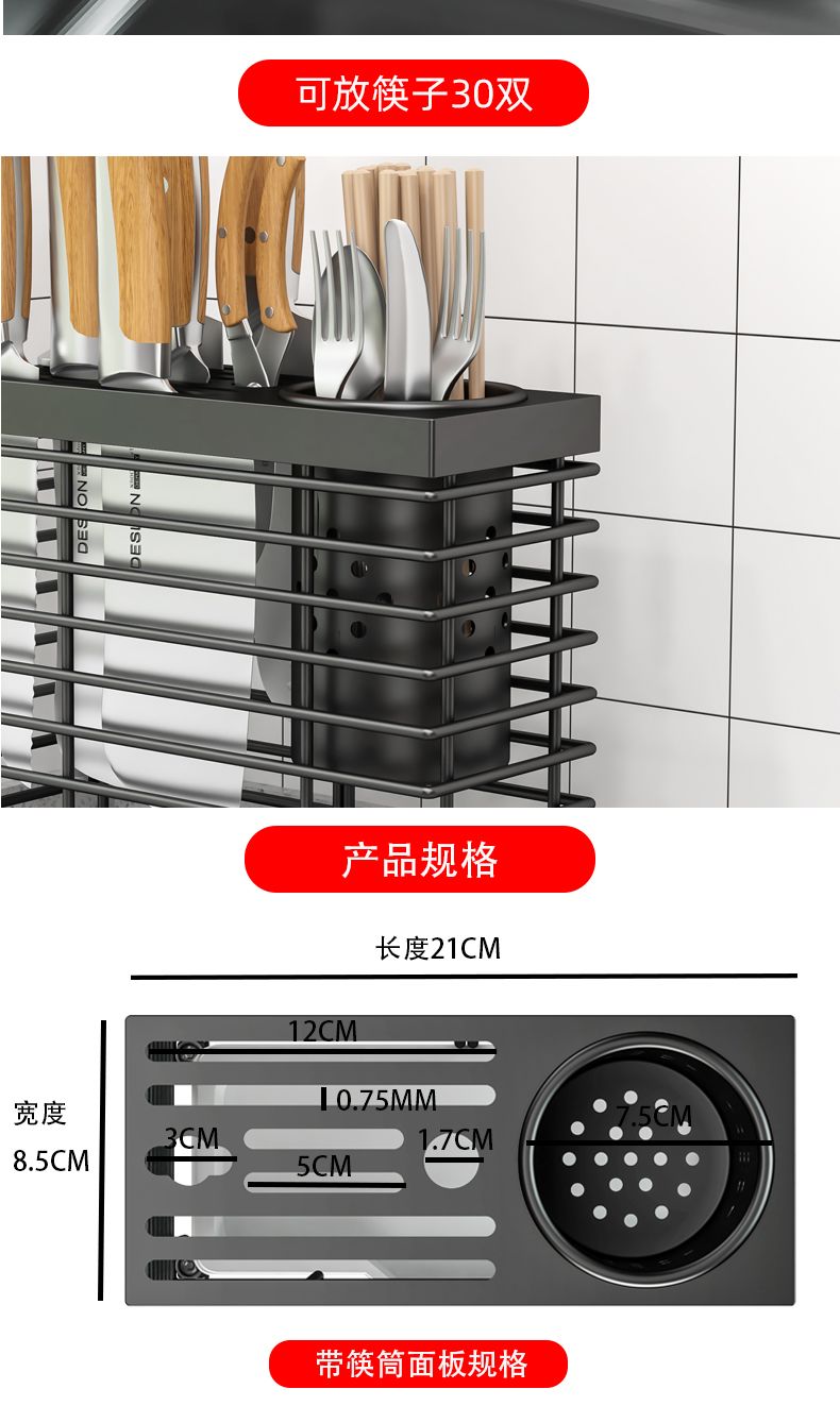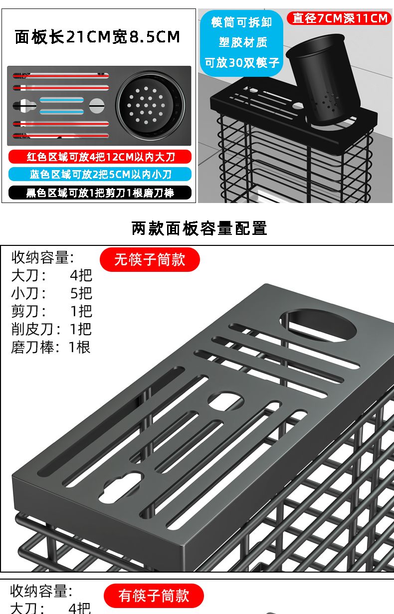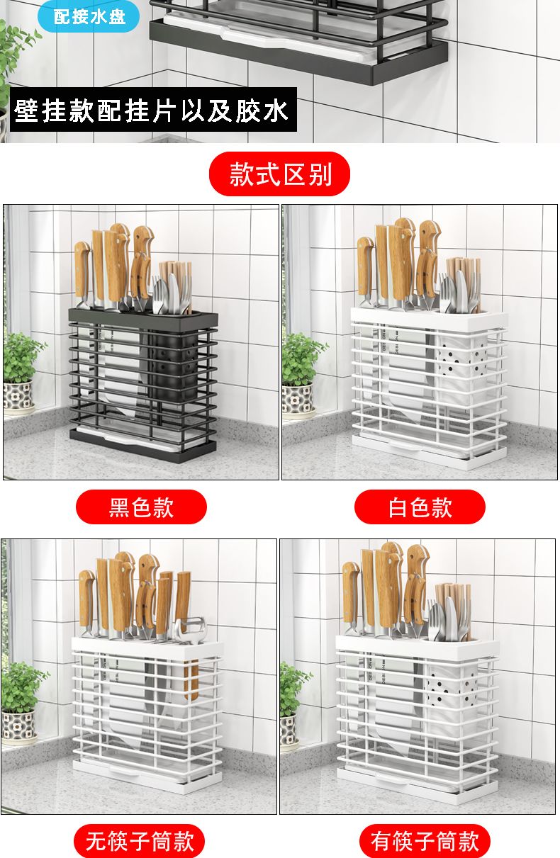 菜刀刀架一体筷子笼新款厨房多功能置物架刀具刀座配筷子筒免打孔