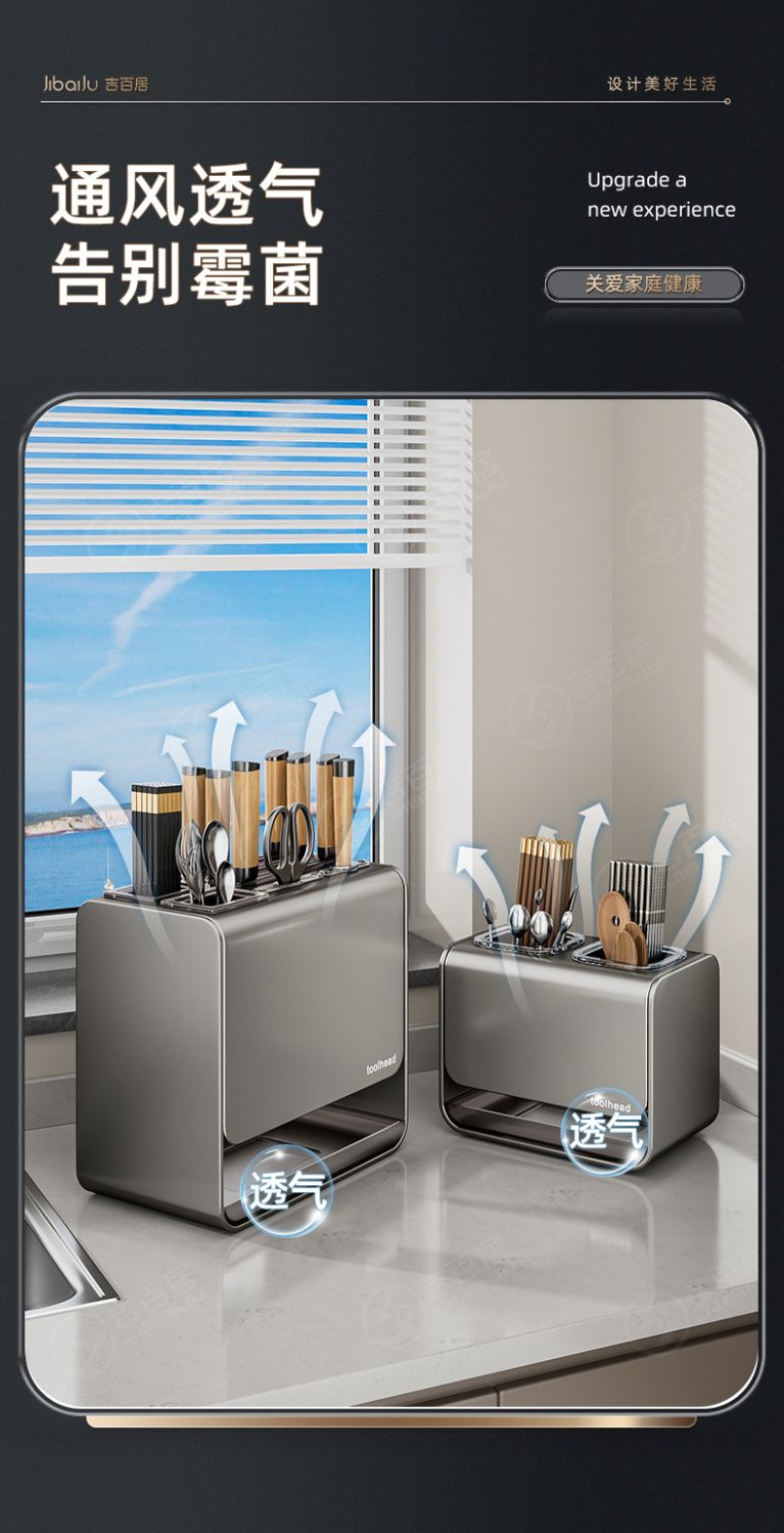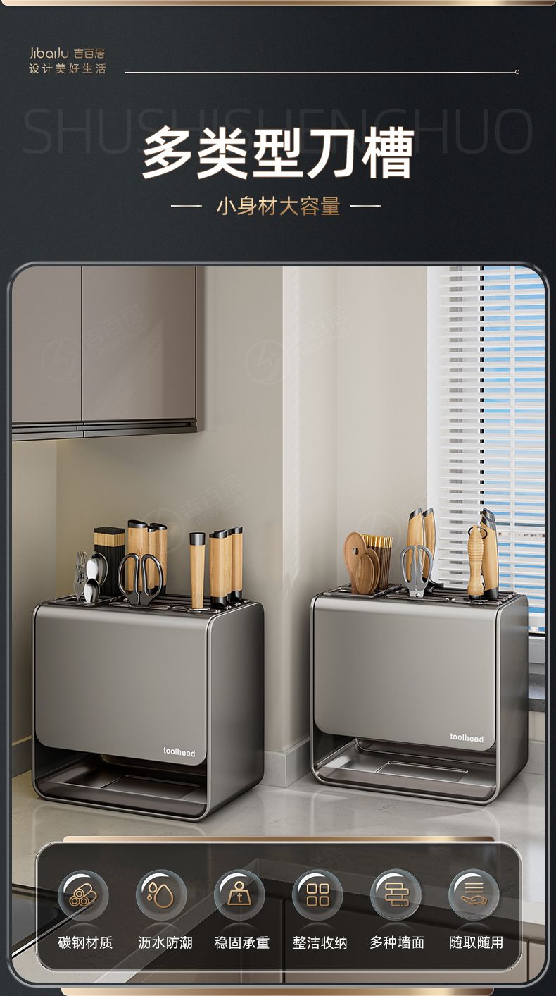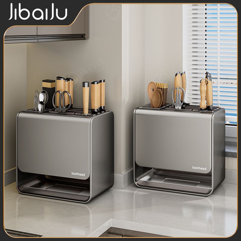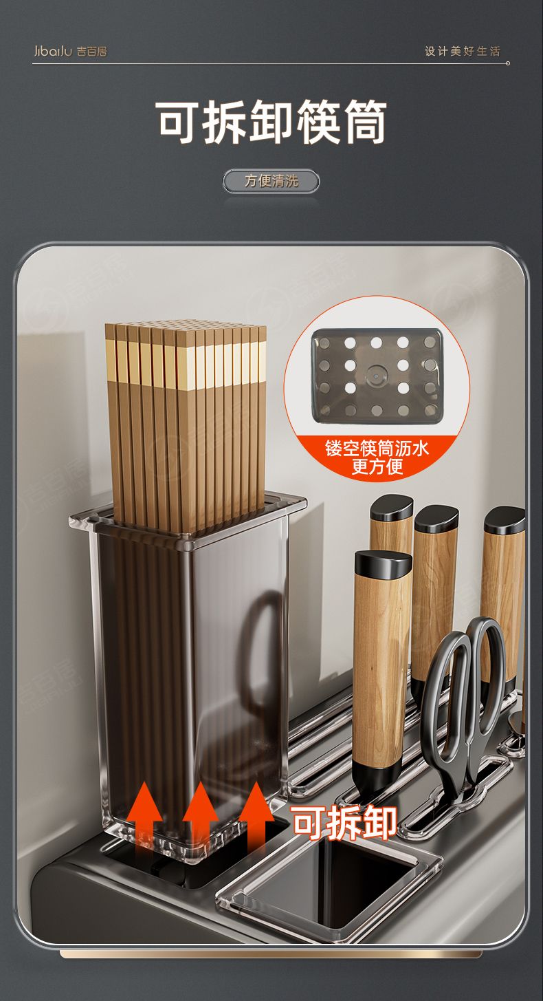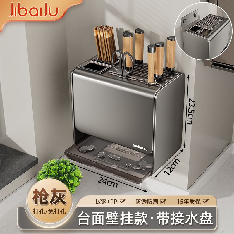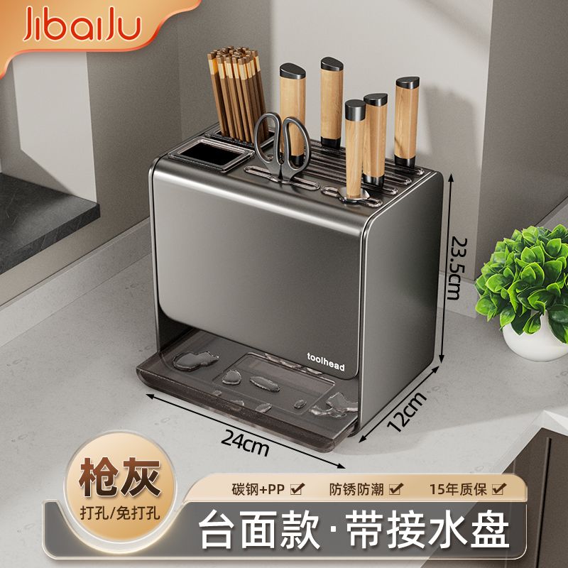 吉百居厨房台面刀架置物架免打孔多功能筷子勺子刀具一体收纳架子