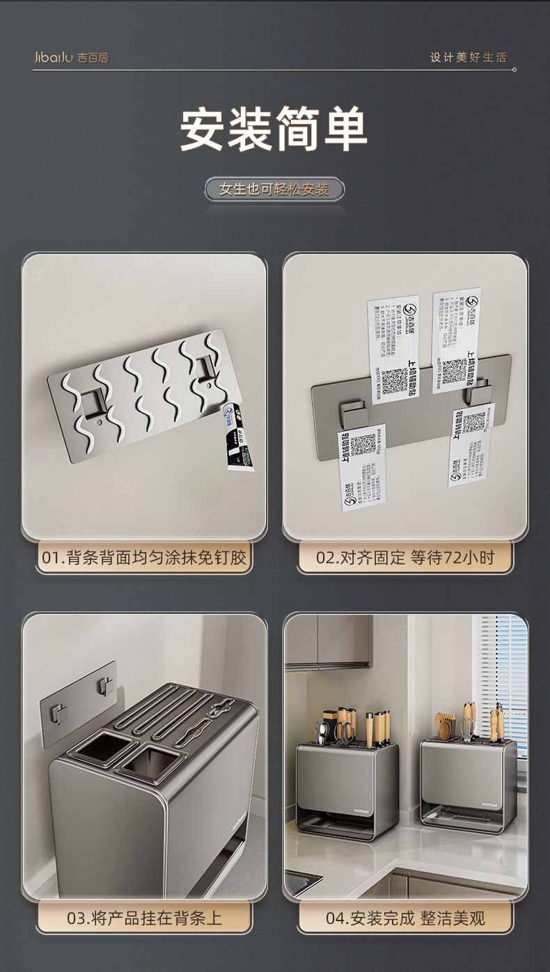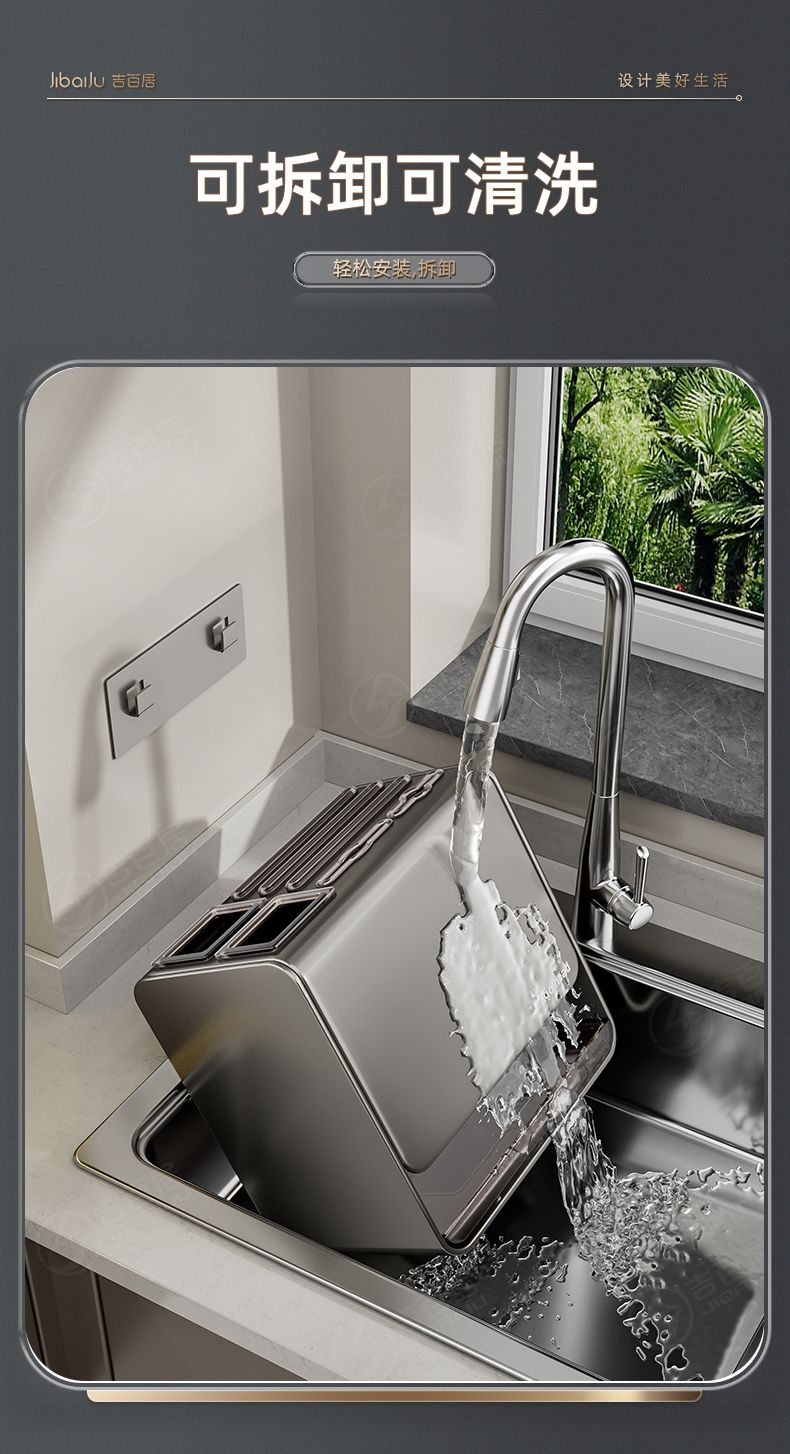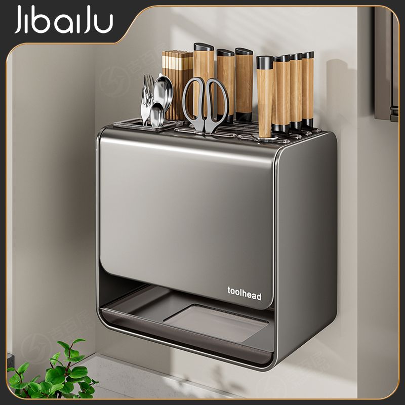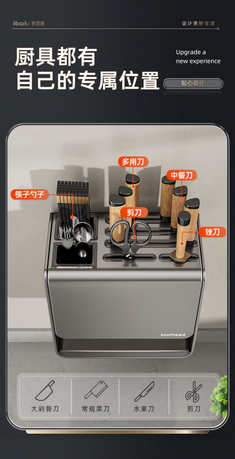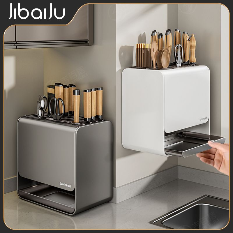 吉百居厨房台面刀架置物架免打孔多功能筷子勺子刀具一体收纳架子