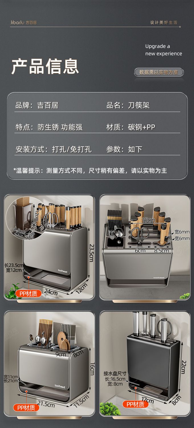| 流行灰 升级刀筷架加宽加厚-带接水盘 | USD $11.72 | 99999 piece available |