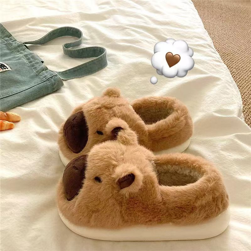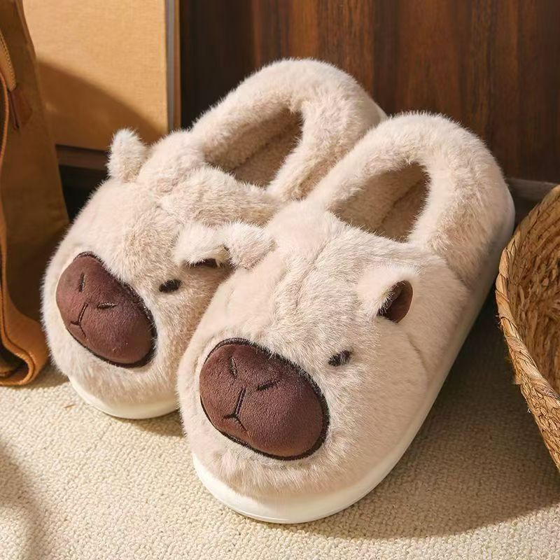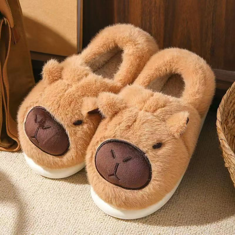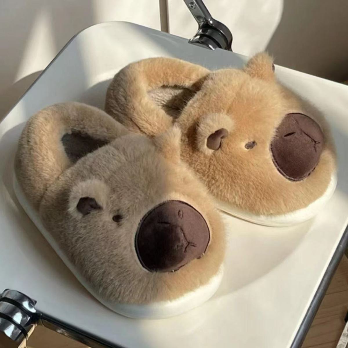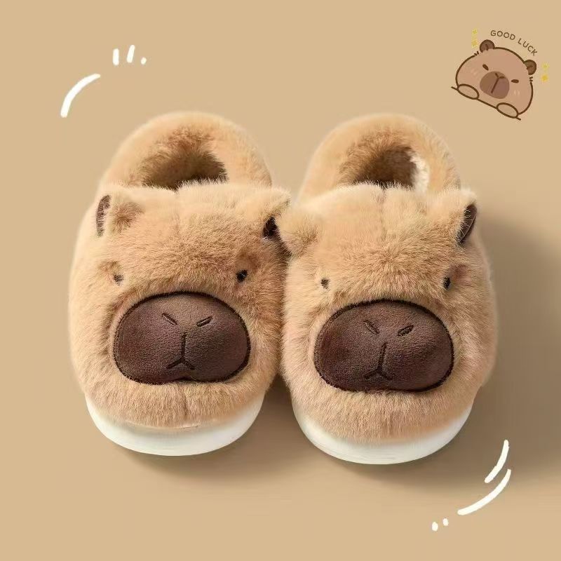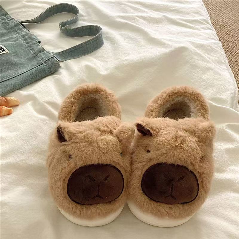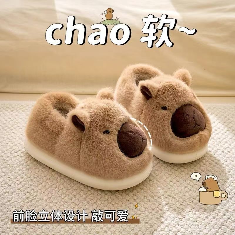 懒懒小水豚~!卡皮巴拉ins毛茸茸保暖包头棉拖鞋女冬季毛毛拖鞋潮