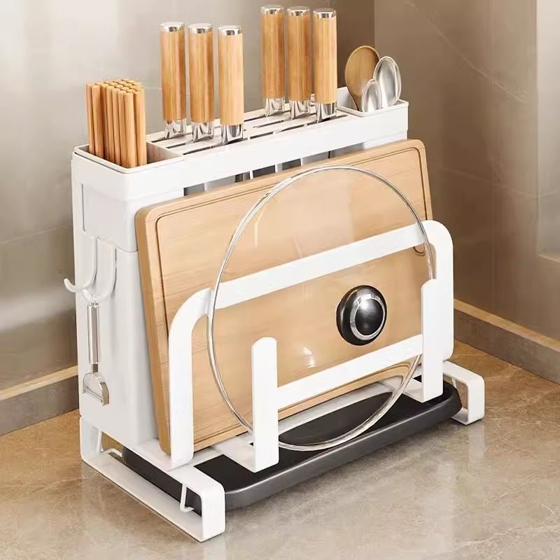 | white【 double barrel] + chopping board rack + pot cover rack + hook(白色【双筒】+砧板架+锅盖架+挂钩) | USD $9.33 | 99999 piece available |