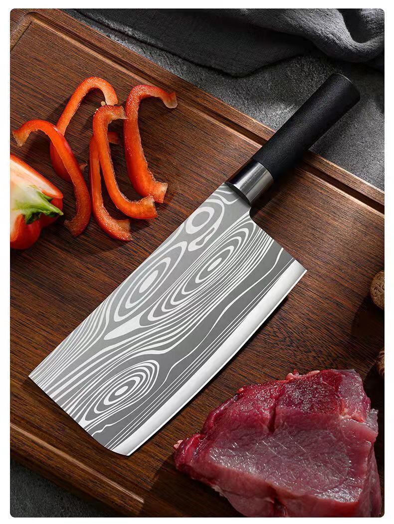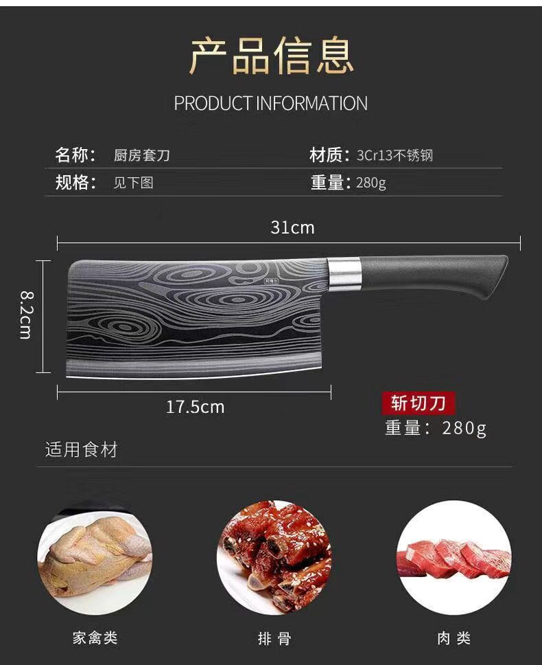 | black knife holder with laser pattern kitchen knife(黑色刀架送激光纹菜刀) | USD $2.51 | 99999 piece available |