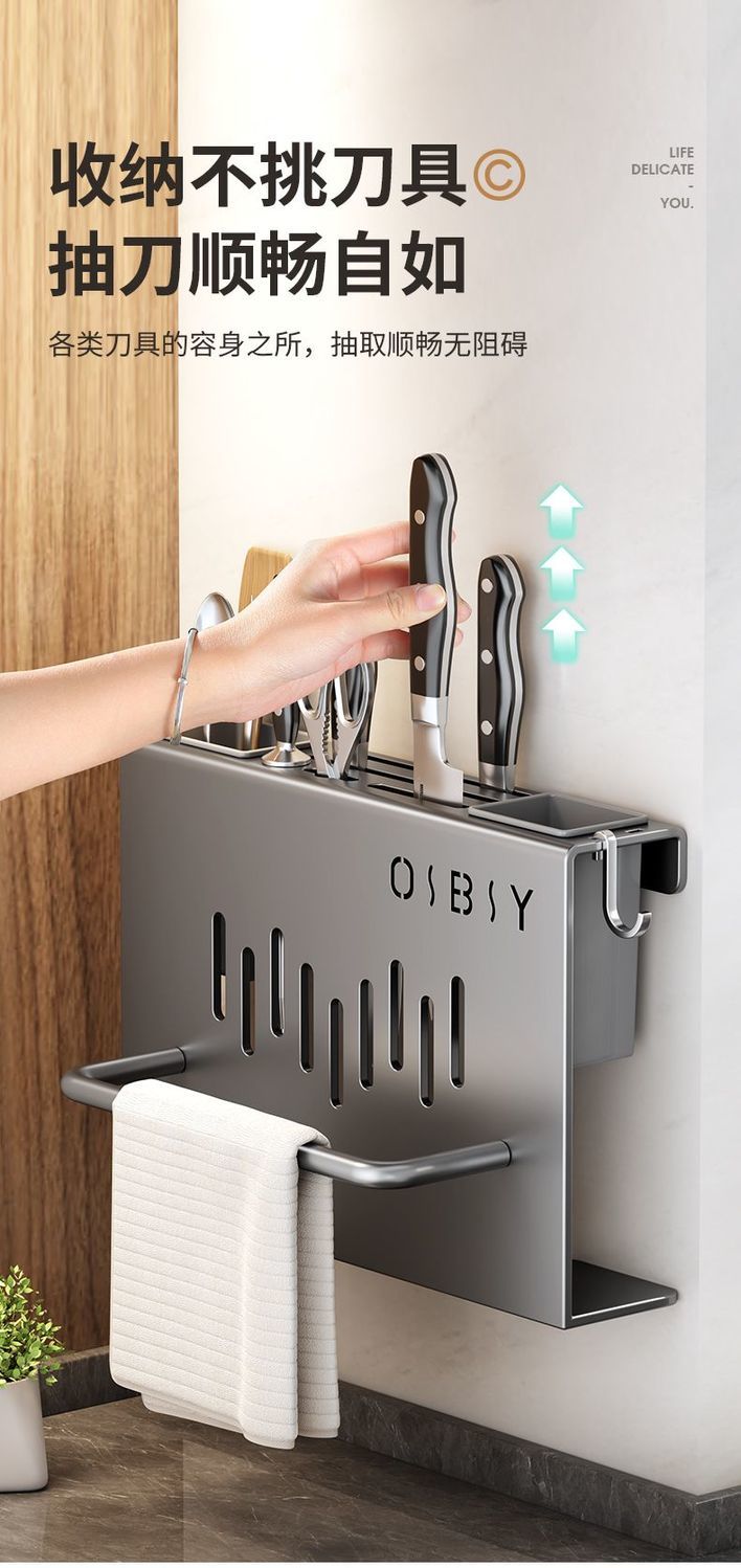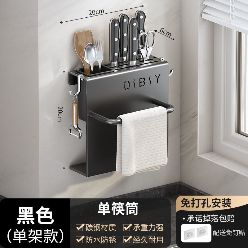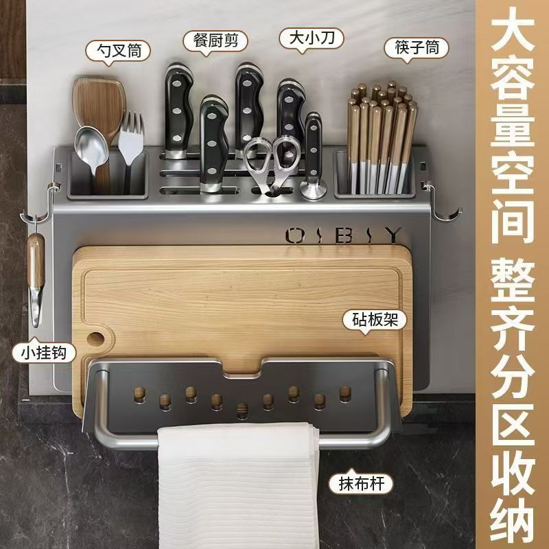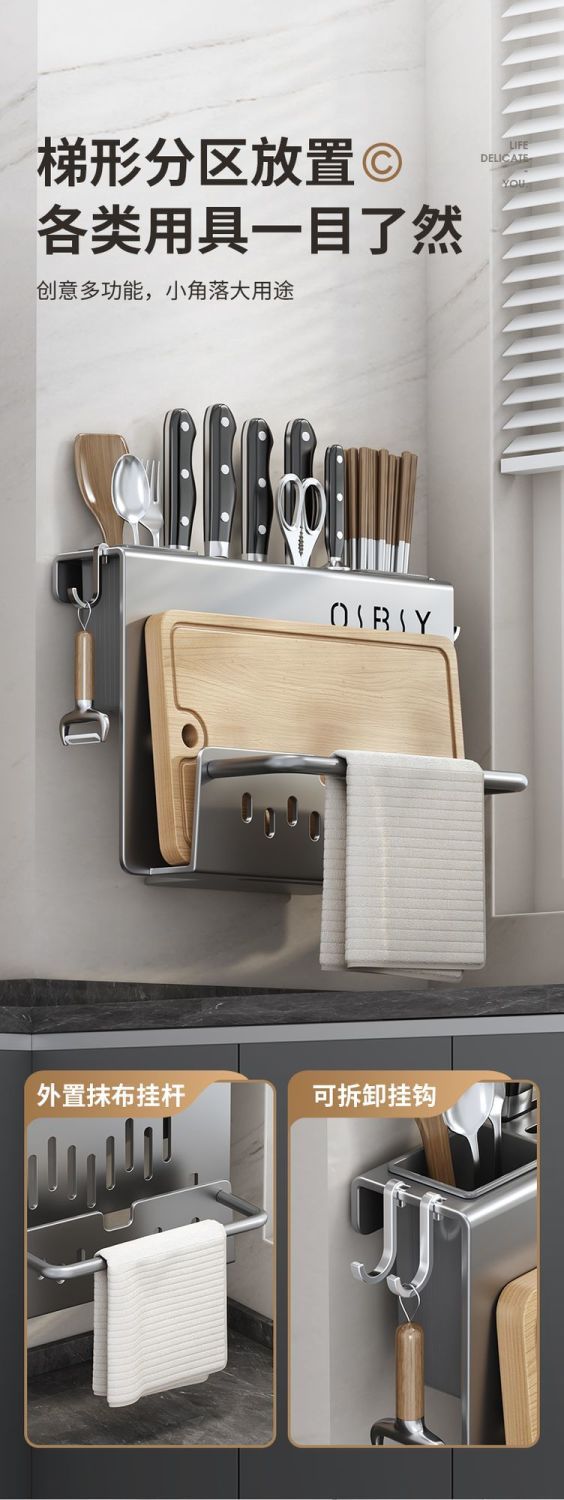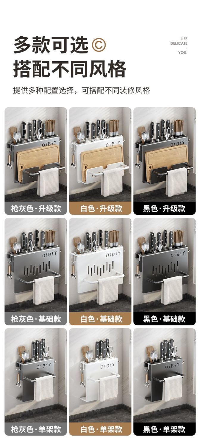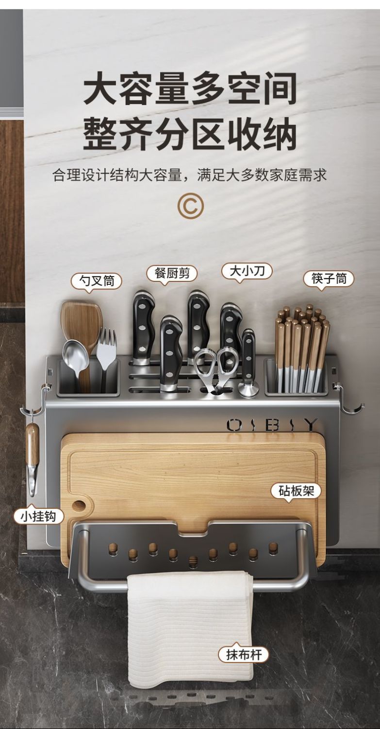 刀架置物架厨房免打孔壁挂一体式筷子筒砧板刀具抹布多功能收纳架