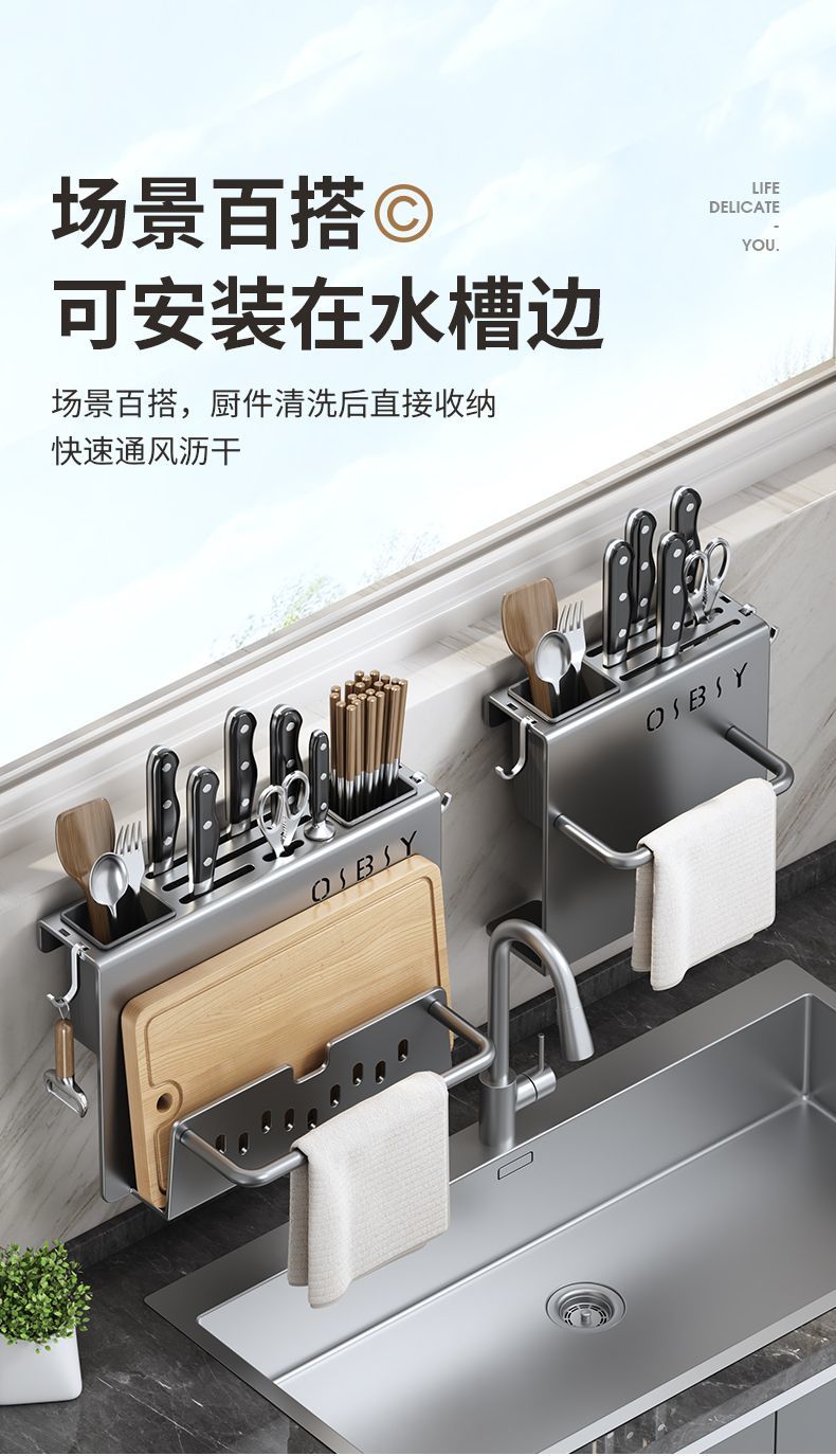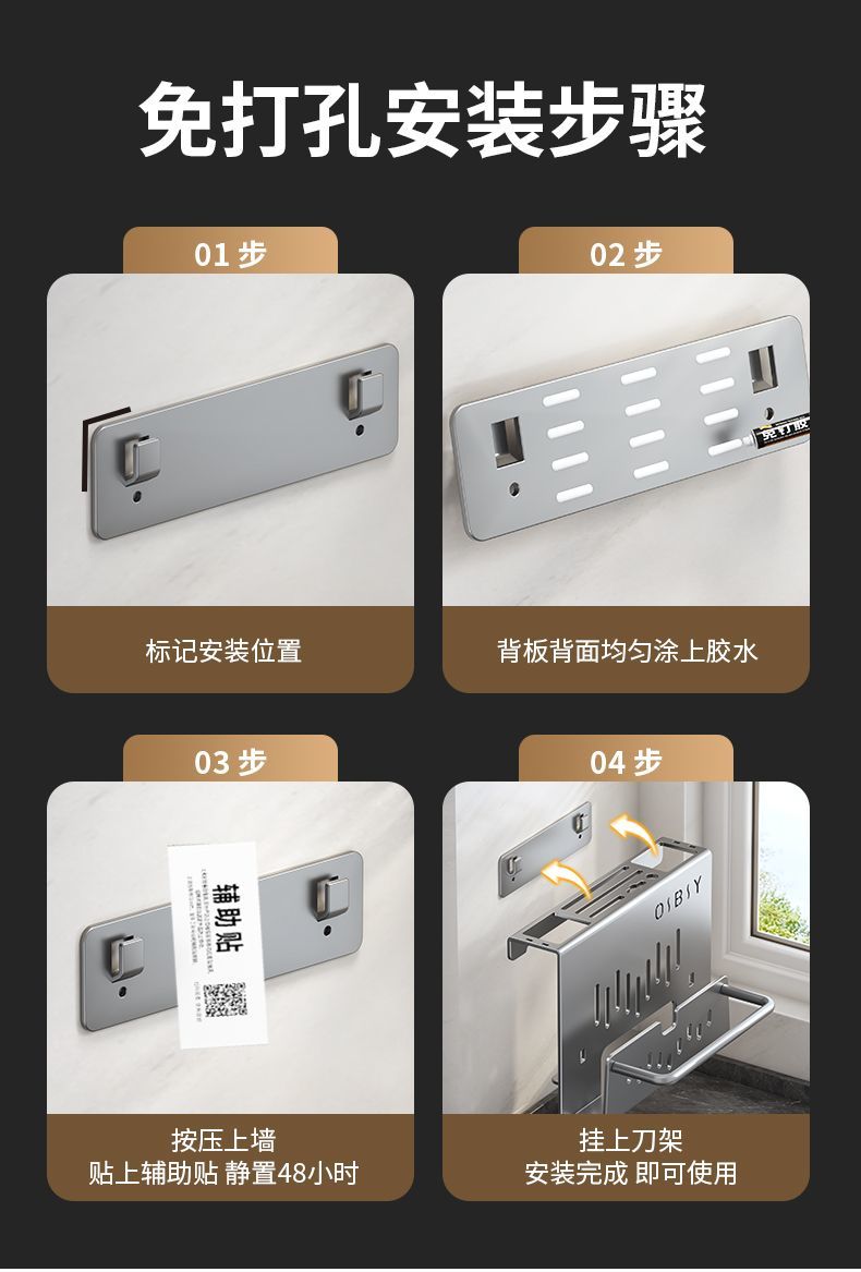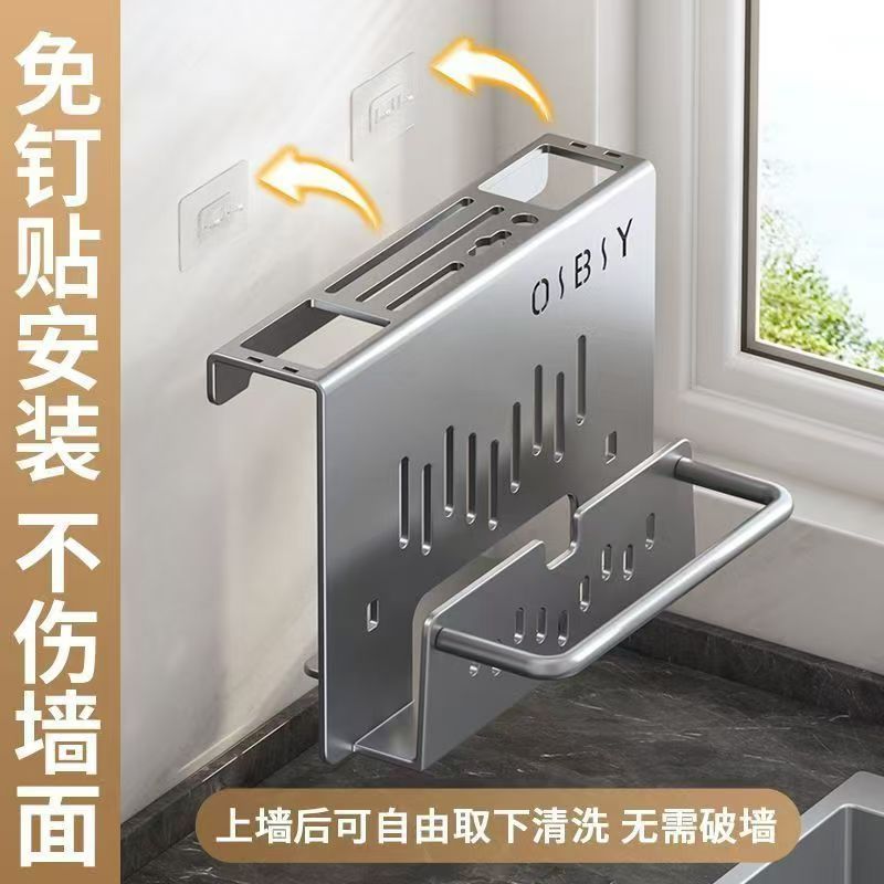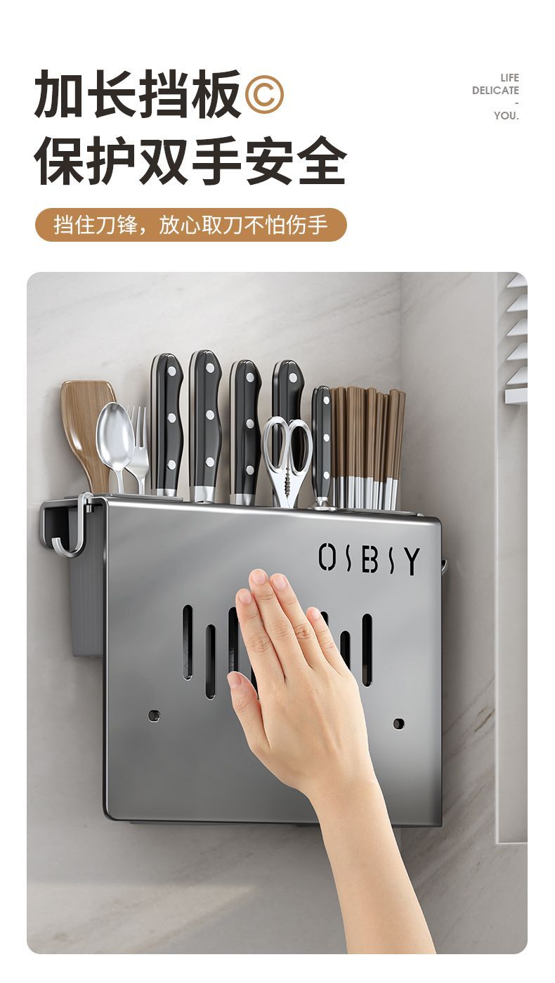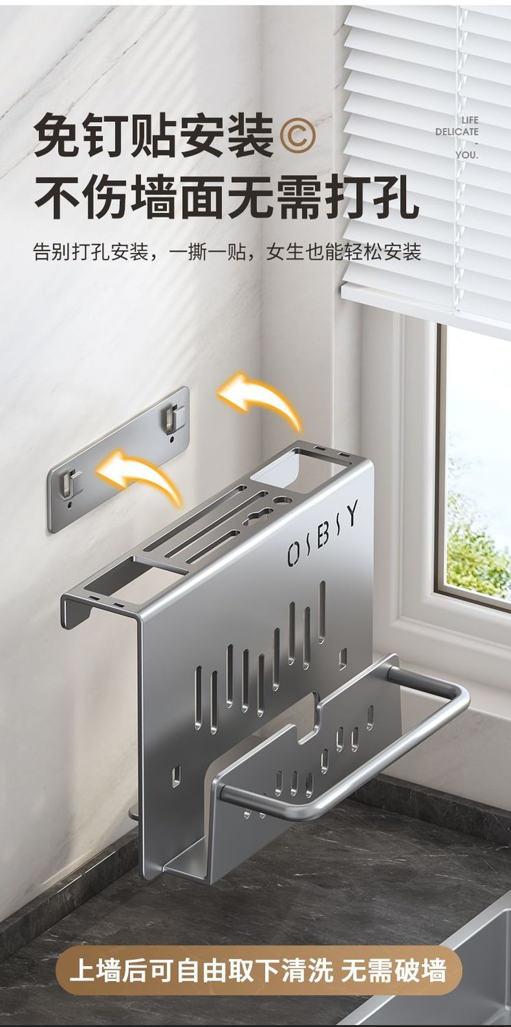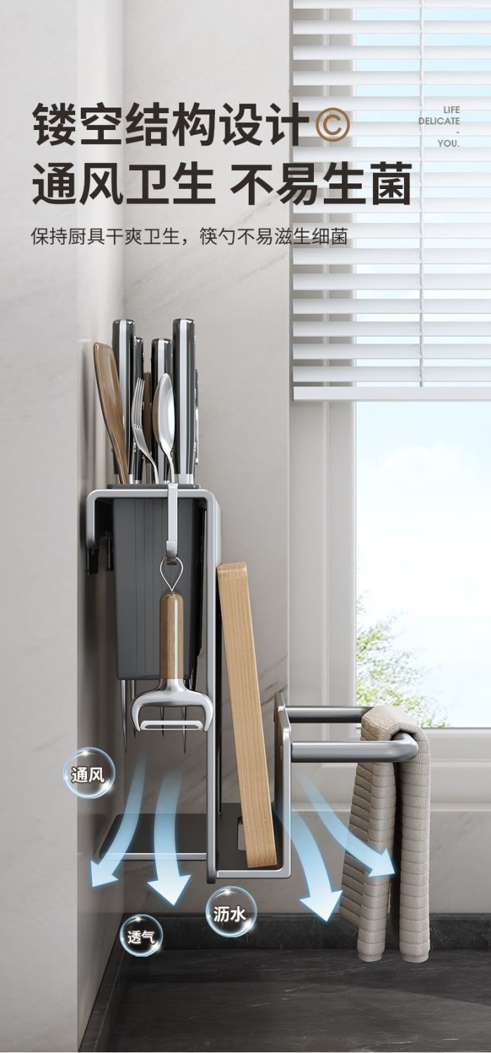 刀架置物架厨房免打孔壁挂一体式筷子筒砧板刀具抹布多功能收纳架