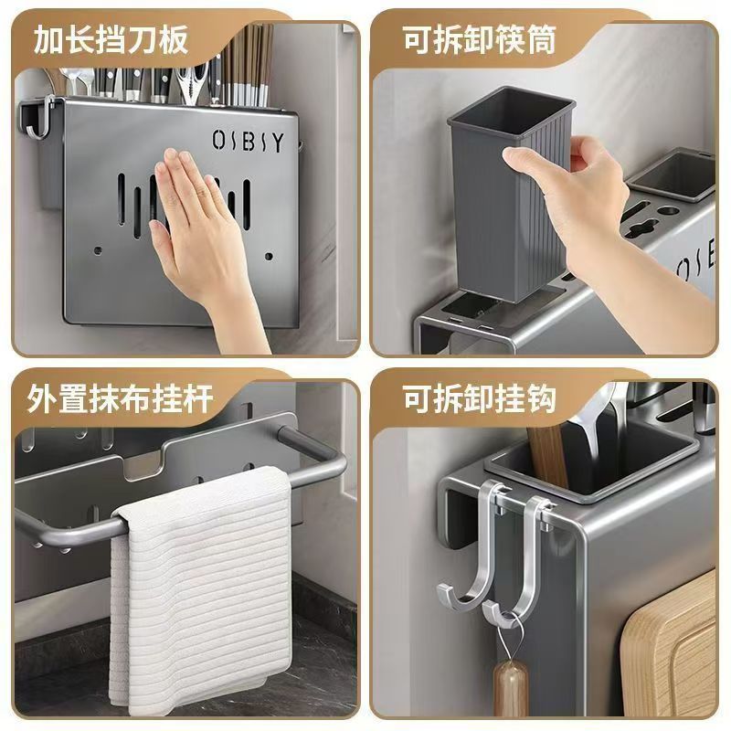 | 大号灰色【刀架+毛巾夹+筷子桶*2+砧板夹】 | USD $7.81 | 99999 piece available |