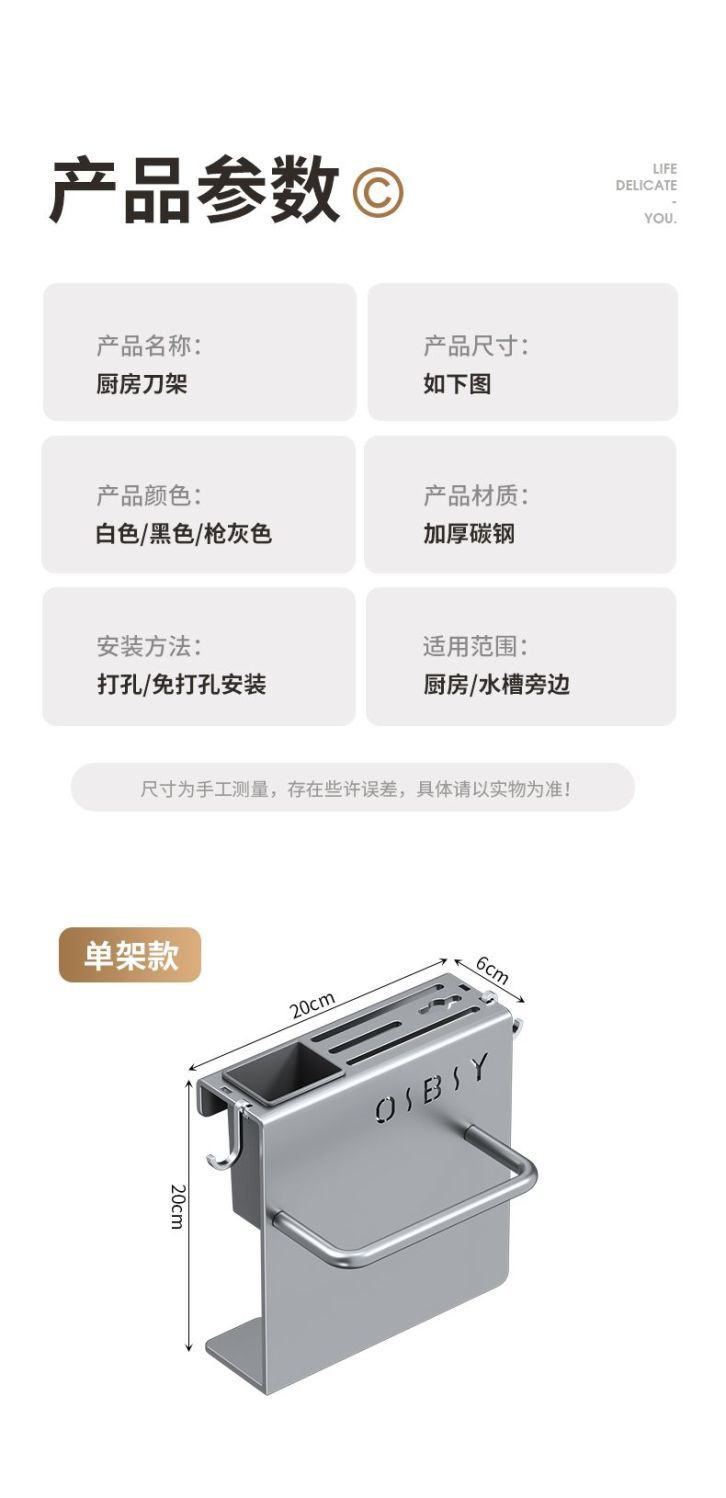| 大号黑色【刀架+毛巾夹+筷子桶*2+砧板夹】 | USD $7.81 | 99999 piece available |
