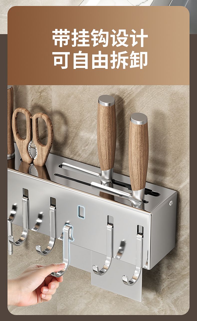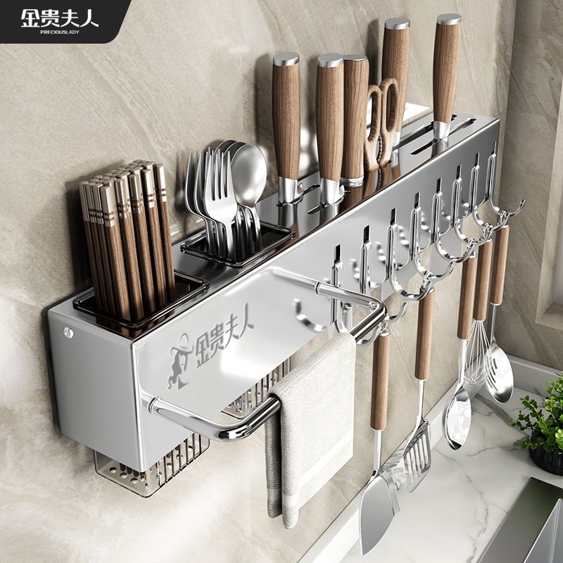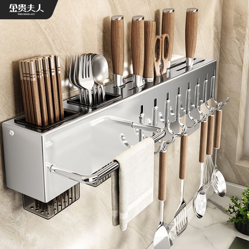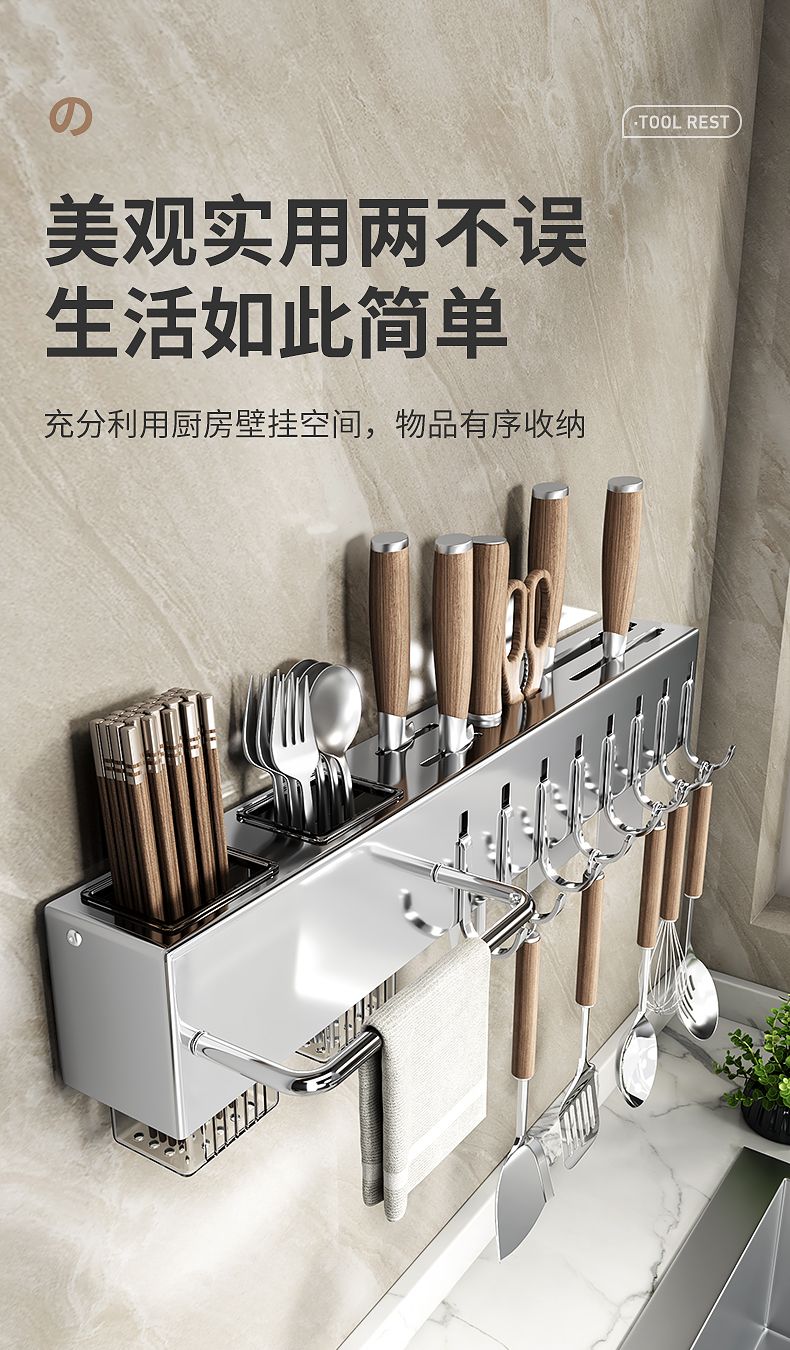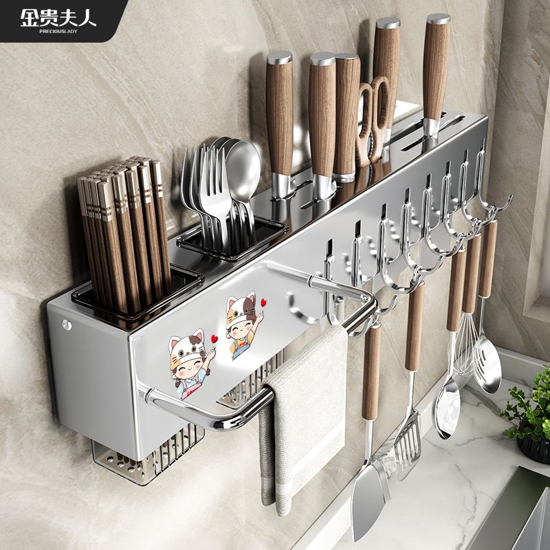 304不锈钢刀架厨房置物架壁挂式免打孔筷子筒筷笼一体刀具收纳架