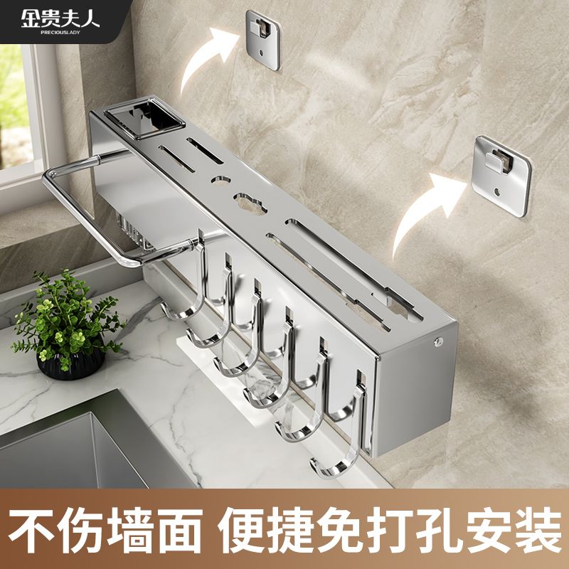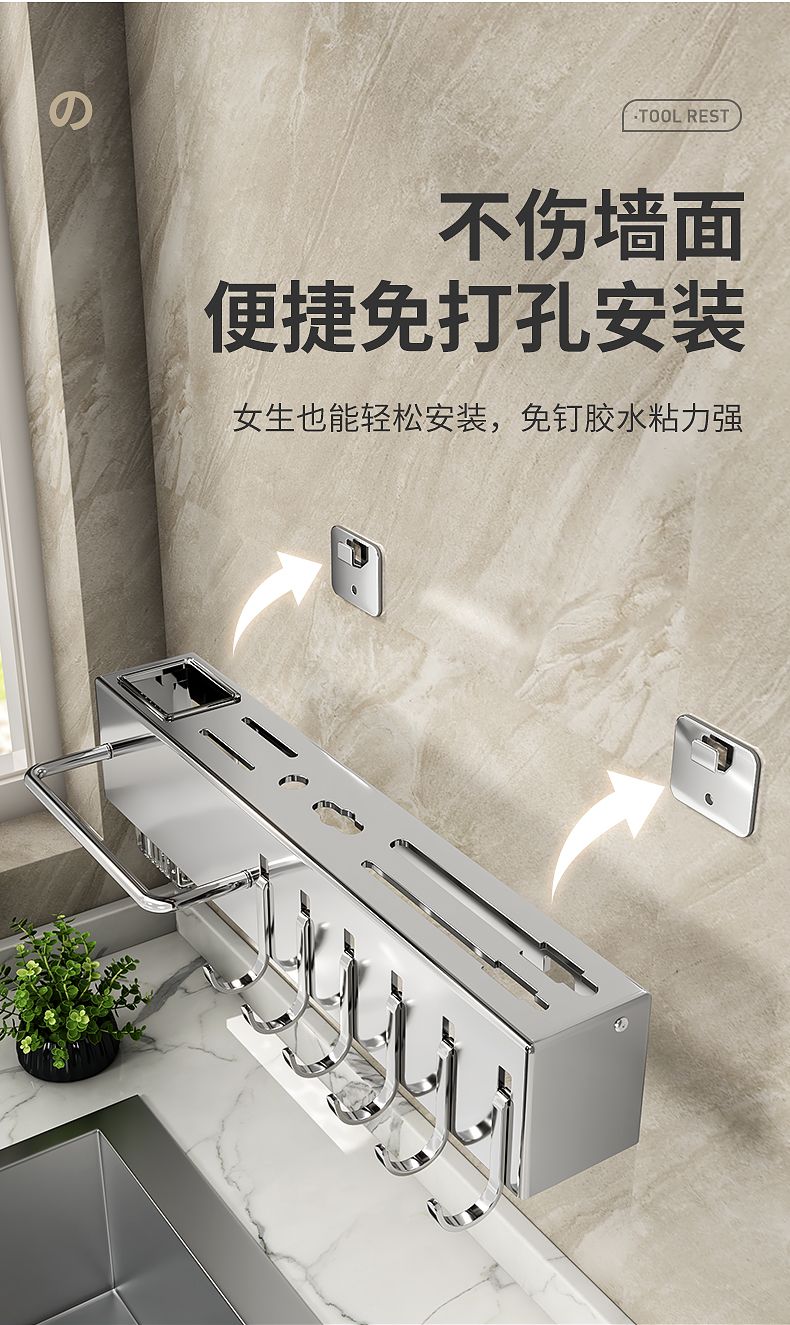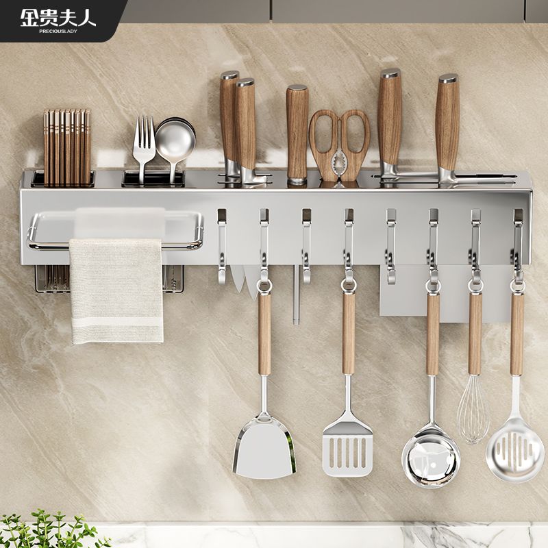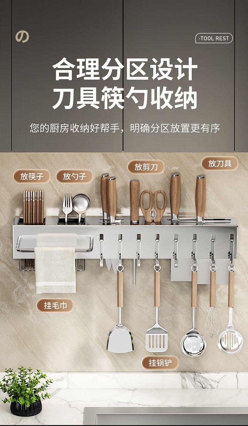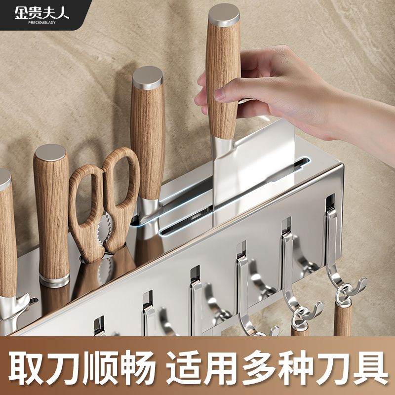 304不锈钢刀架厨房置物架壁挂式免打孔筷子筒筷笼一体刀具收纳架