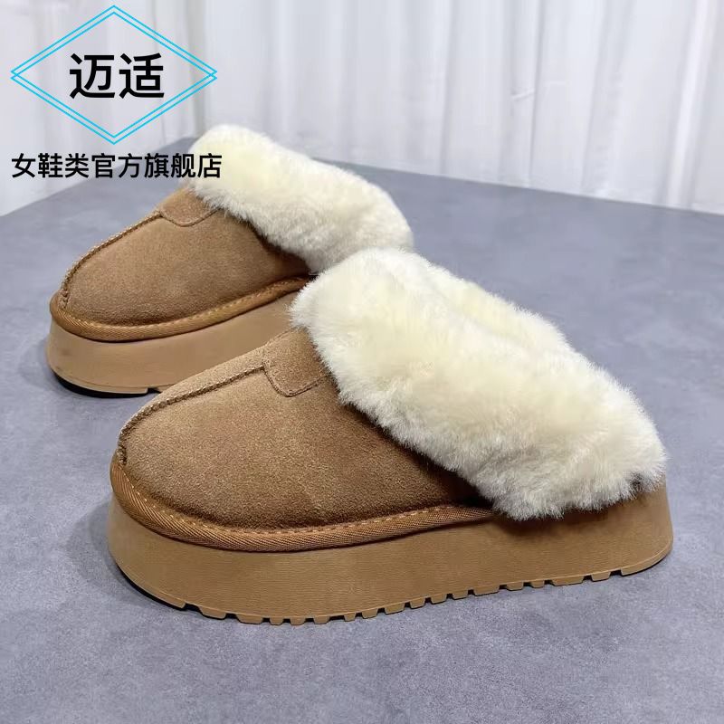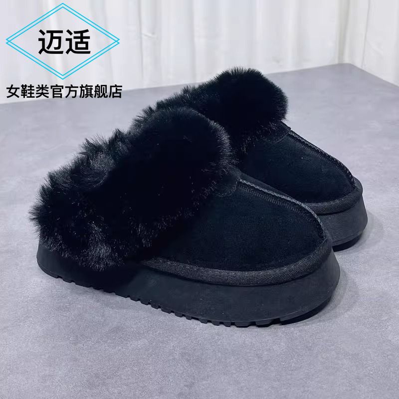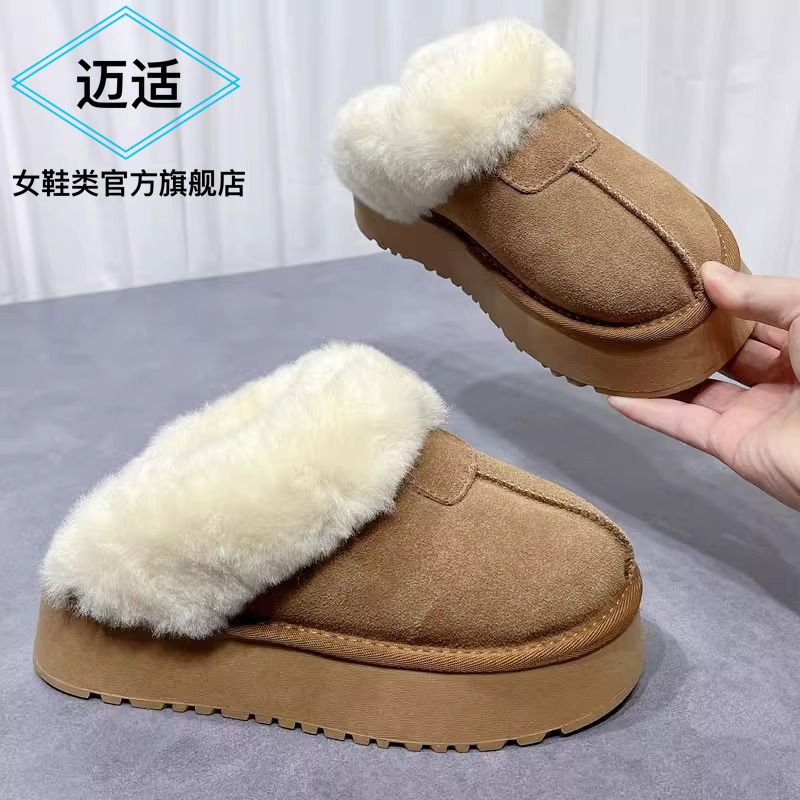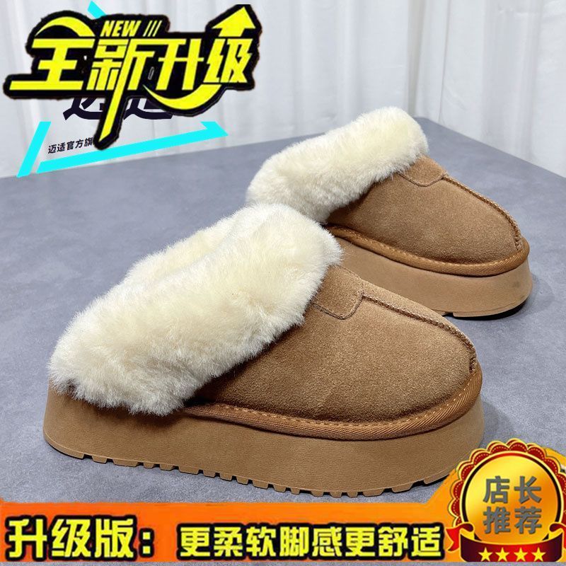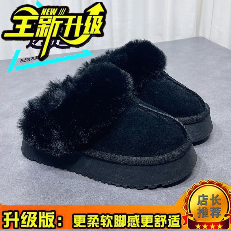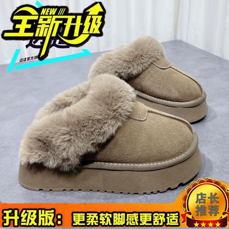 厚底毛毛拖鞋女2023冬新款皮毛一体外穿包头拖加厚加绒雪地靴