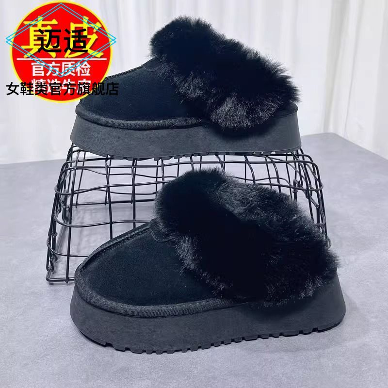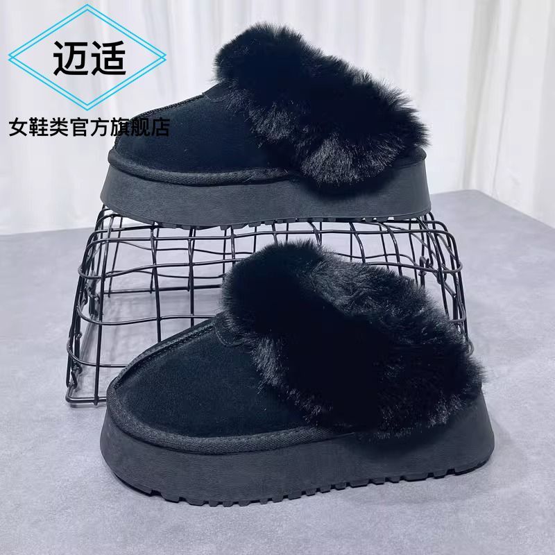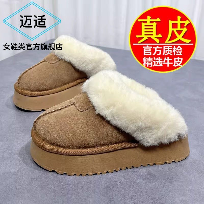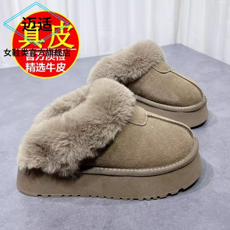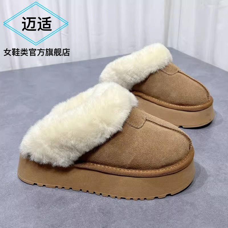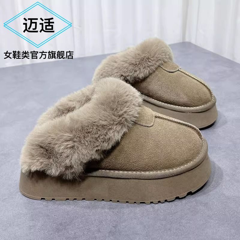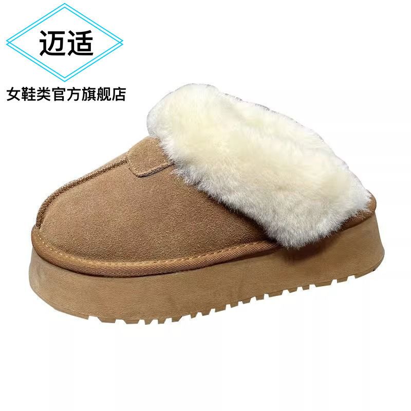 厚底毛毛拖鞋女2023冬新款皮毛一体外穿包头拖加厚加绒雪地靴