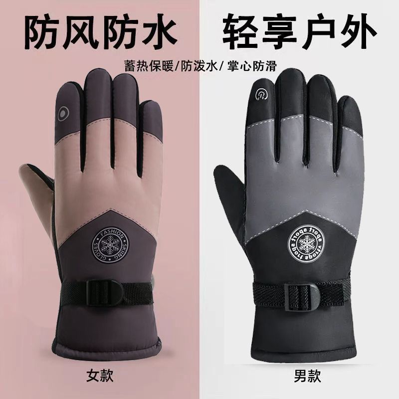 骑行手套男女冬季户外骑行防滑加绒加厚防水保暖防风防寒滑雪手套