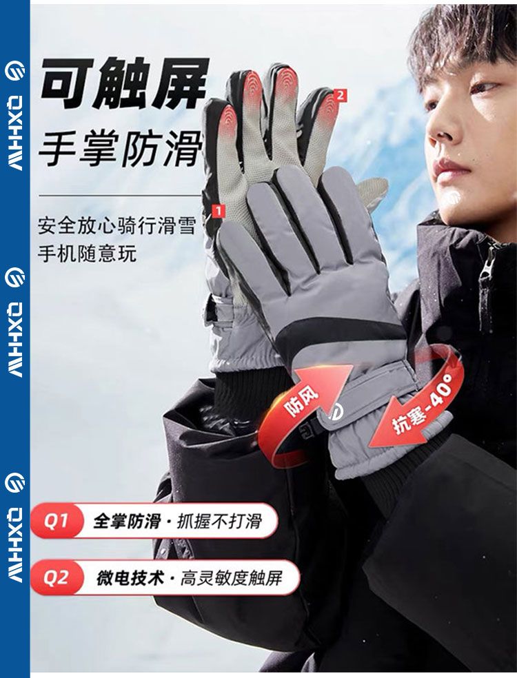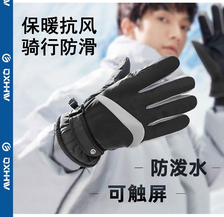 滑雪骑行秋冬季手套男电动车保暖防寒防风防水加绒加厚触屏手套女
