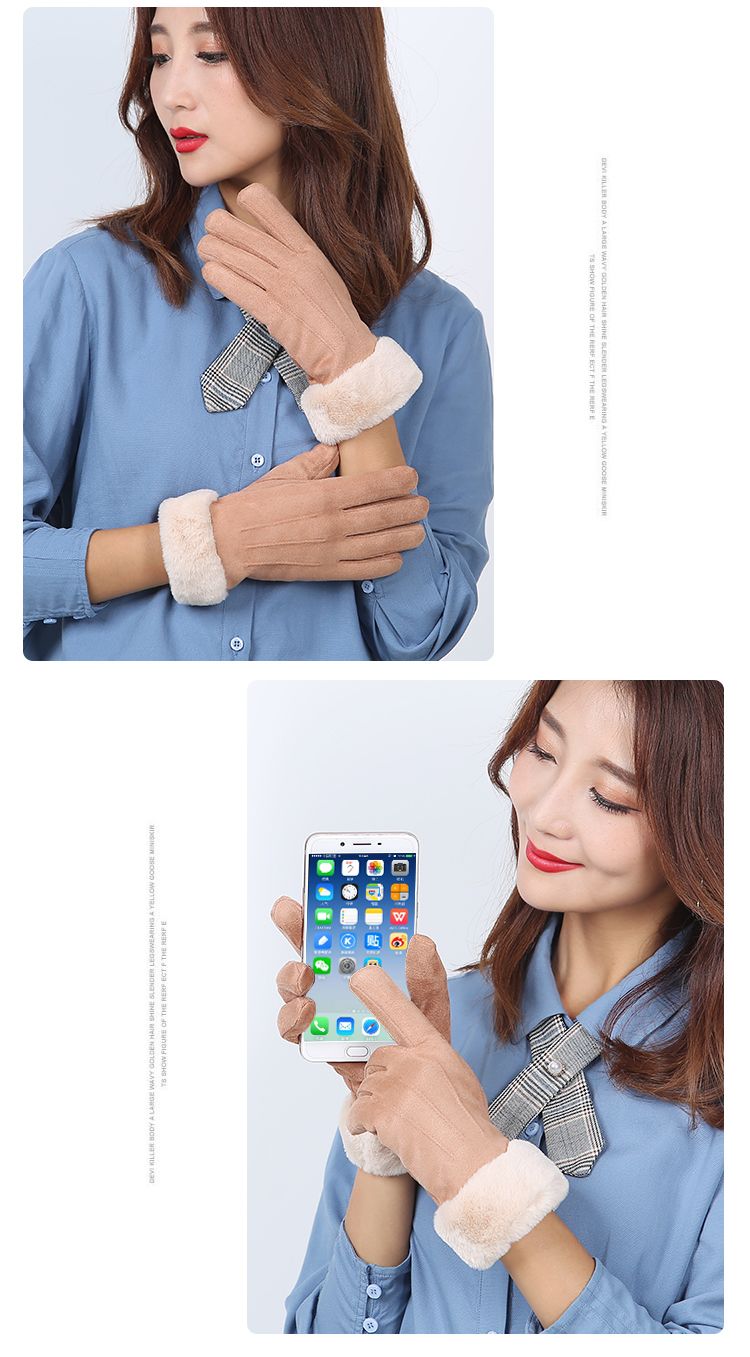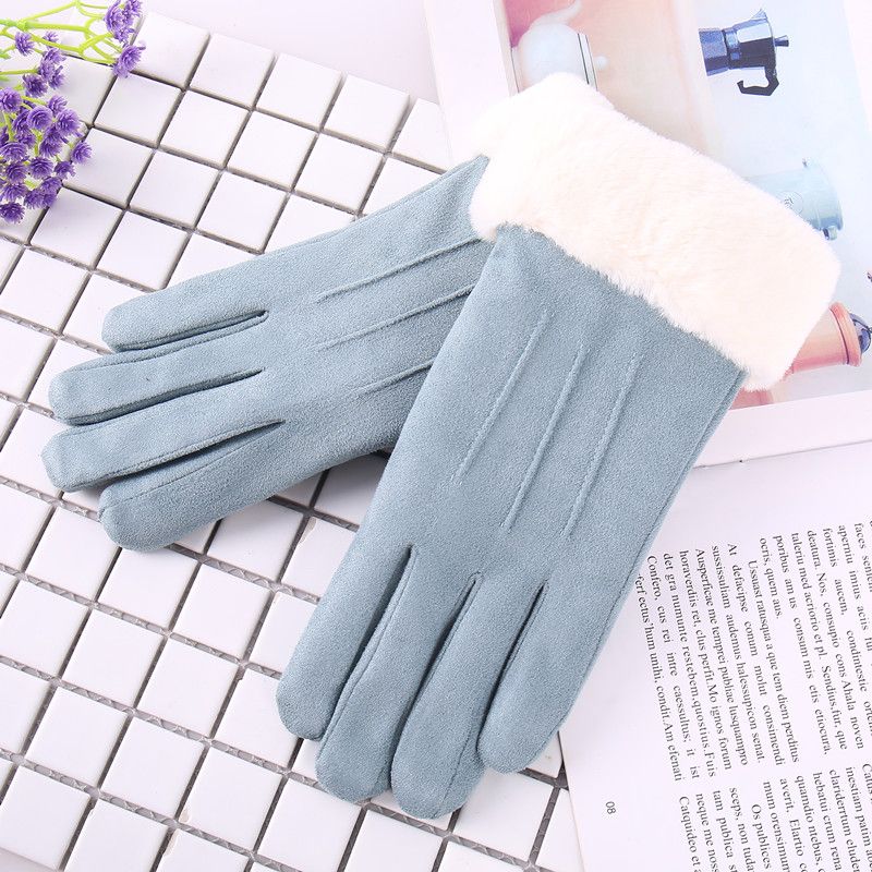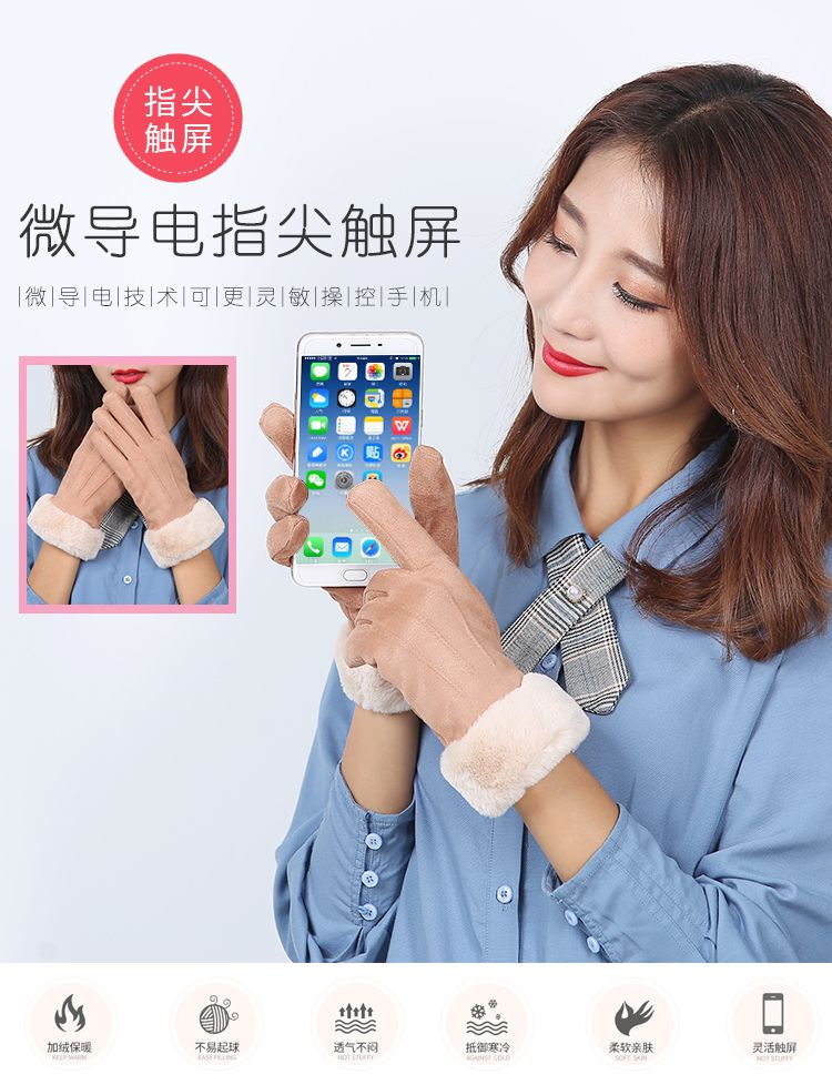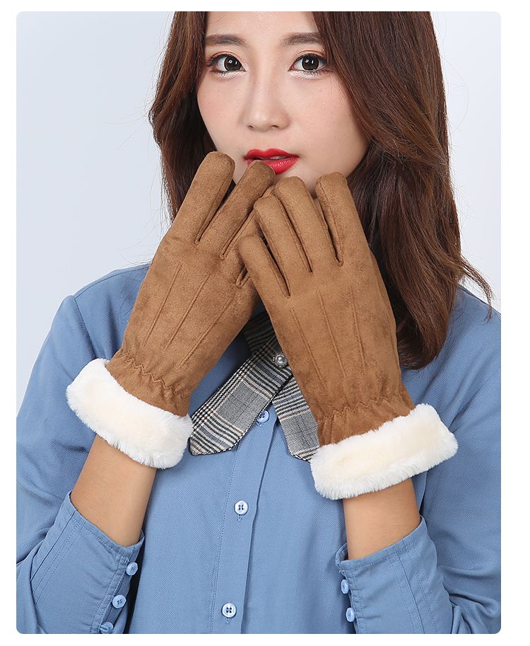 麂皮绒手套女士秋冬季加绒加厚薄暖学生可爱韩版汽车开车防寒防风