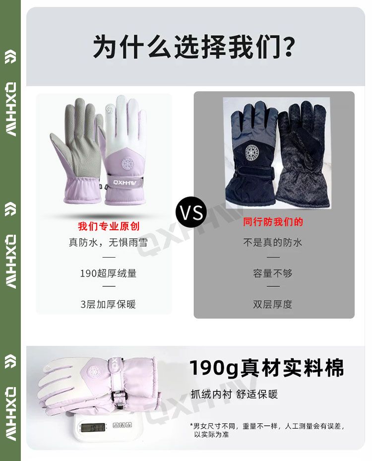 手套冬季男女保暖防寒电动车户外防雨滑雪手套男骑行触屏加绒加厚