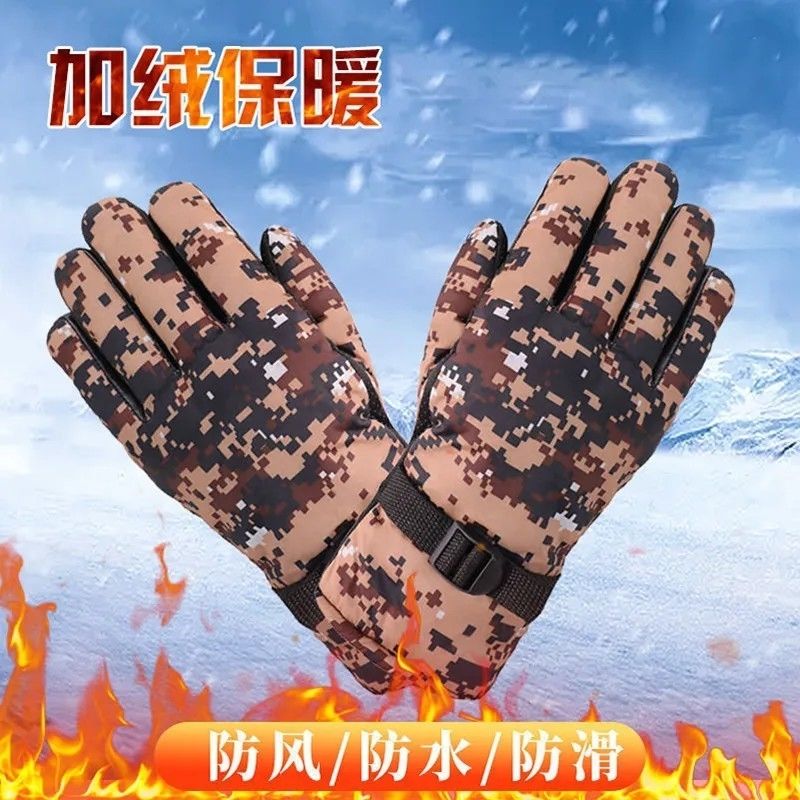 迷彩冬季保暖手套男士骑行防寒户外防水加绒防风摩托摩托车手套
