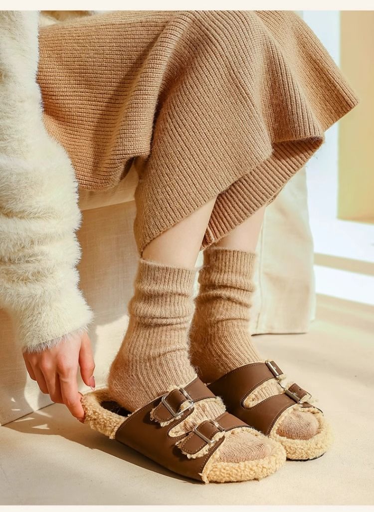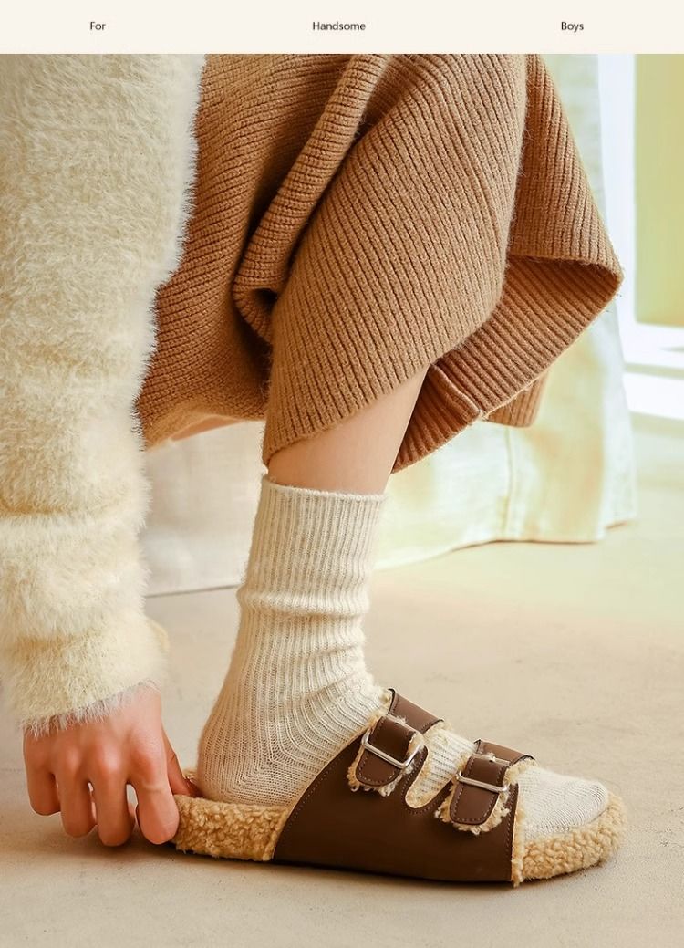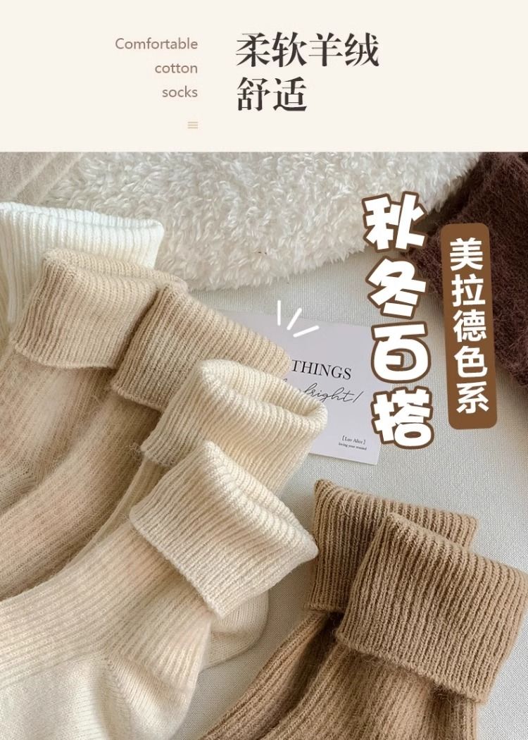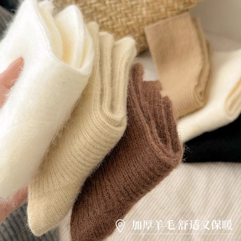 羊毛袜子女秋冬季美拉德中筒袜加厚保暖羊绒长袜冬天勃肯鞋堆堆袜