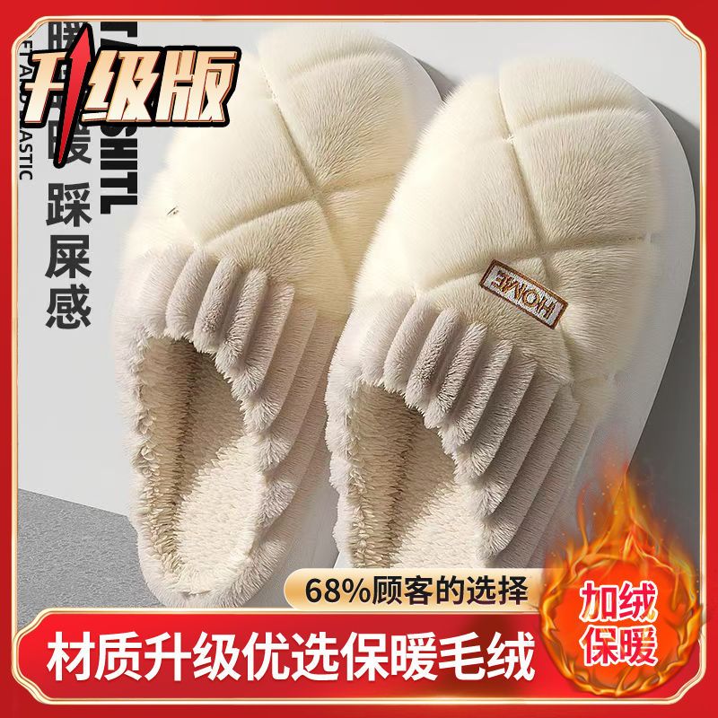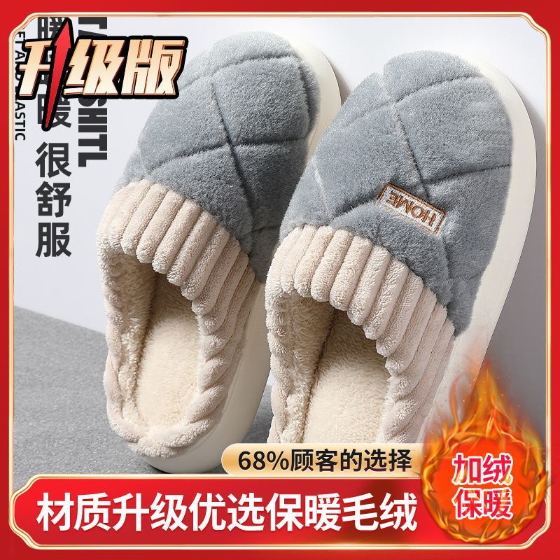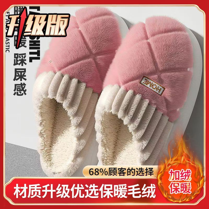 加绒保暖秋冬季男棉拖踩屎感冬季棉拖鞋女士毛绒可爱情侣居家室内