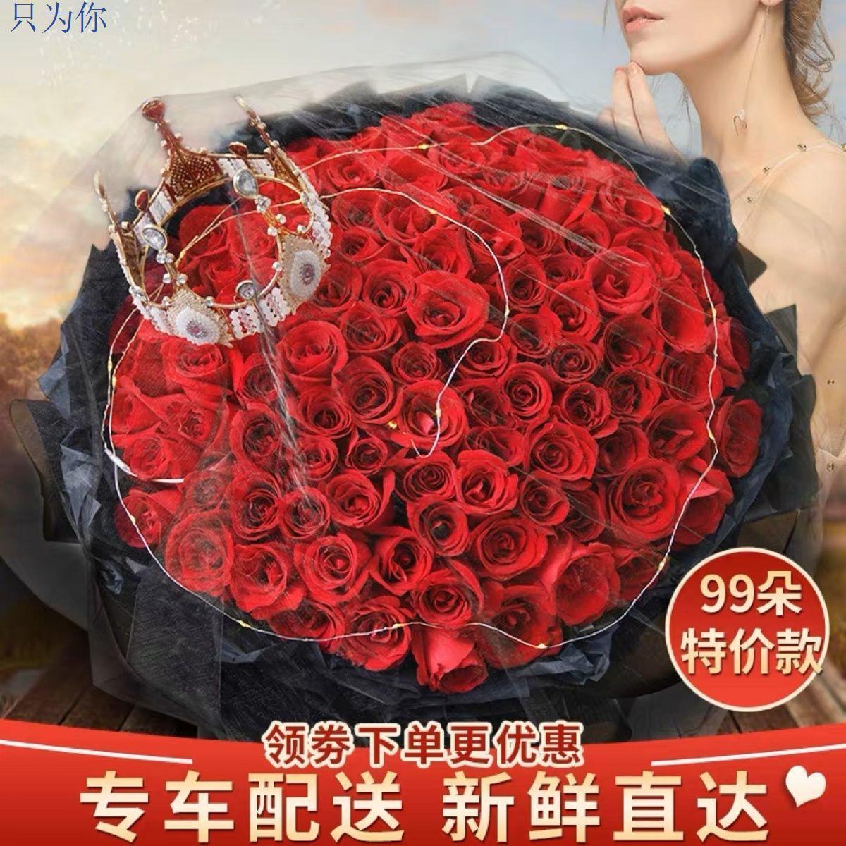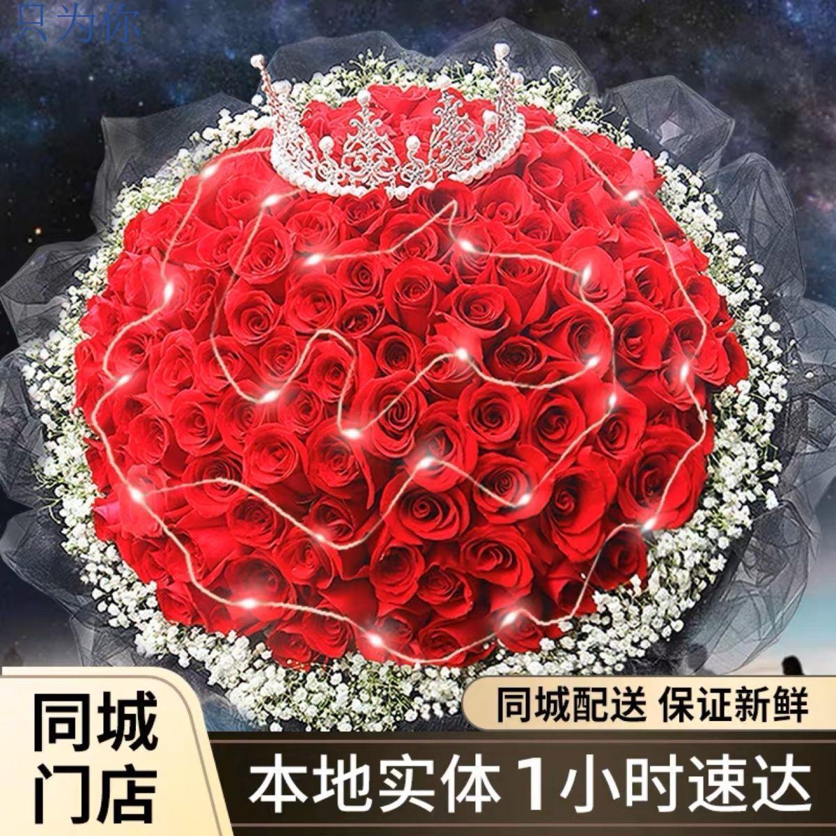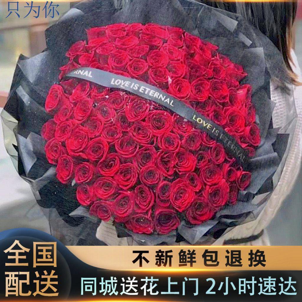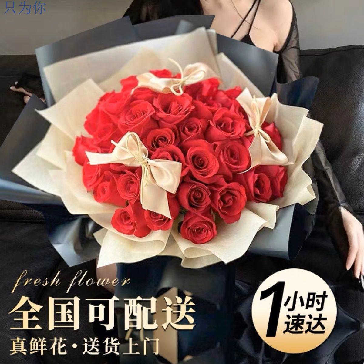 真花鲜花配送同城99朵红玫瑰花束生日求婚礼物全国鲜花速递送女友