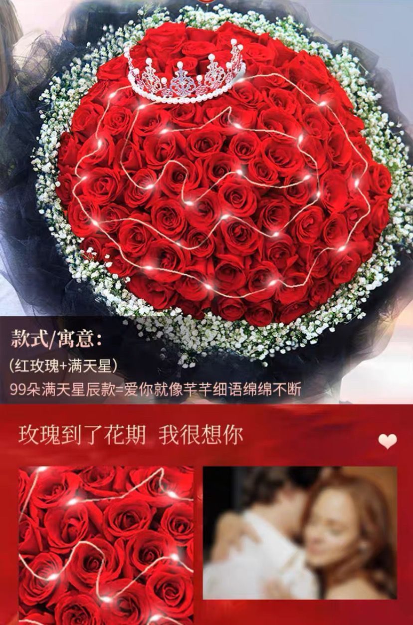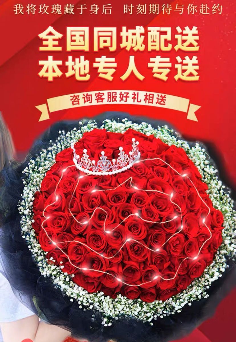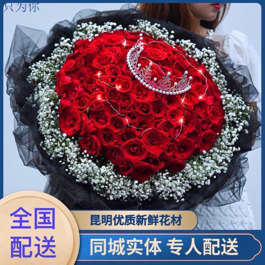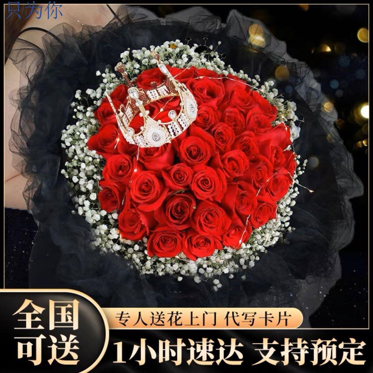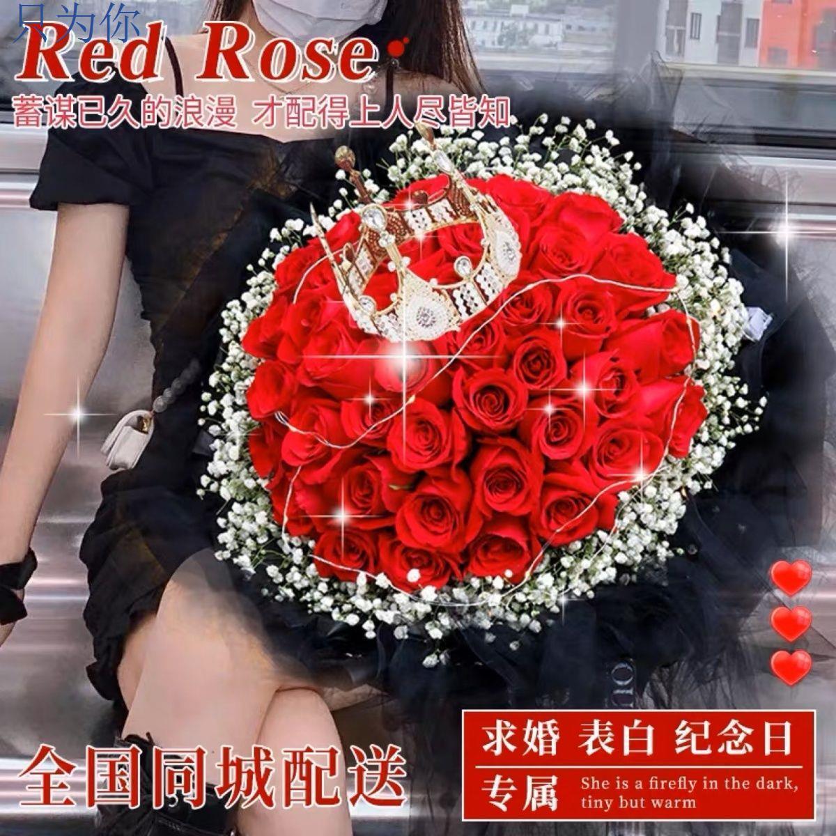 真花鲜花配送同城99朵红玫瑰花束生日求婚礼物全国鲜花速递送女友