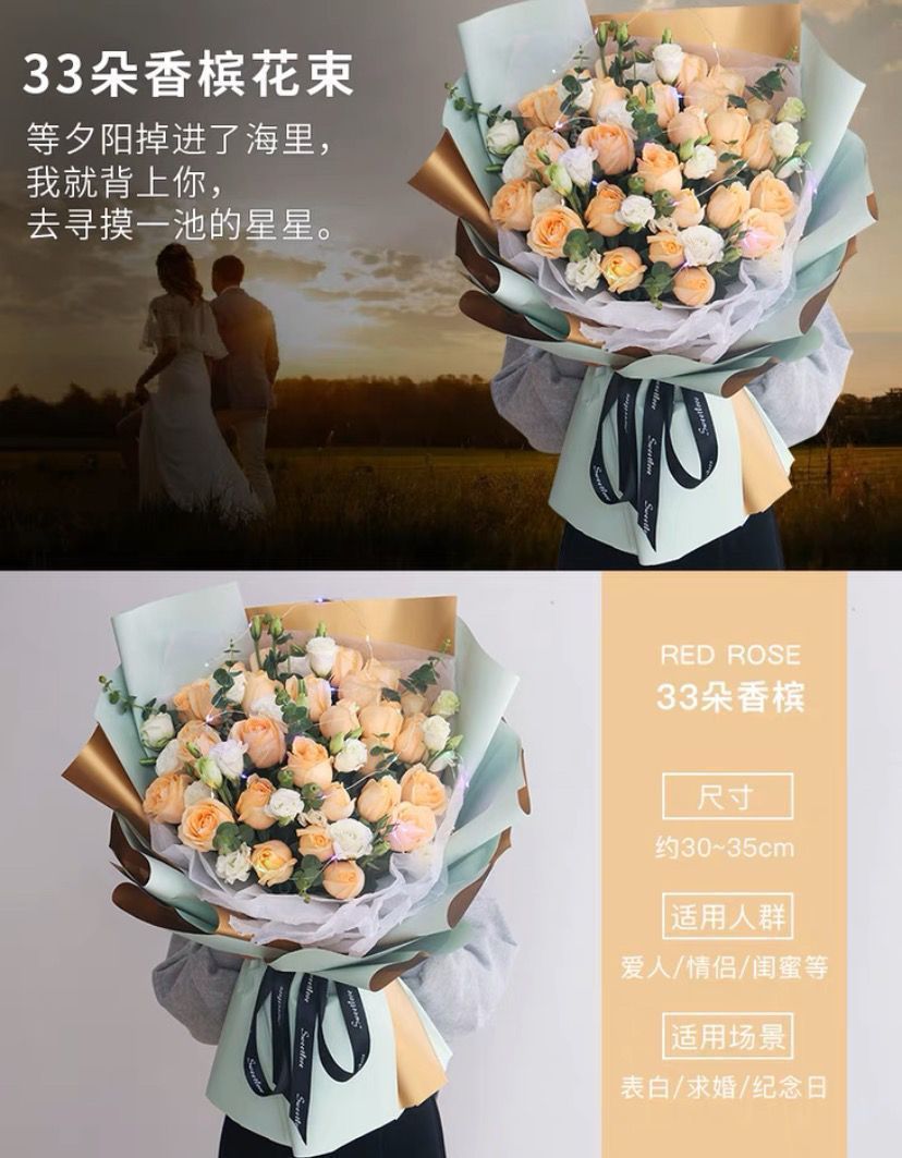 | 【心之所向】33朵香槟花束 | USD $40.5 | 99999 piece available |
