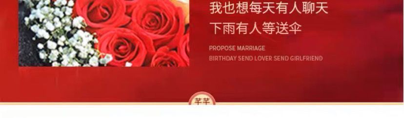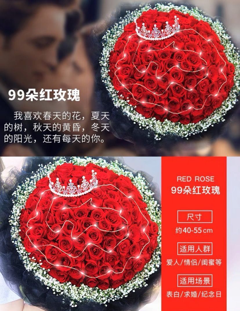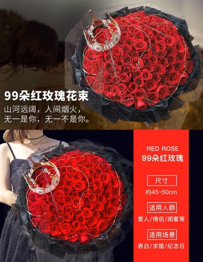 | [love you alone] 99 red roses bouquet(【爱你一人】99朵红玫瑰花束) | USD $55.06 | 99999 piece available |