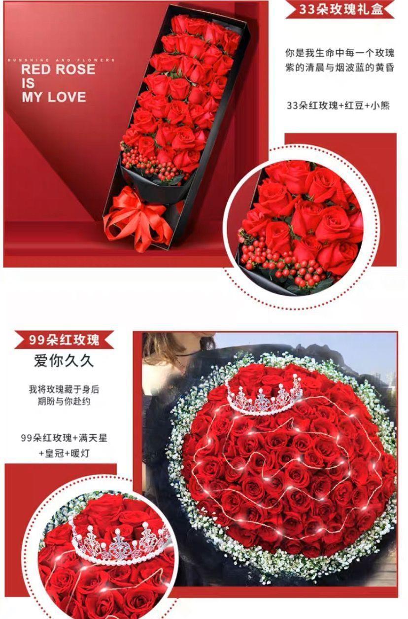 | 【芳华如梦】33朵红玫瑰花束 | USD $41.08 | 99999 piece available |