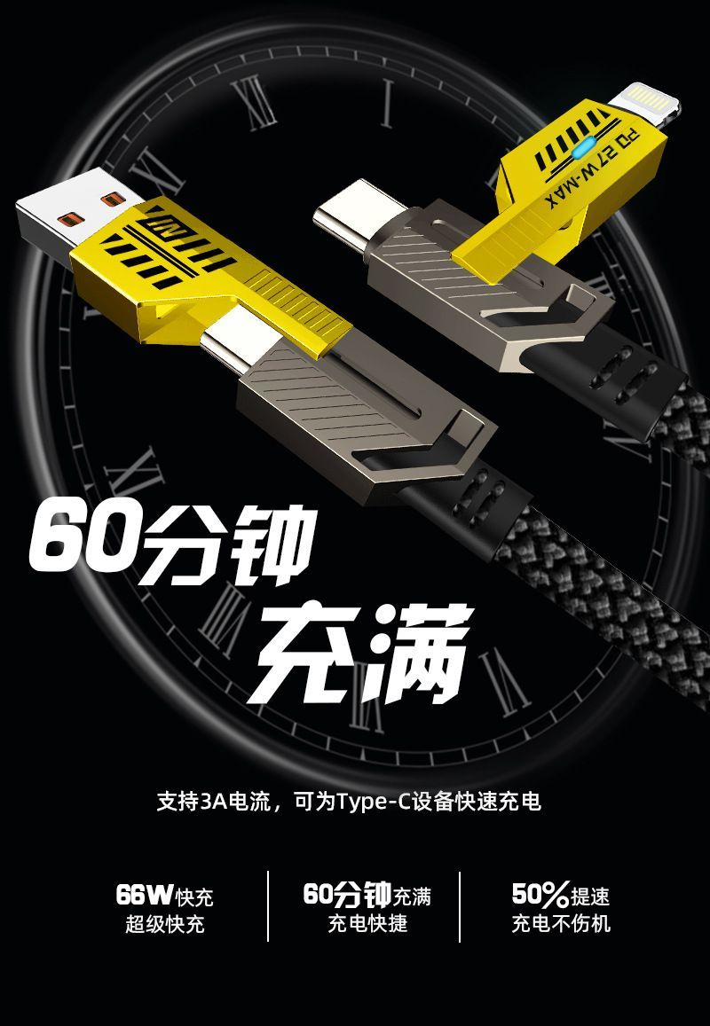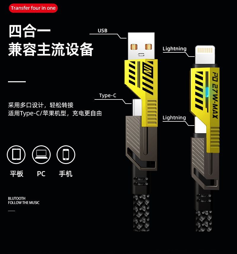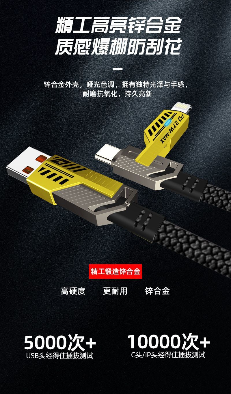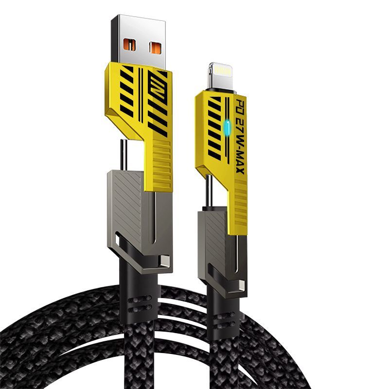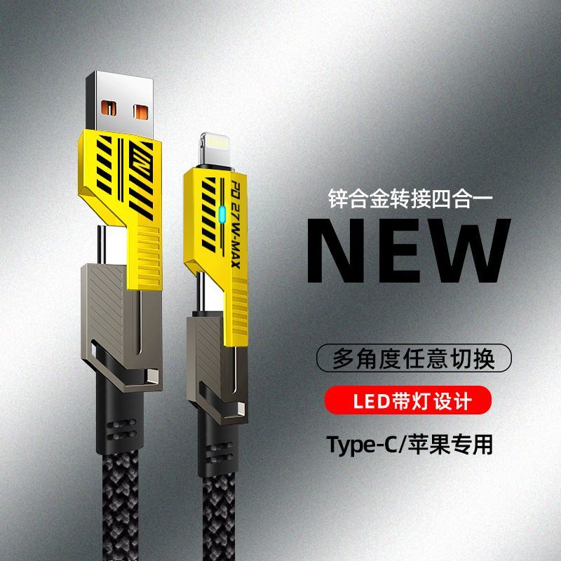 手机充电线四合一超级快充数据线PD27W充电适用华为安卓苹果通用