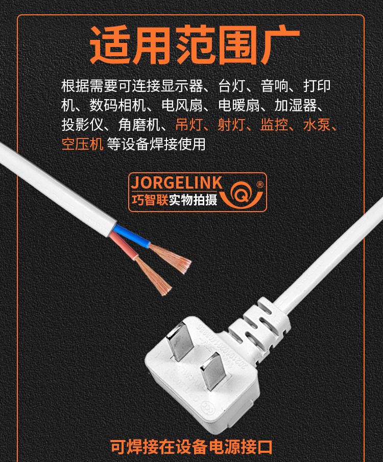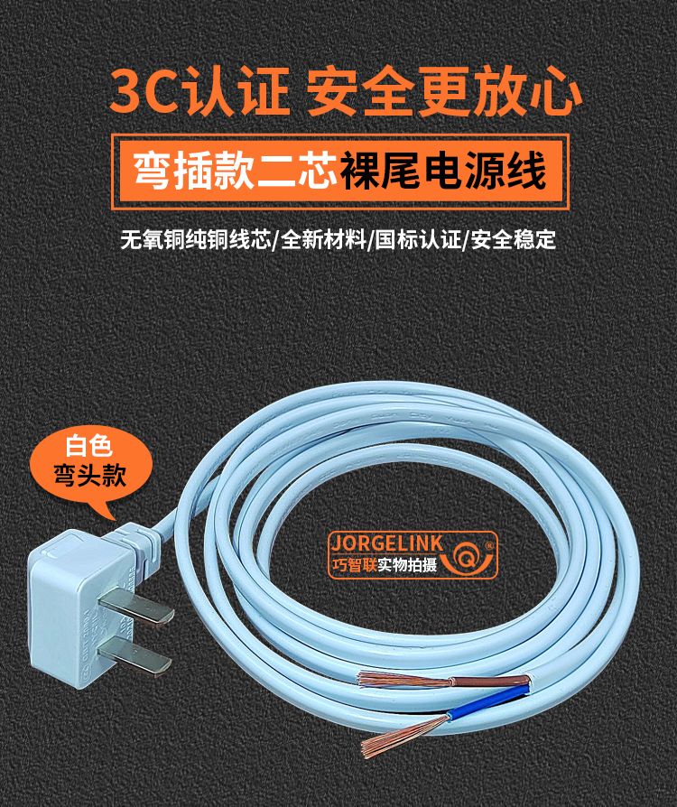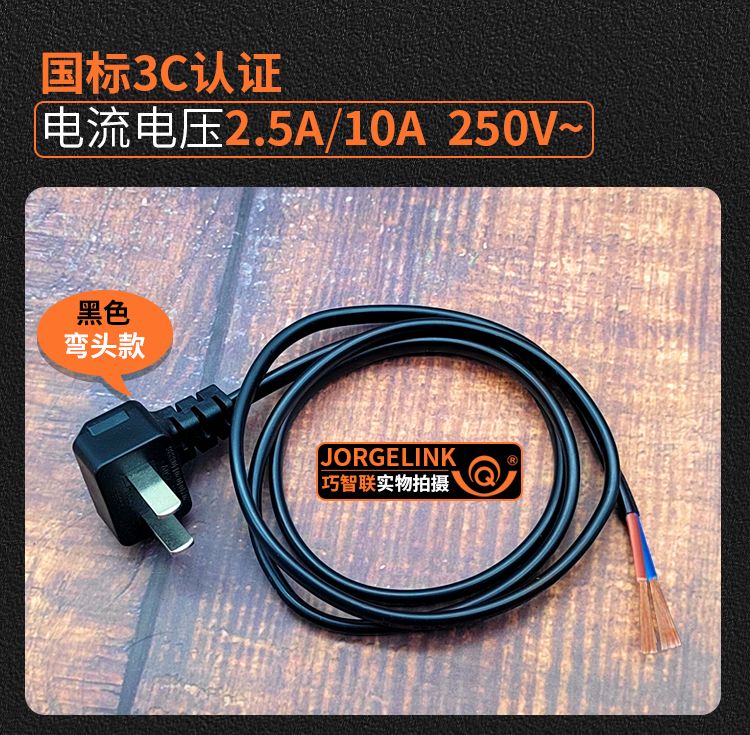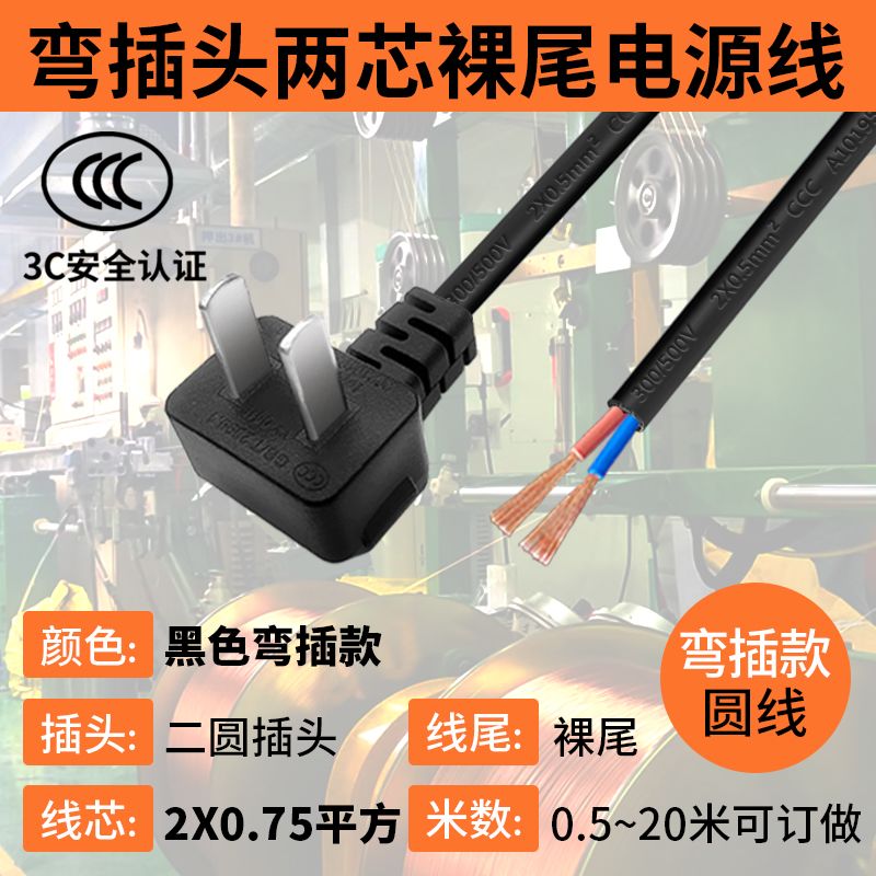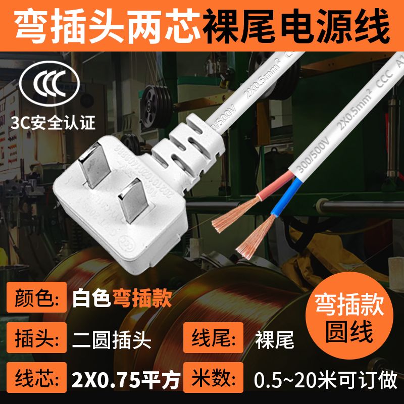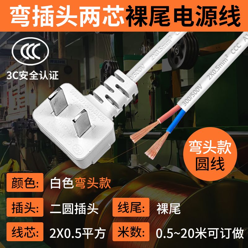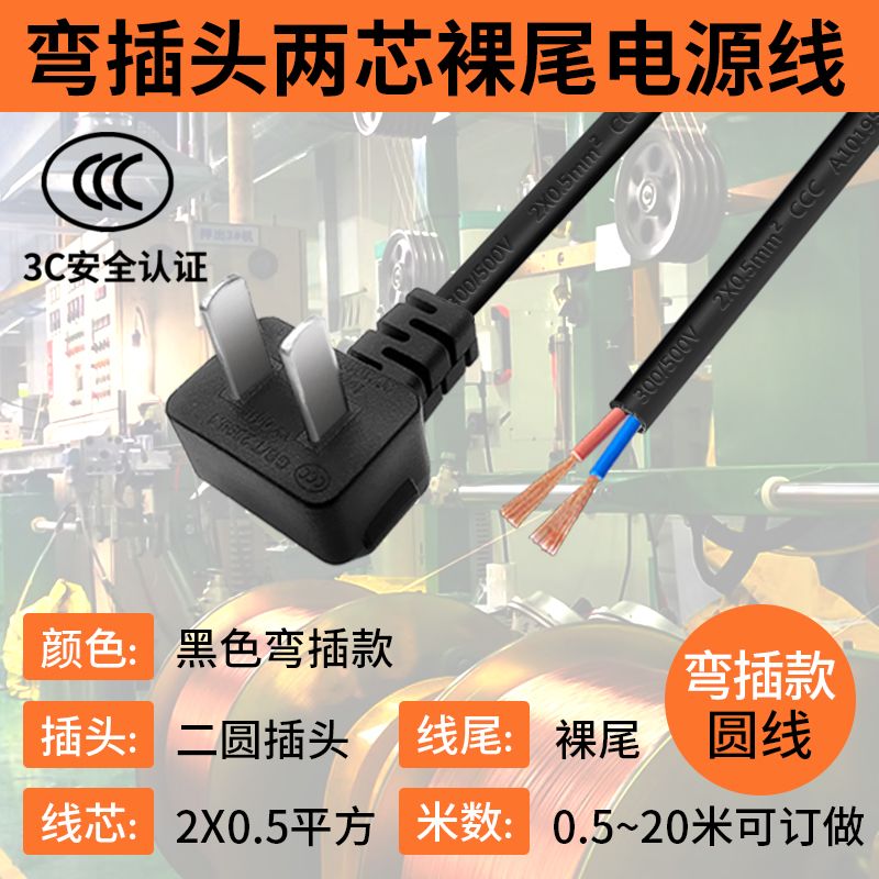 巧智联纯铜国标商家通用电器连接线带插头二芯两项电动工具电源线