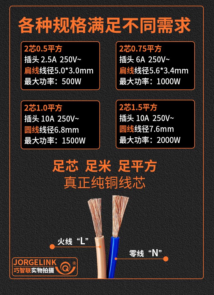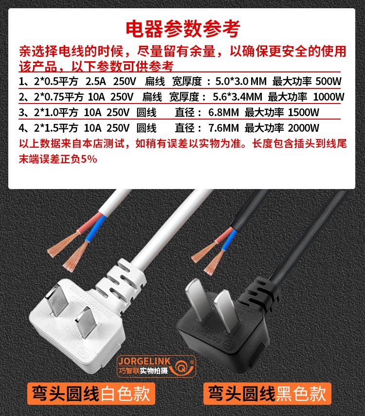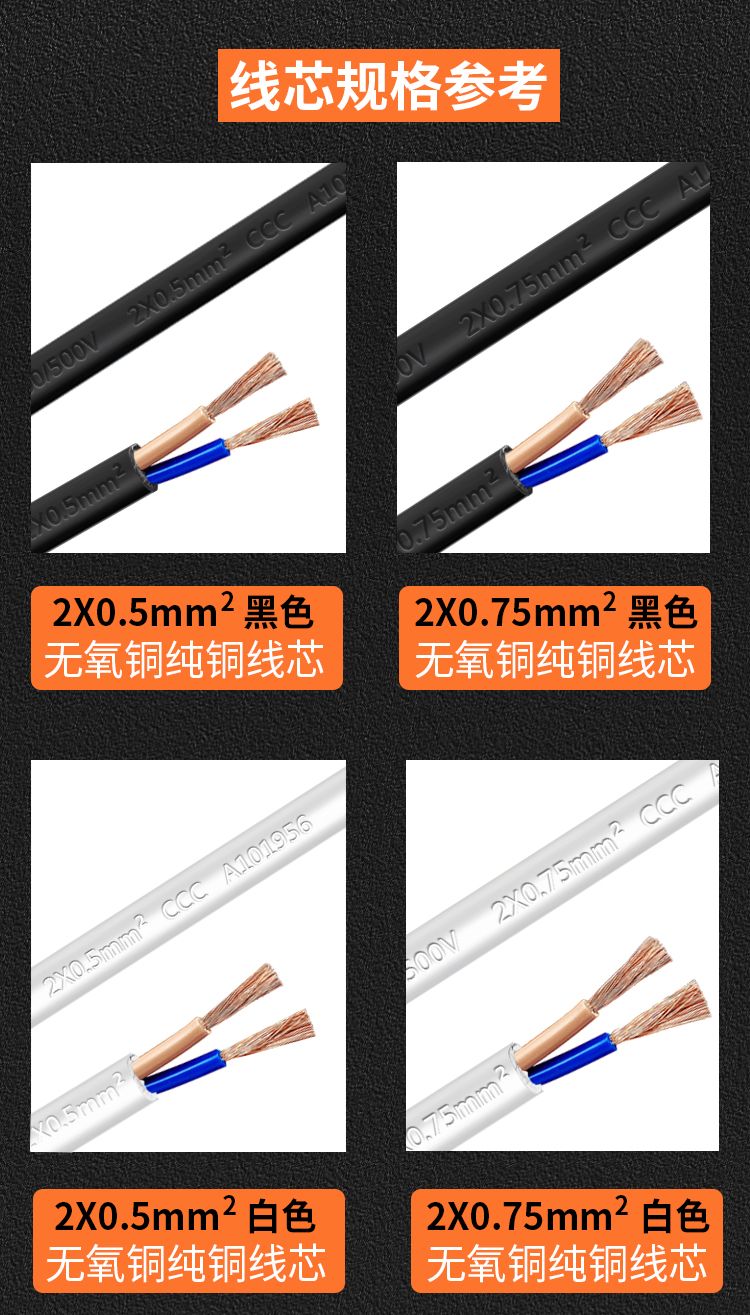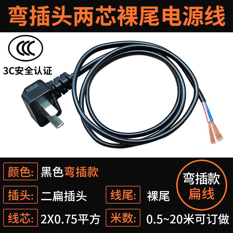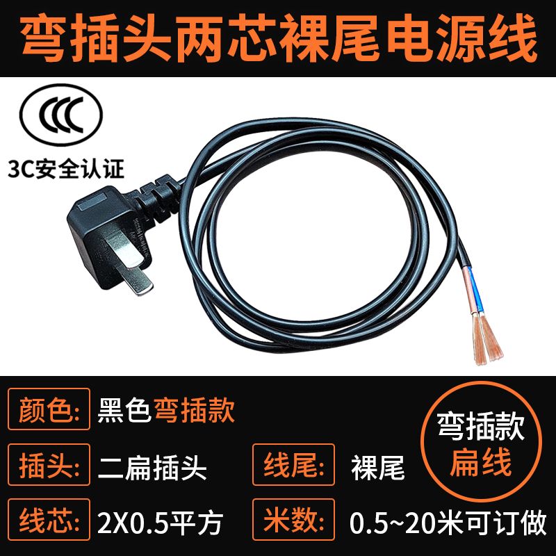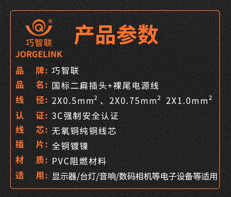 巧智联纯铜国标商家通用电器连接线带插头二芯两项电动工具电源线