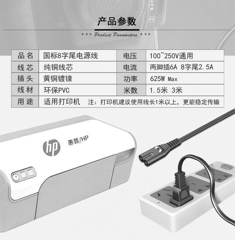 HP惠普打印机2515/2622/3525/3548/3638/2520HC/Pro8600电源插线