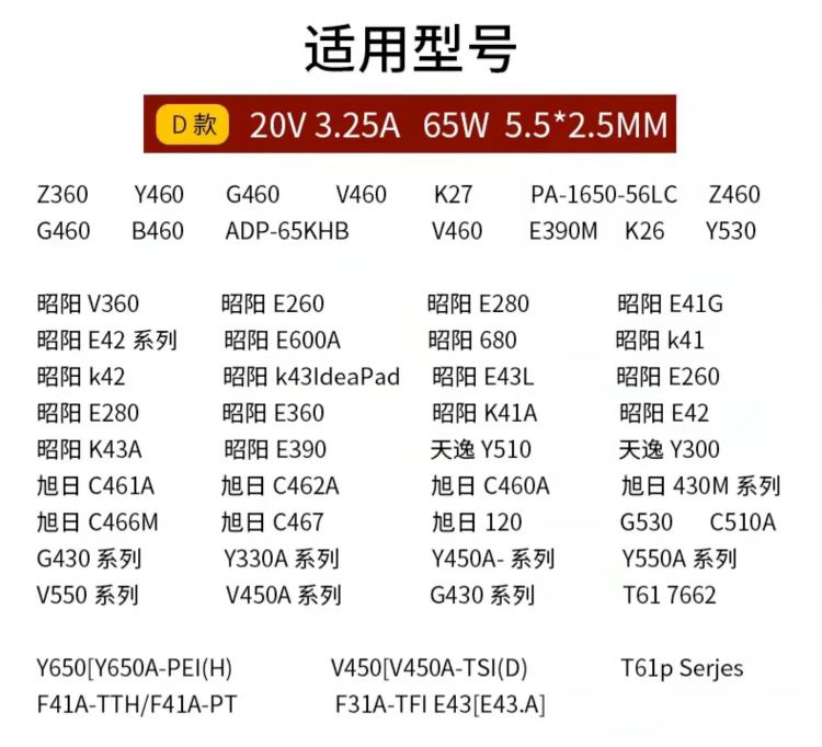 | Q款19.5V6.7A5.5*2.5 | USD $12.93 | 99999 piece available |