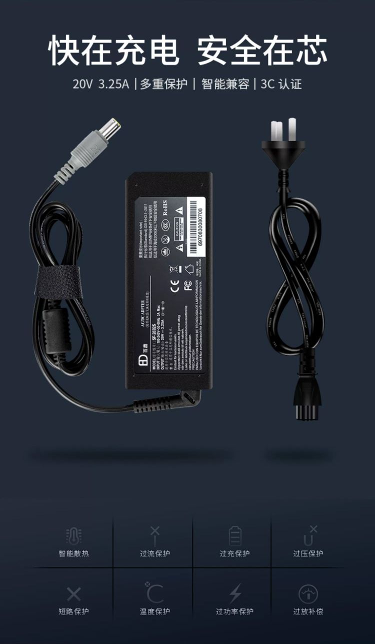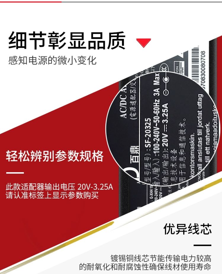 适用联想笔记本充电器thinkpad适配器20v3.25A电源线拯救者小新