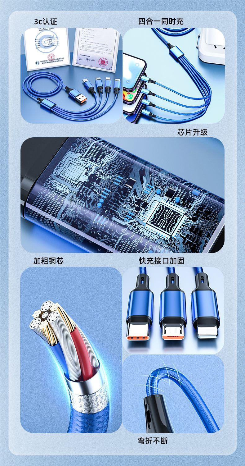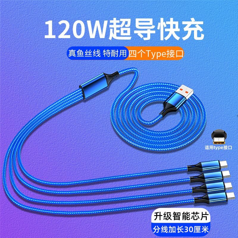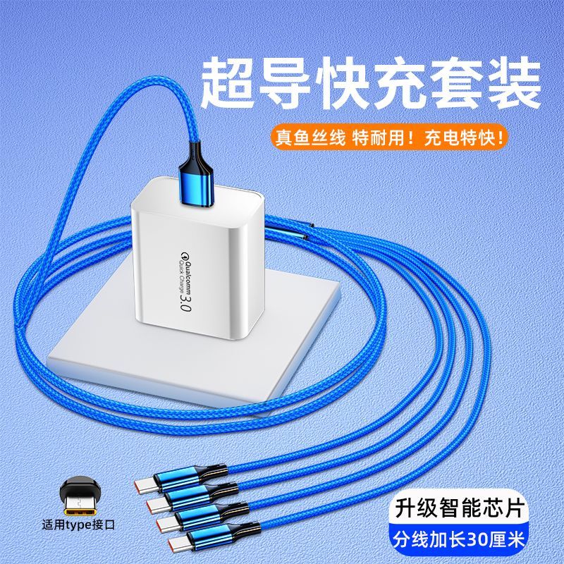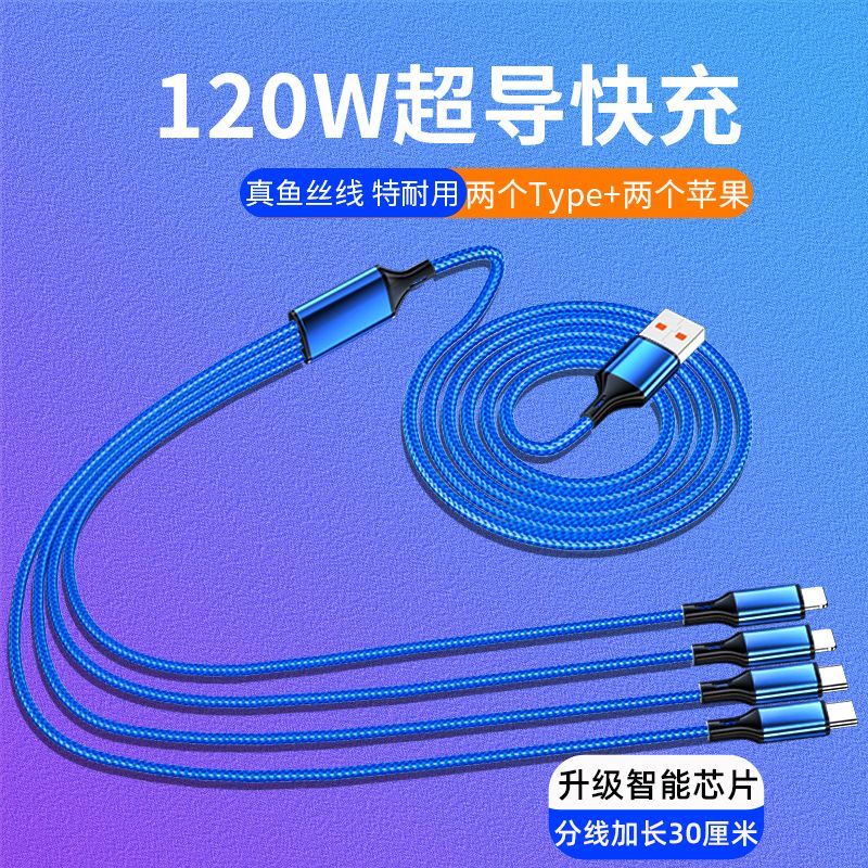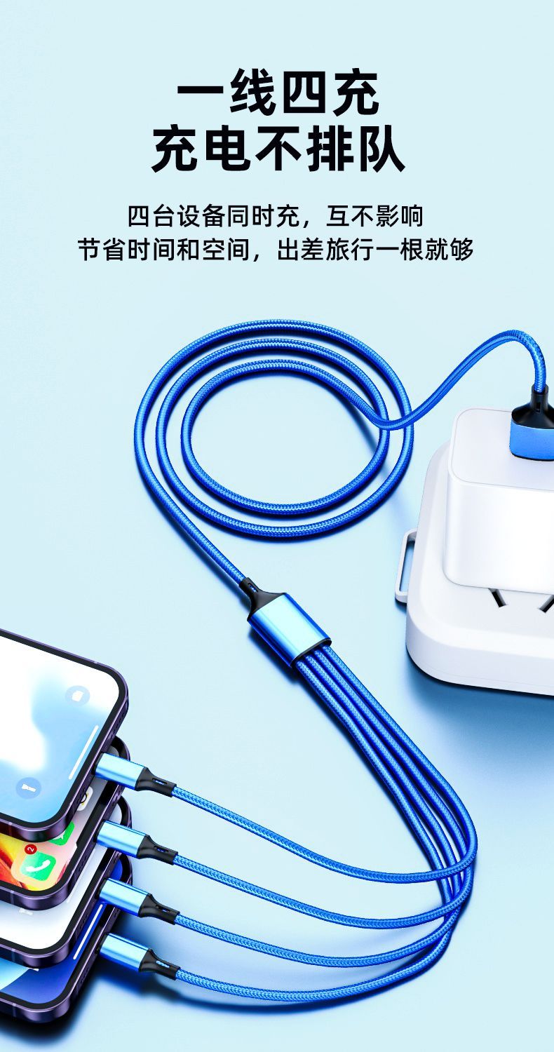 新款四合一充电线快充适用苹果小米OPPO华为vivo安卓双type-c车载