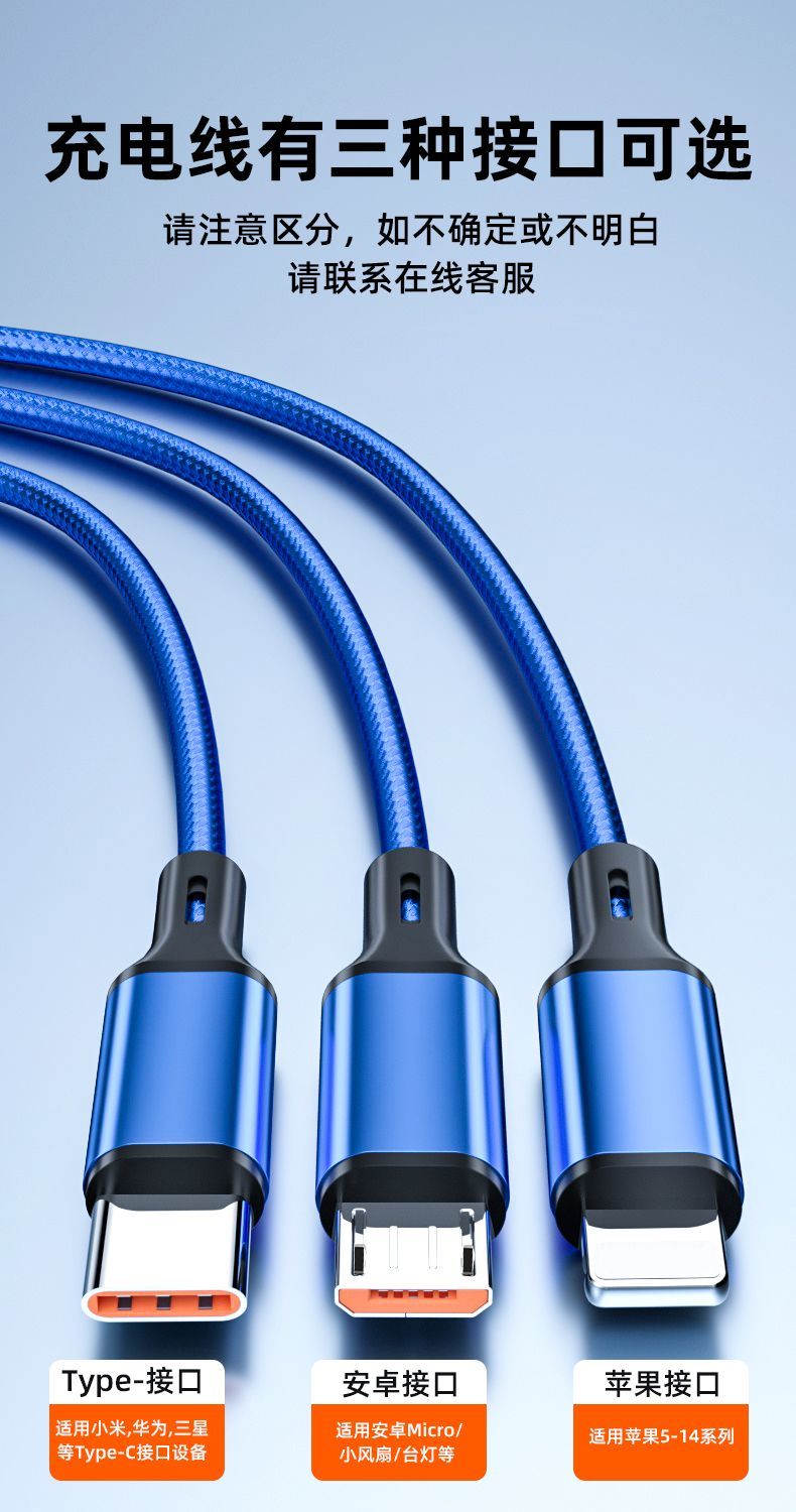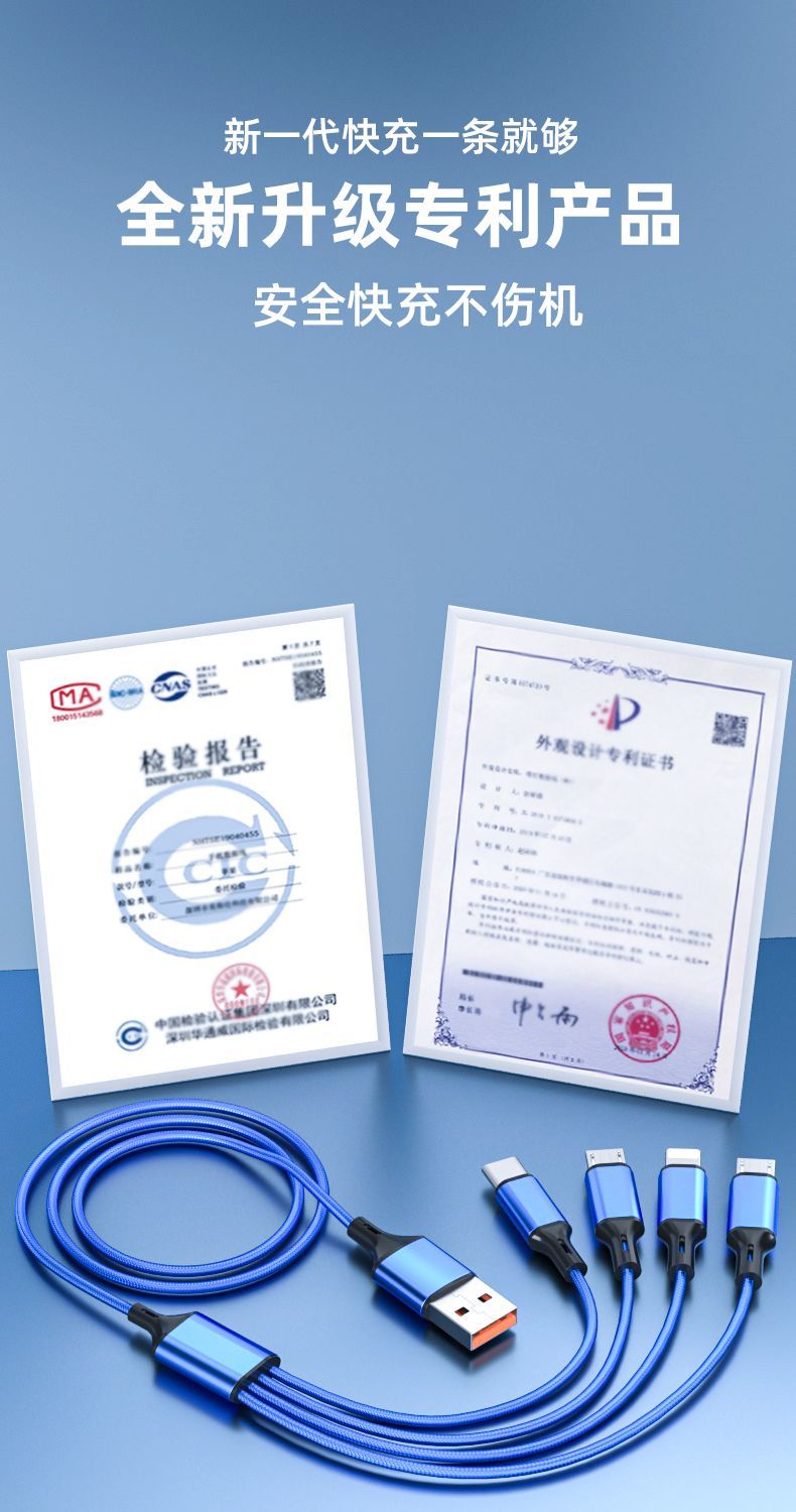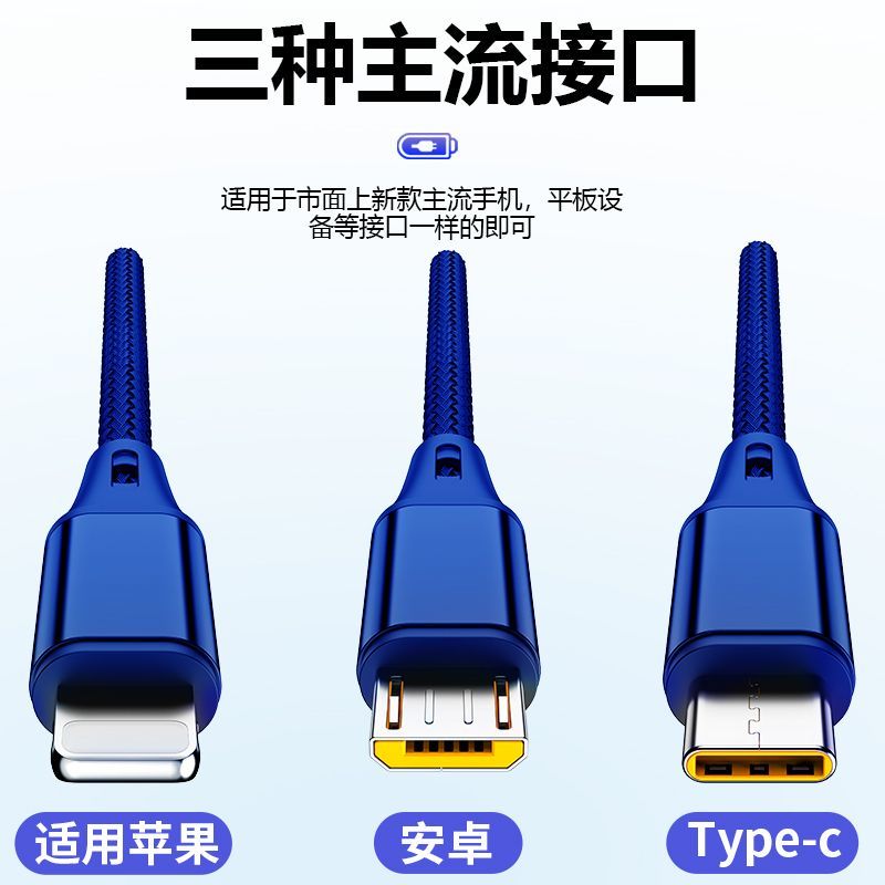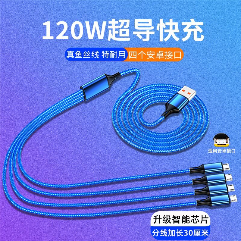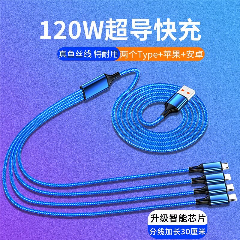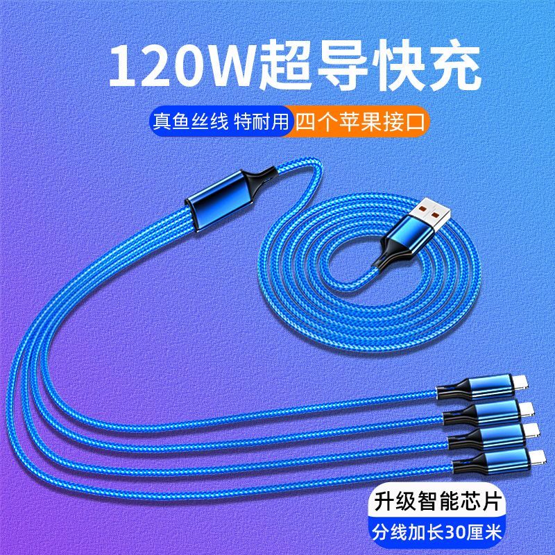 新款四合一充电线快充适用苹果小米OPPO华为vivo安卓双type-c车载