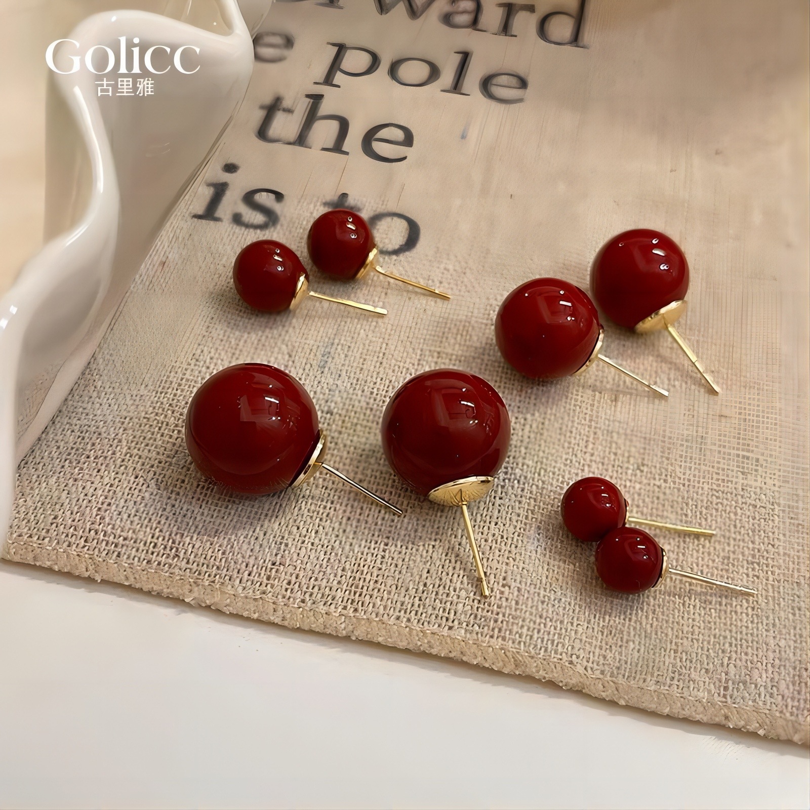 合集~s925安可拉红耳钉耳夹酒红秋冬耳饰新年滴釉植绒简约高级感