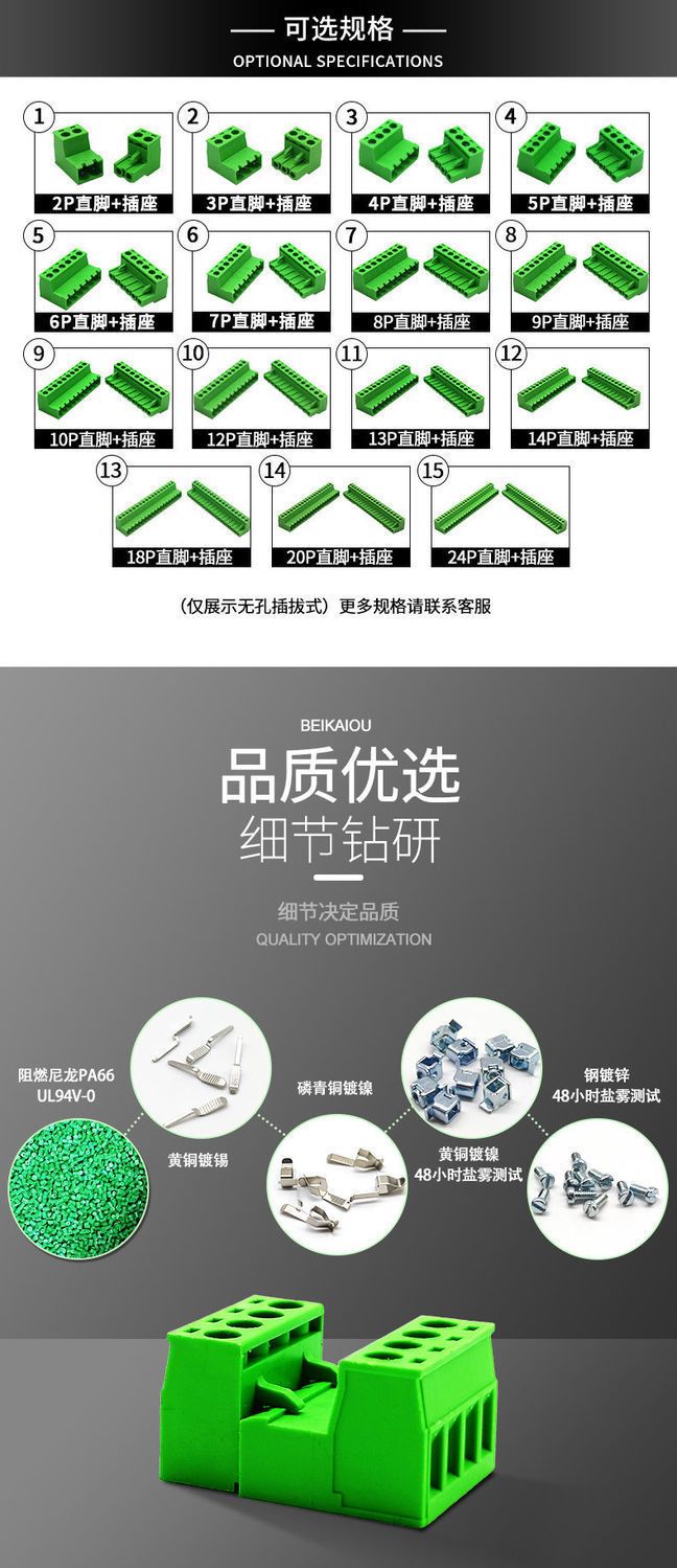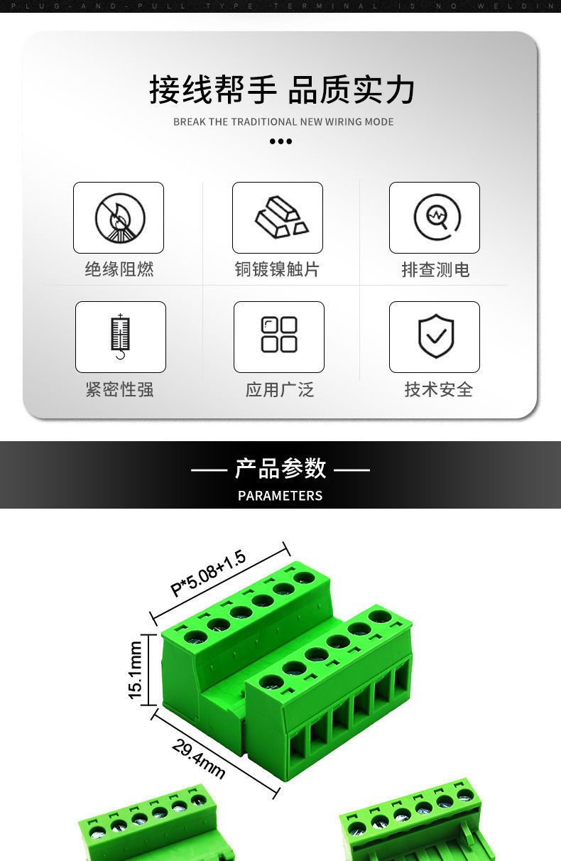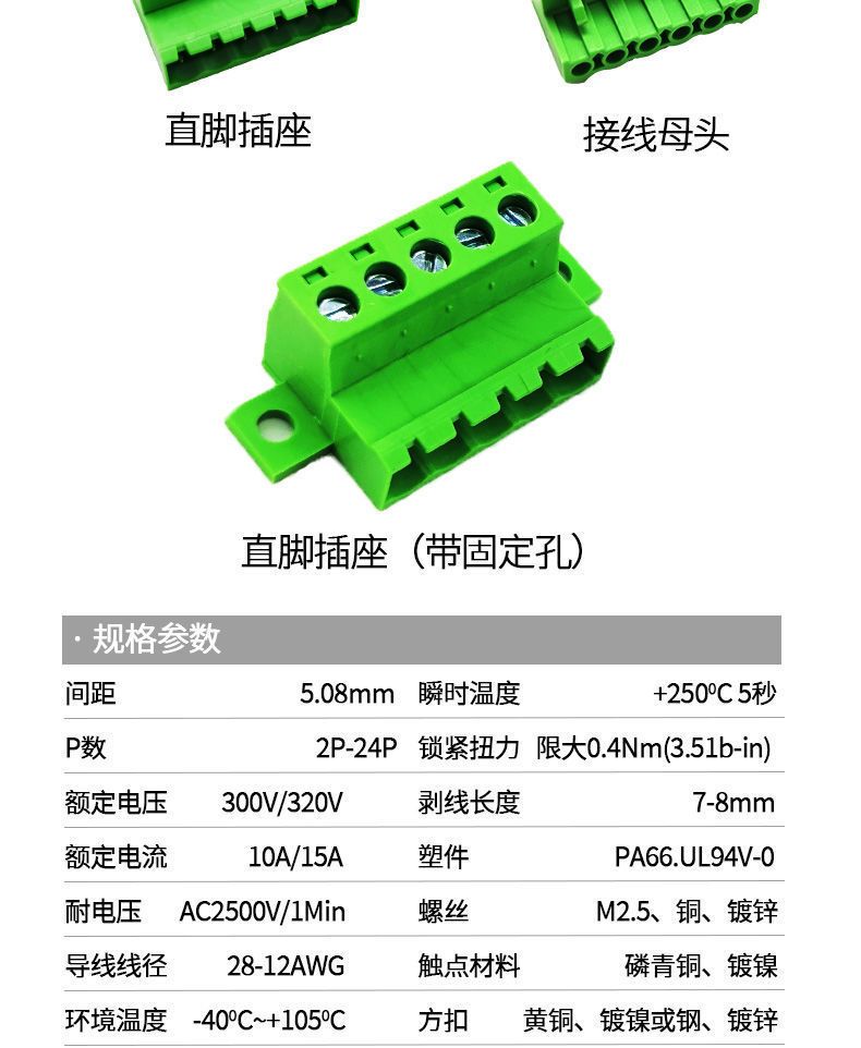 免焊对接2EDG 5.08mm 对插式2EDGRK5.08 插拔绿色接线端子2p-24p