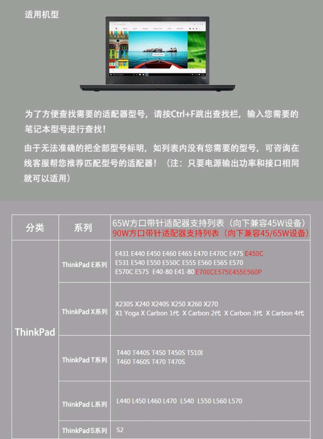 适用联想笔记本ThinkPad 65W/90W充电器20V3.25A/4.5A电源适配器