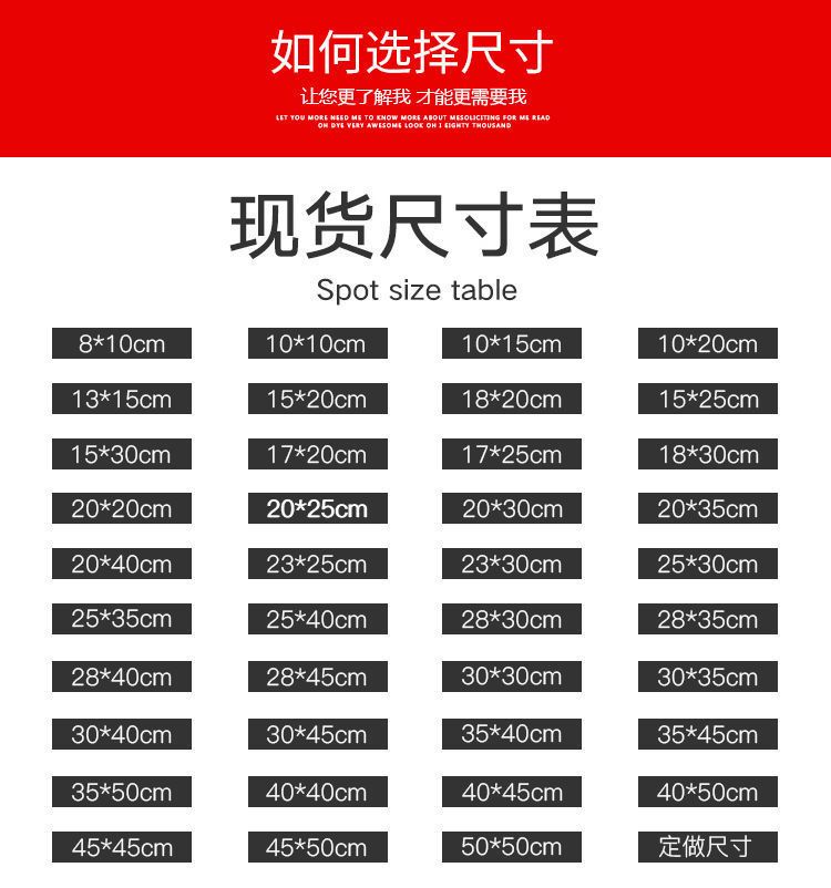 | 20*40cm 100个 | USD $2.48 | 99999 piece available |