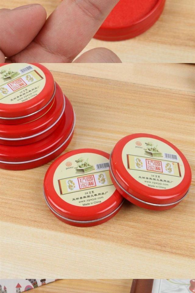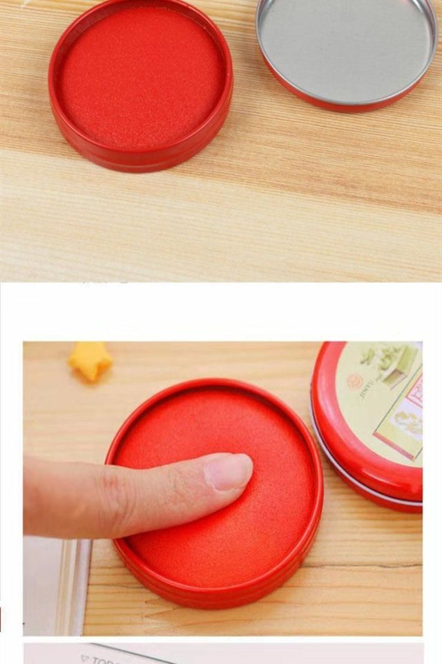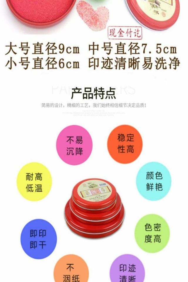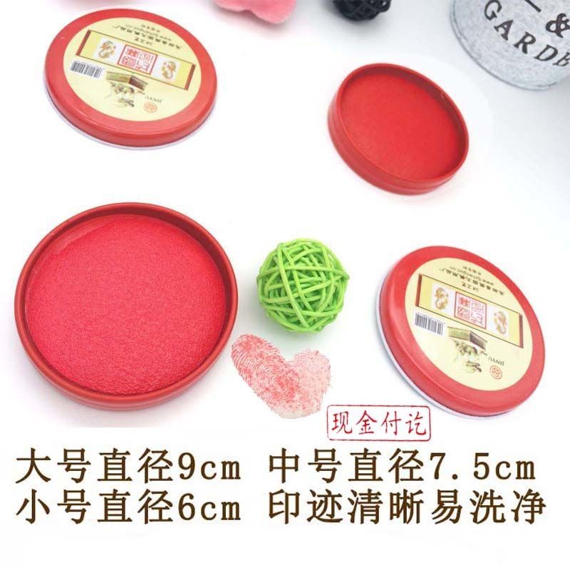 大中小号工艺印泥印台圆形铁盒快干泡沫印泥红色手印油财务专用印