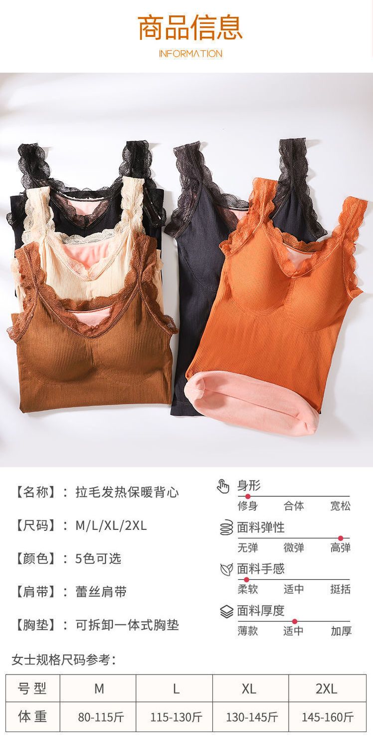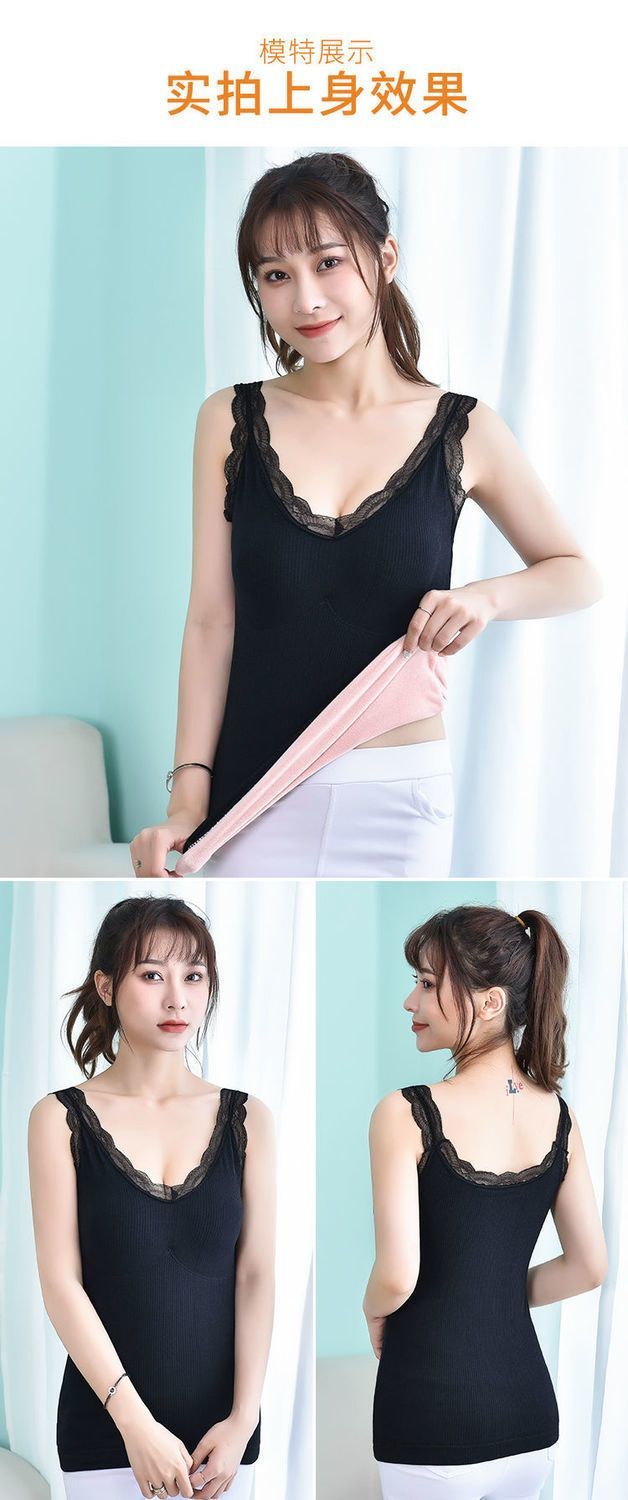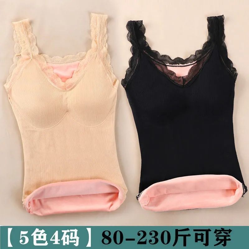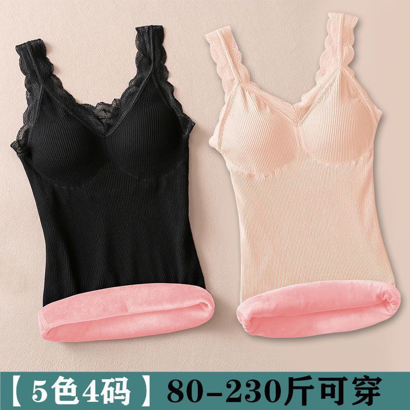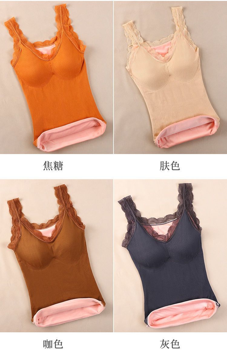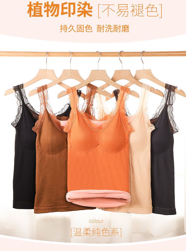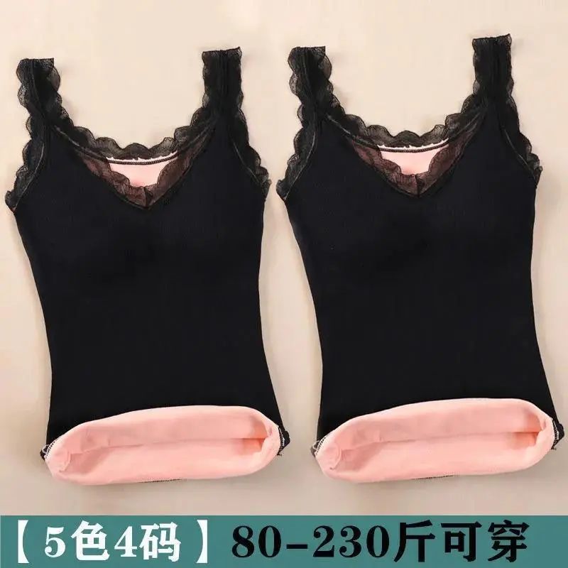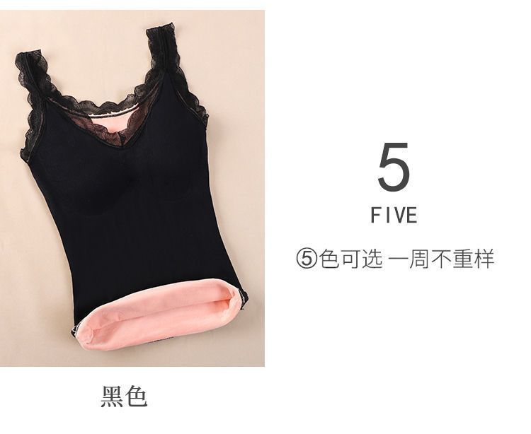 保暖吊带背心女秋冬加绒加厚配西装内搭打底蕾丝双层绒上衣毛绒绒