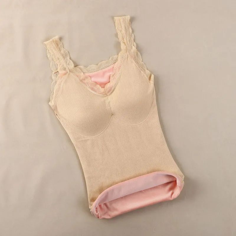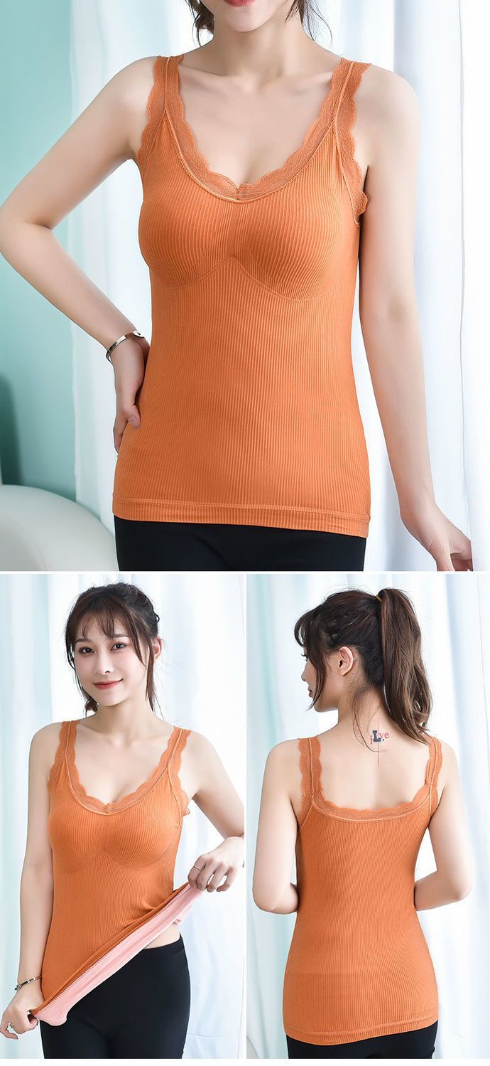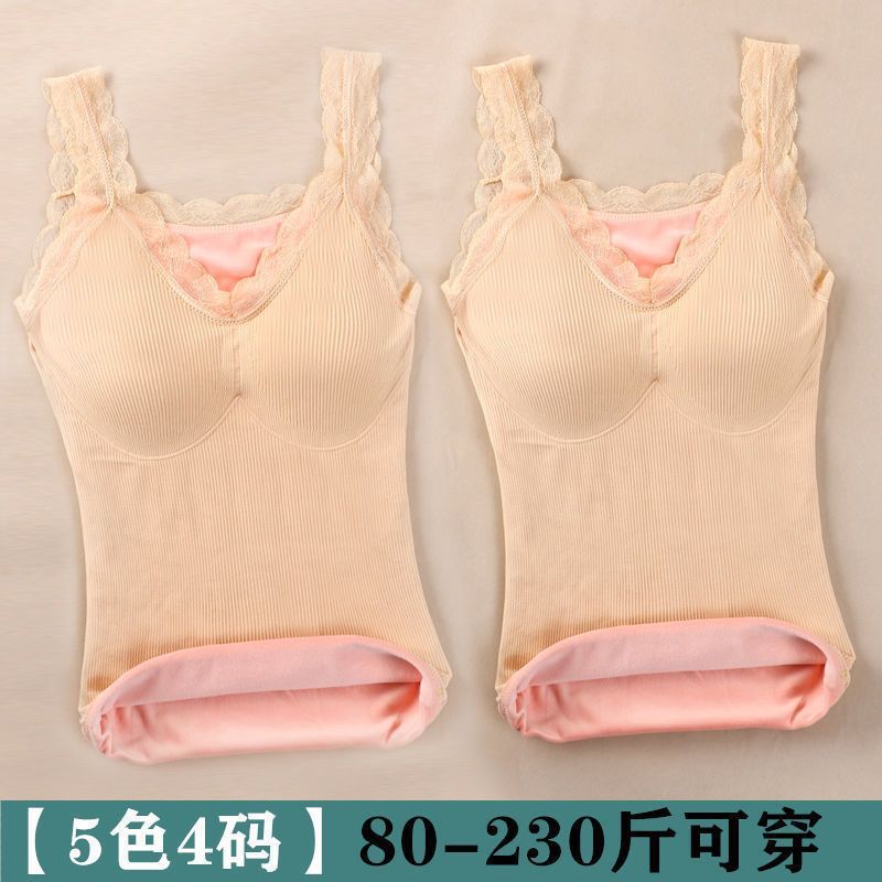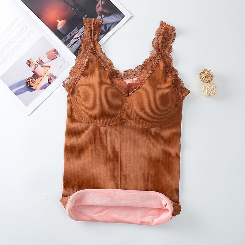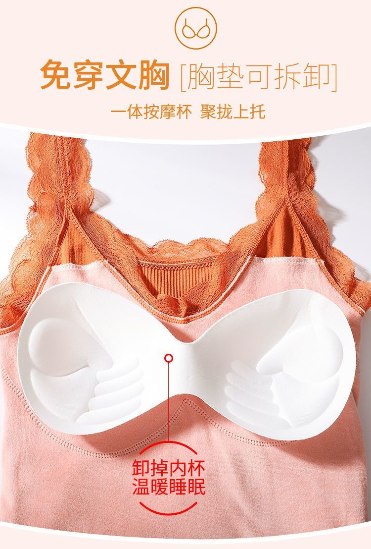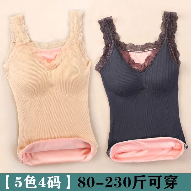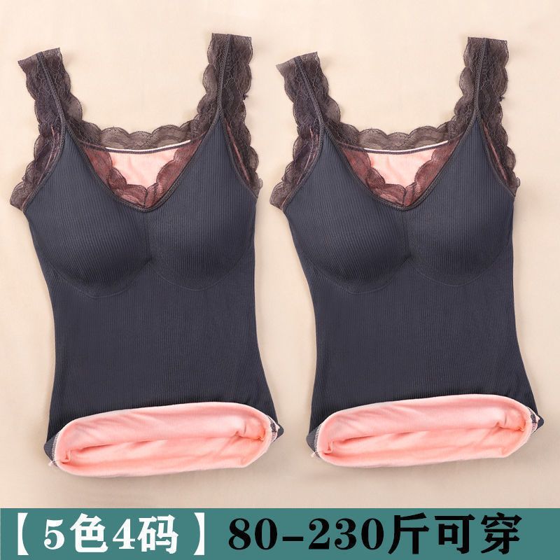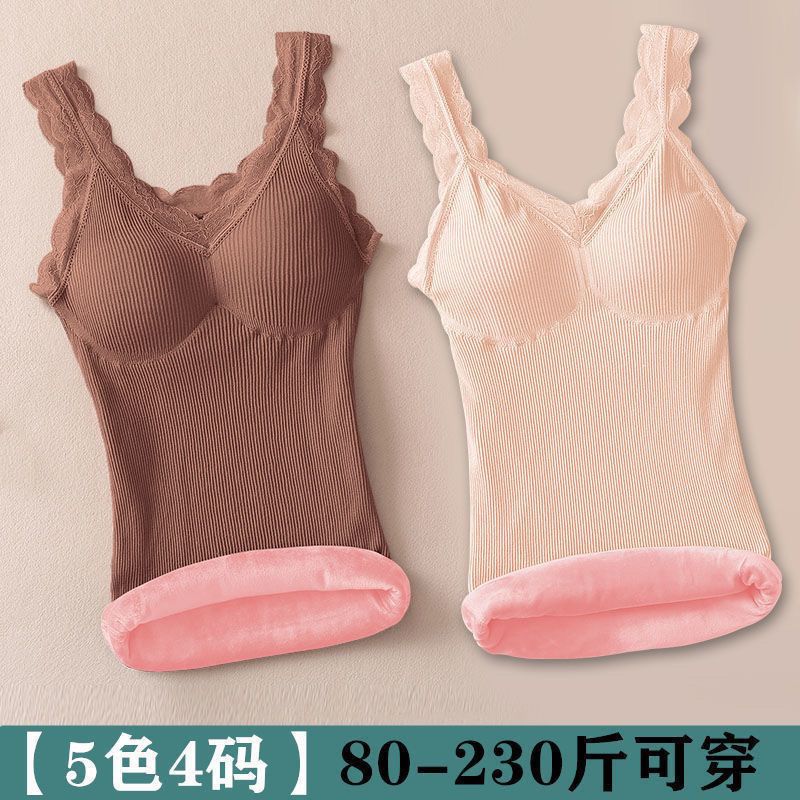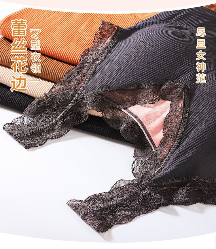 保暖吊带背心女秋冬加绒加厚配西装内搭打底蕾丝双层绒上衣毛绒绒
