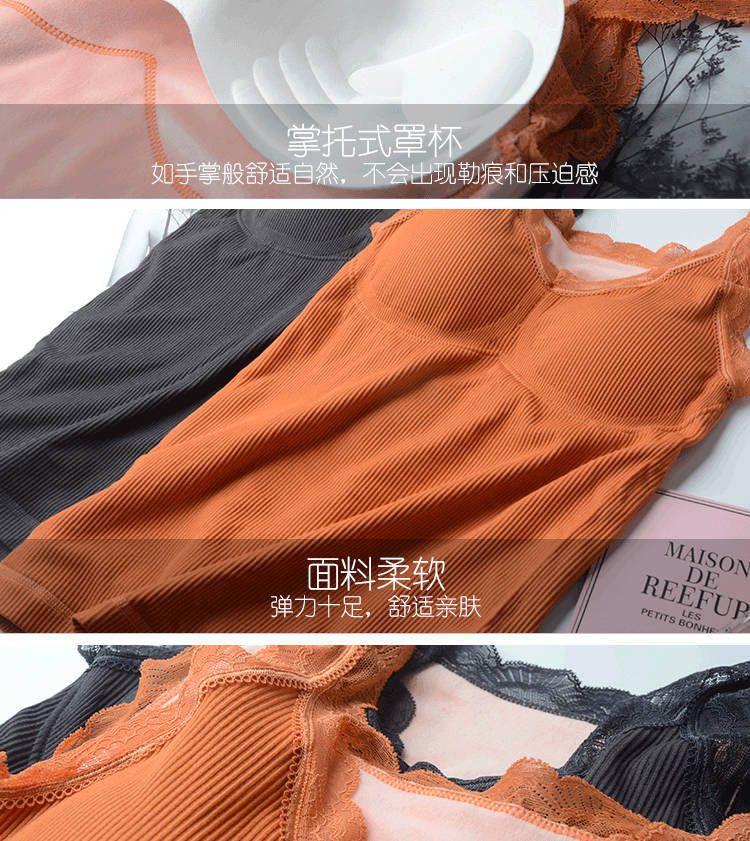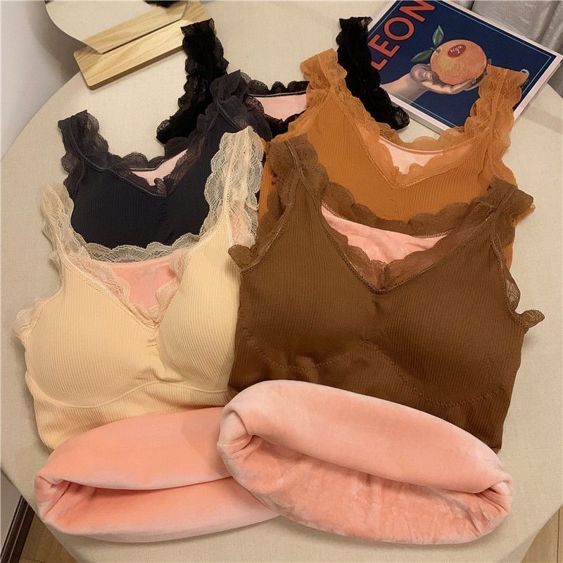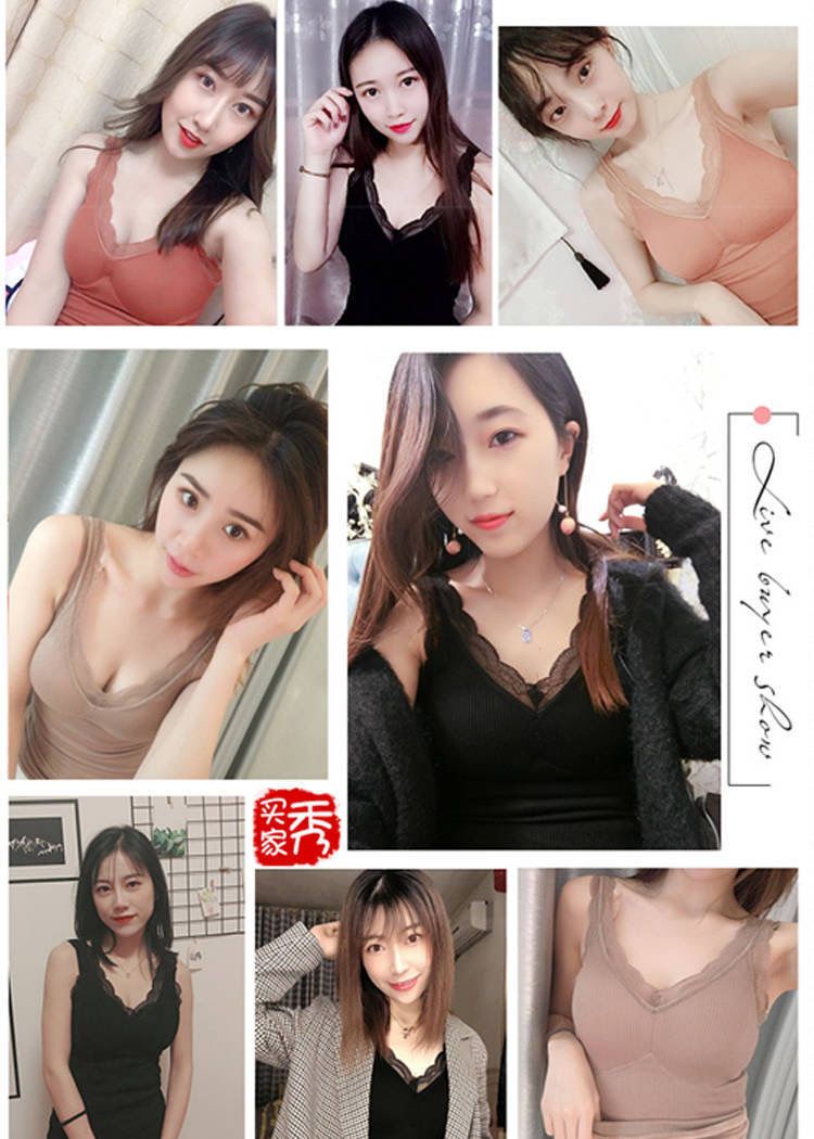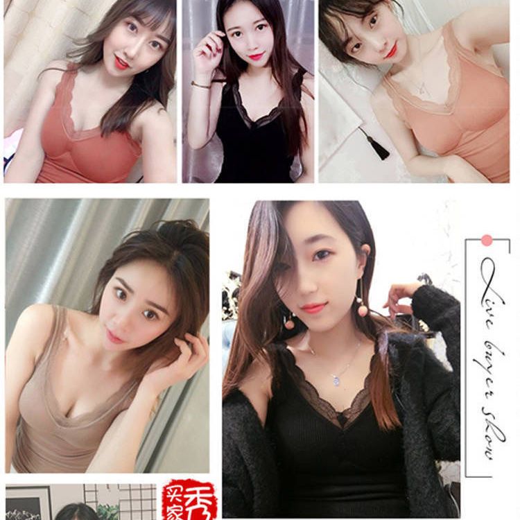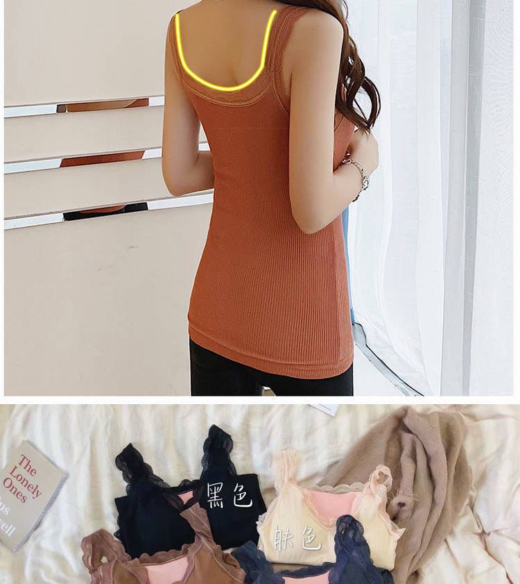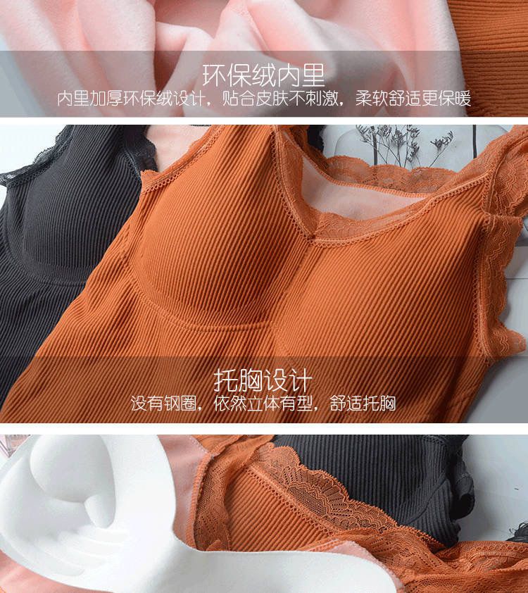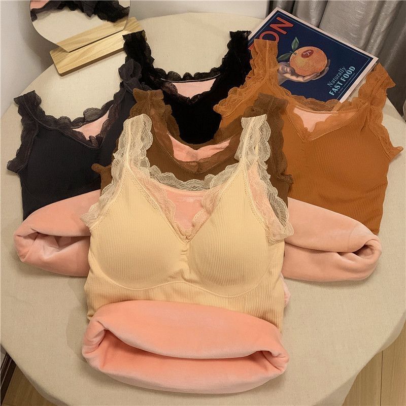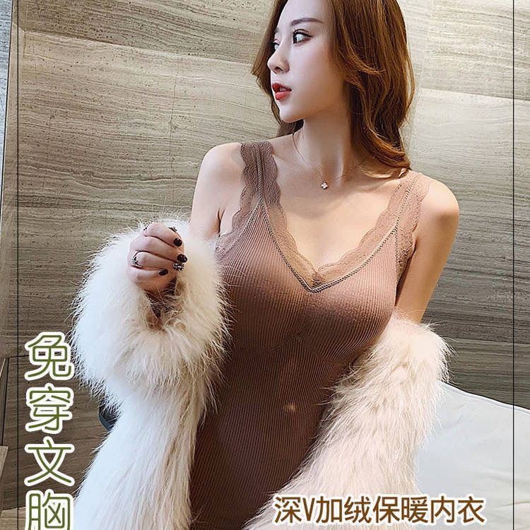 秋冬保暖背心加绒加厚内衣女性感吊带胸垫蕾丝打底衫加肥加大上衣