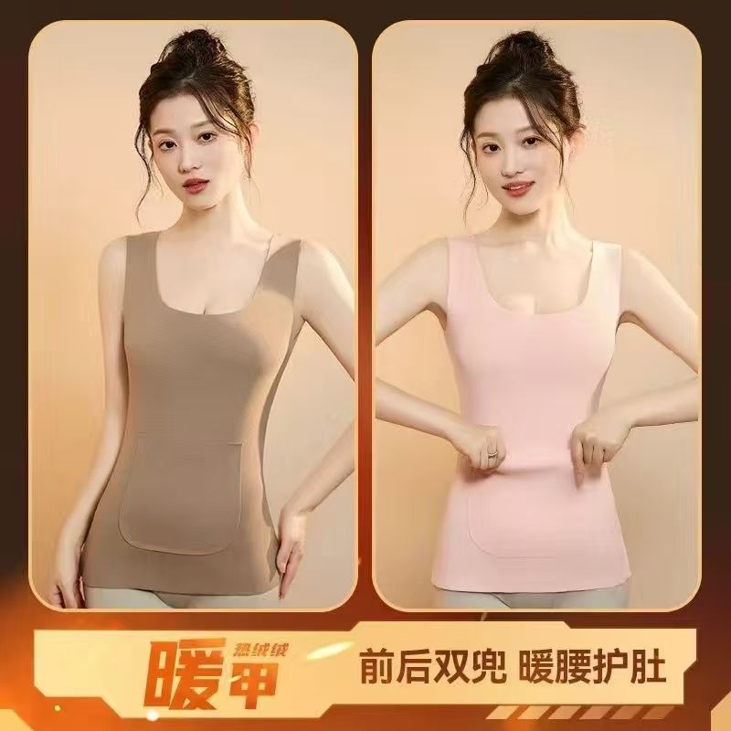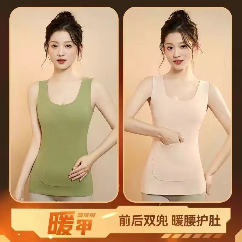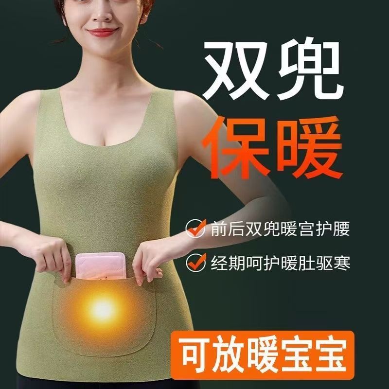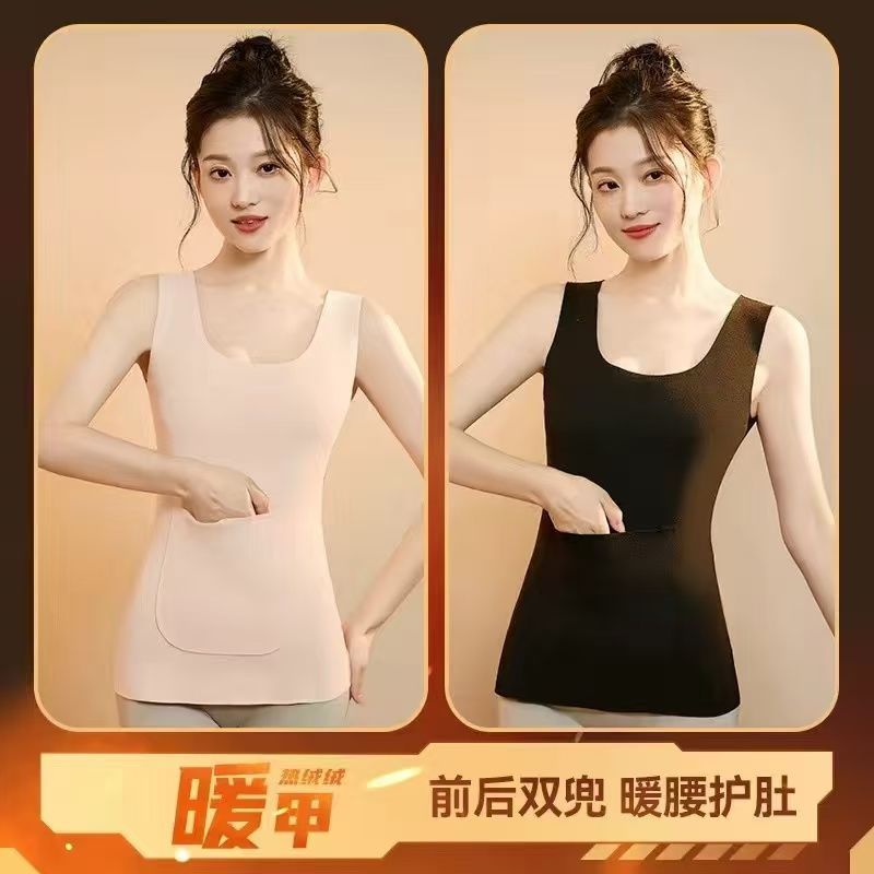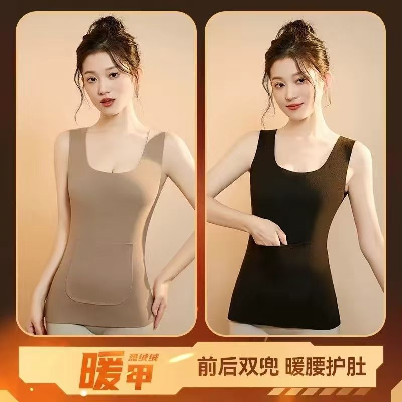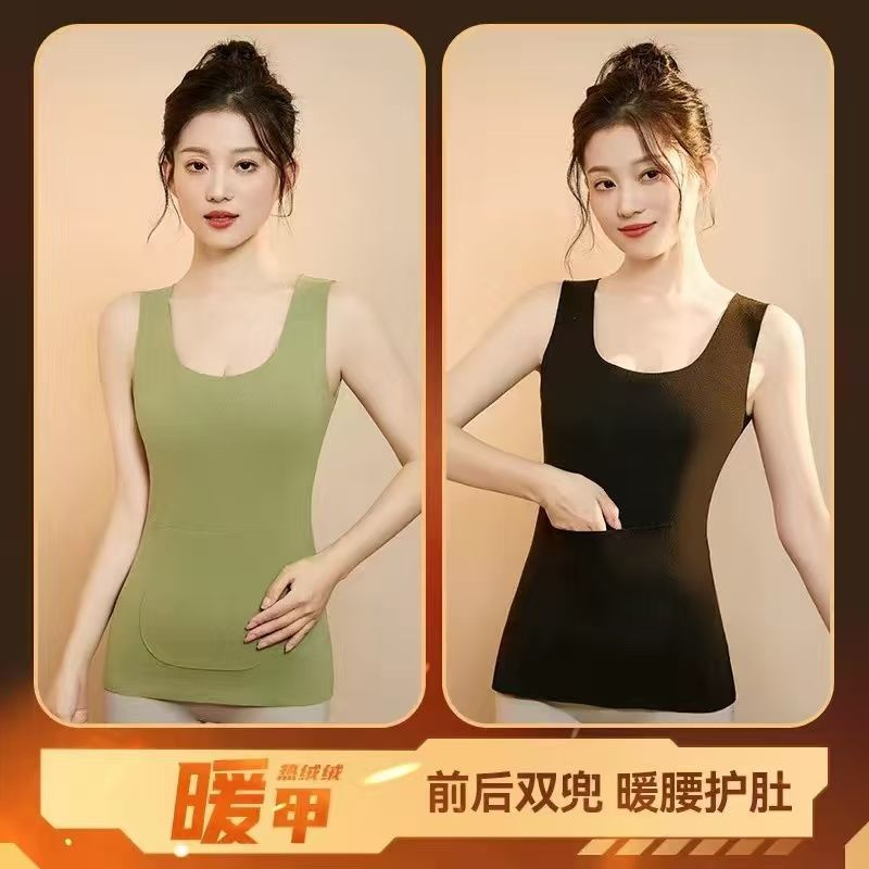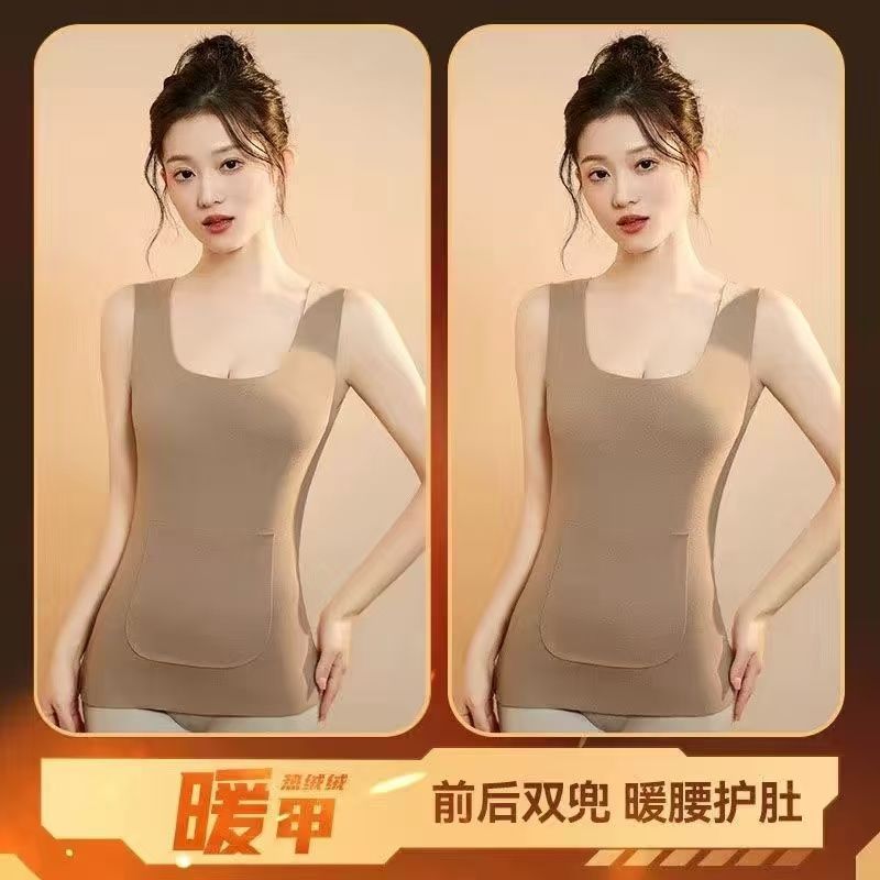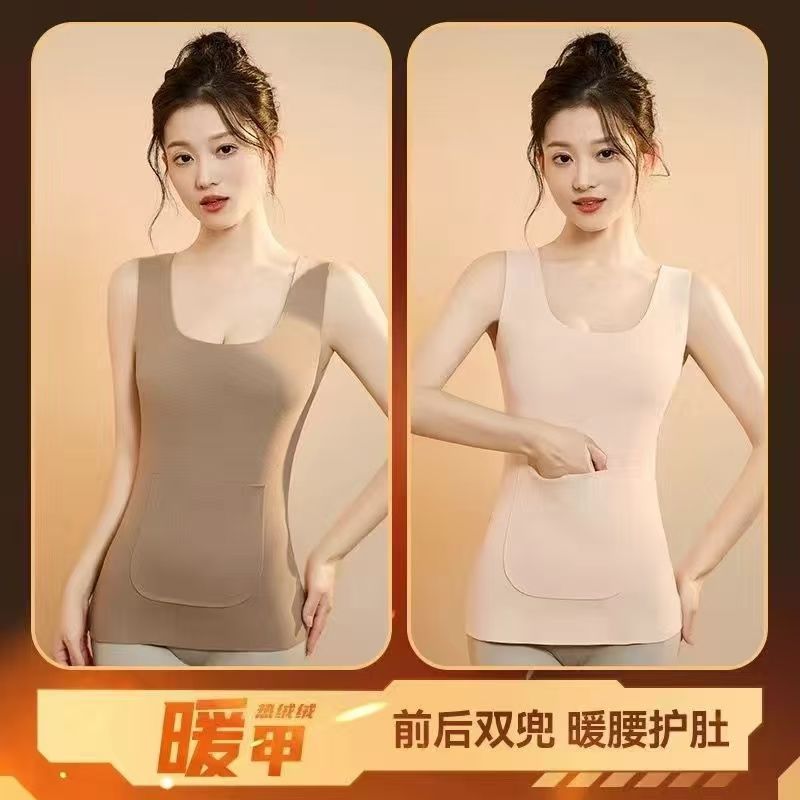 前后双兜保暖背心女护腰护肚防寒暖胃放暖宝宝加绒加厚秋冬打底衫