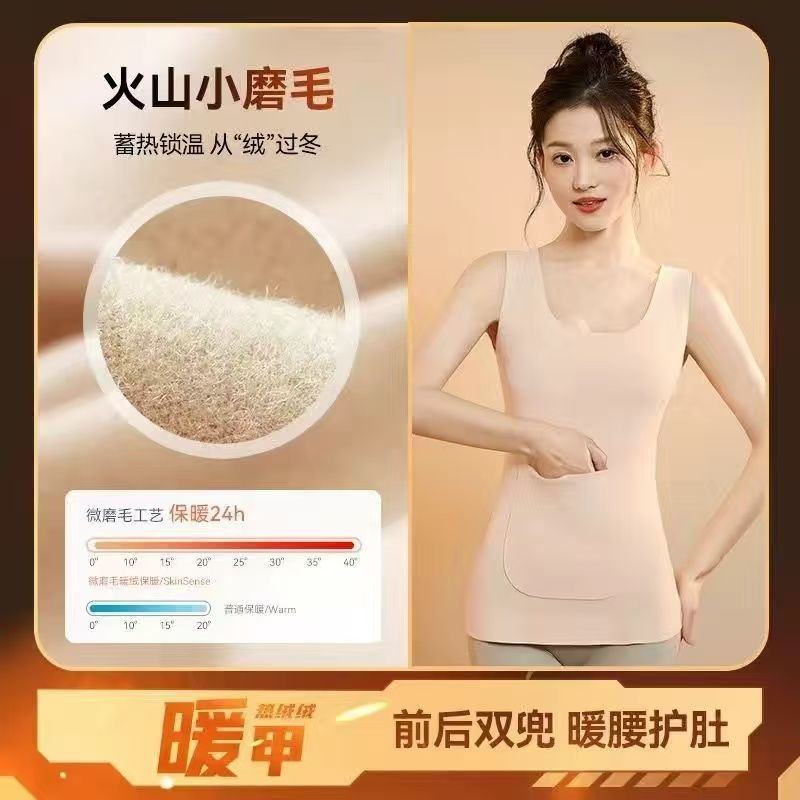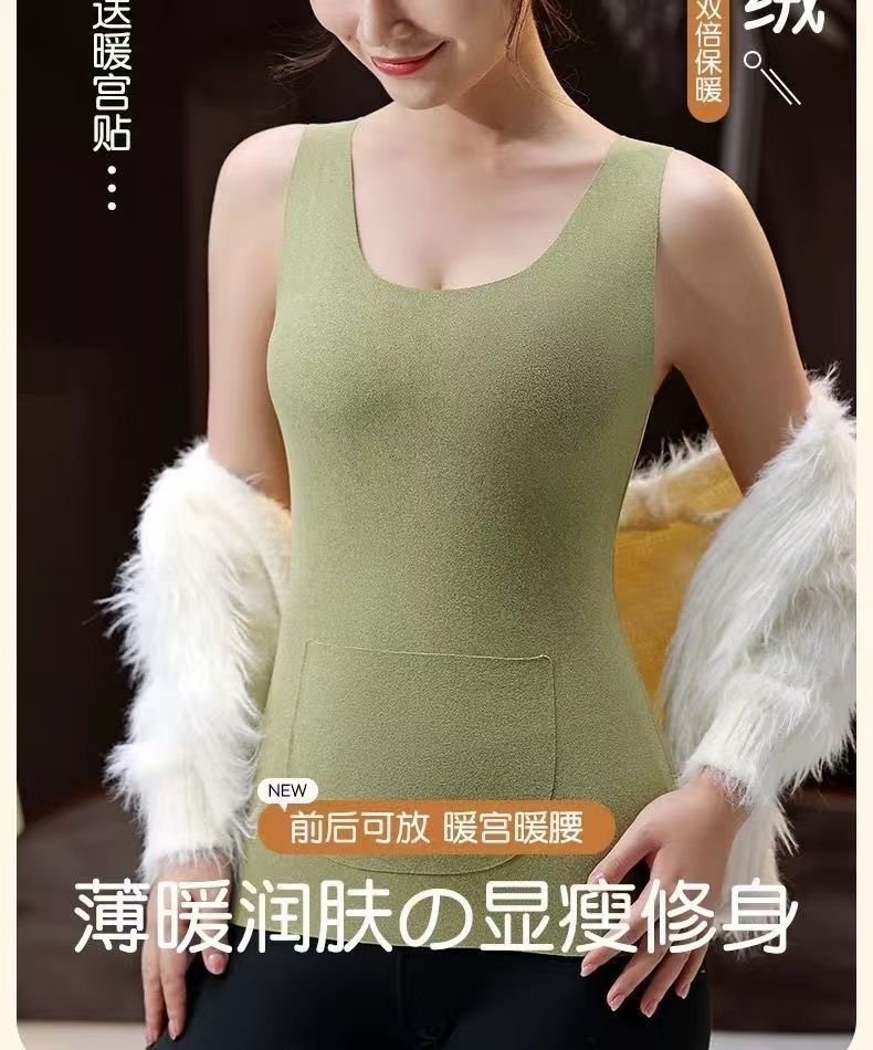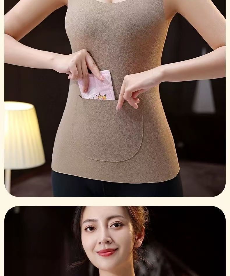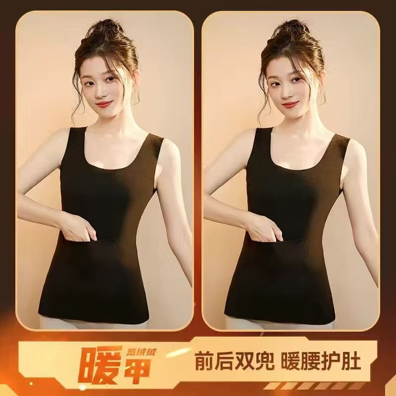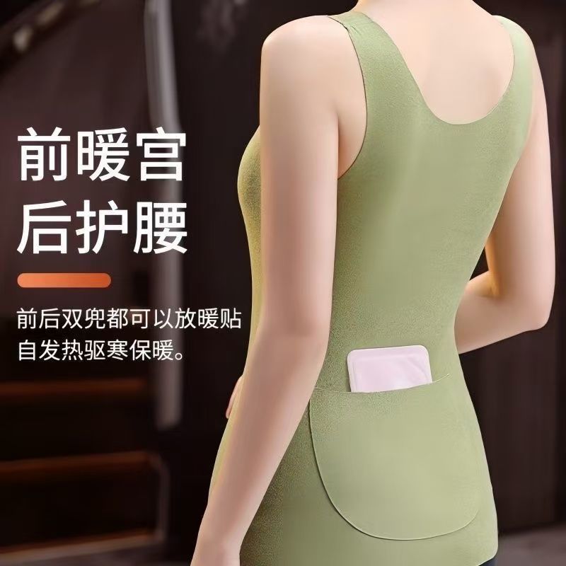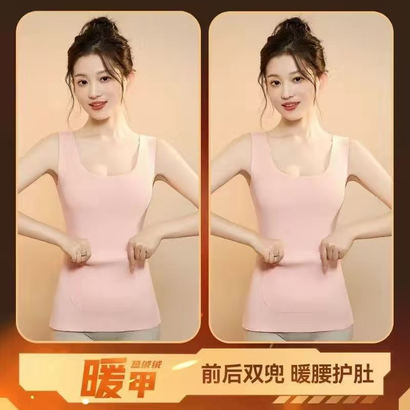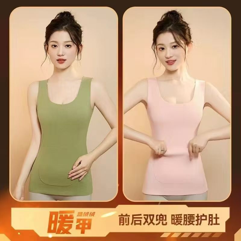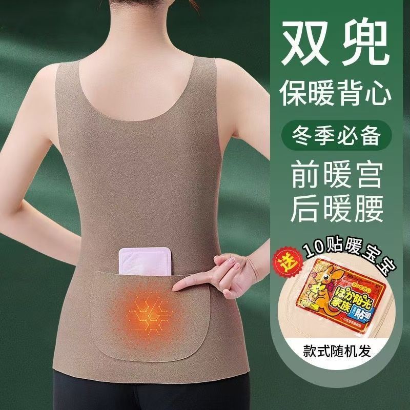 前后双兜保暖背心女护腰护肚防寒暖胃放暖宝宝加绒加厚秋冬打底衫