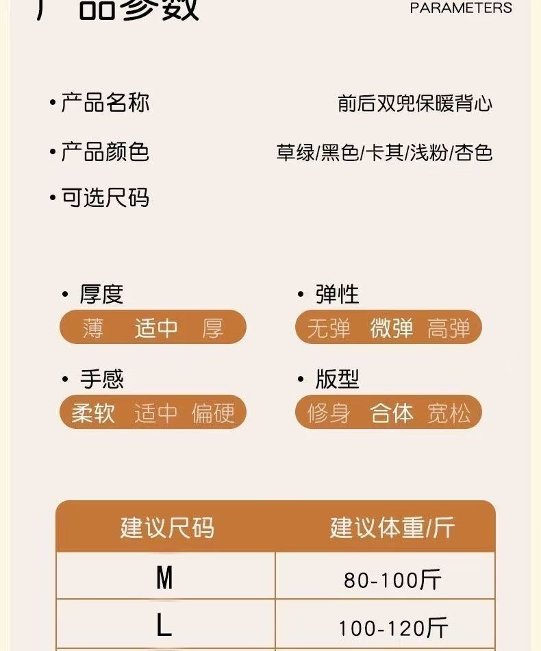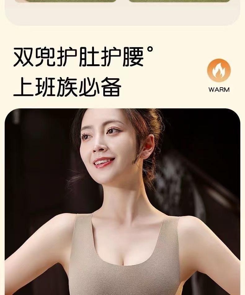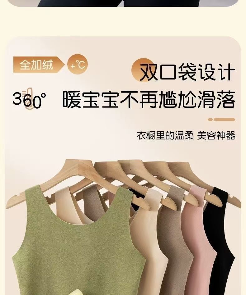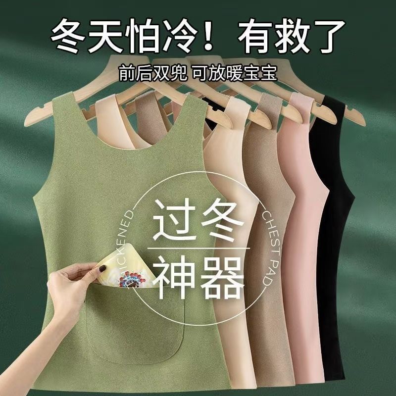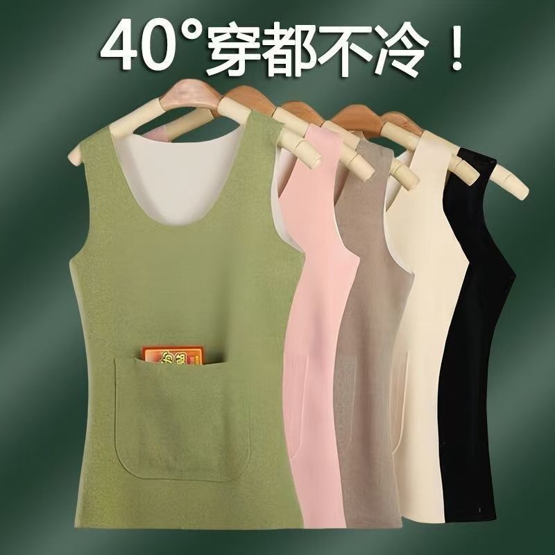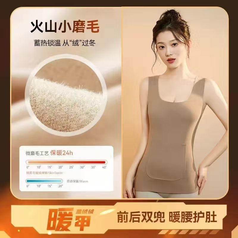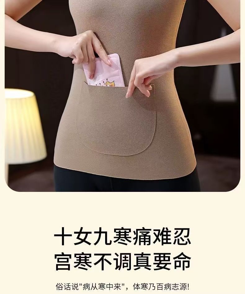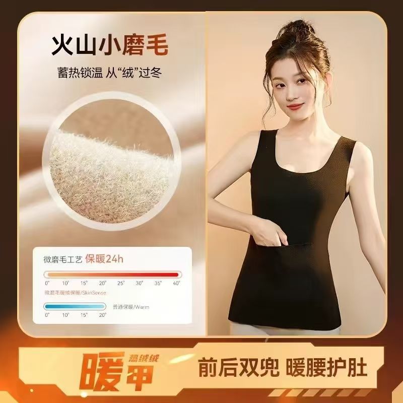 前后双兜保暖背心女护腰护肚防寒暖胃放暖宝宝加绒加厚秋冬打底衫