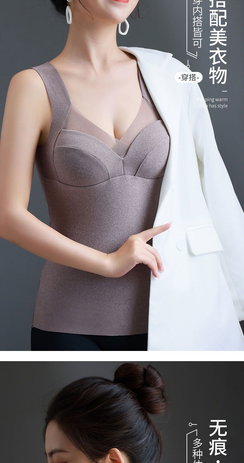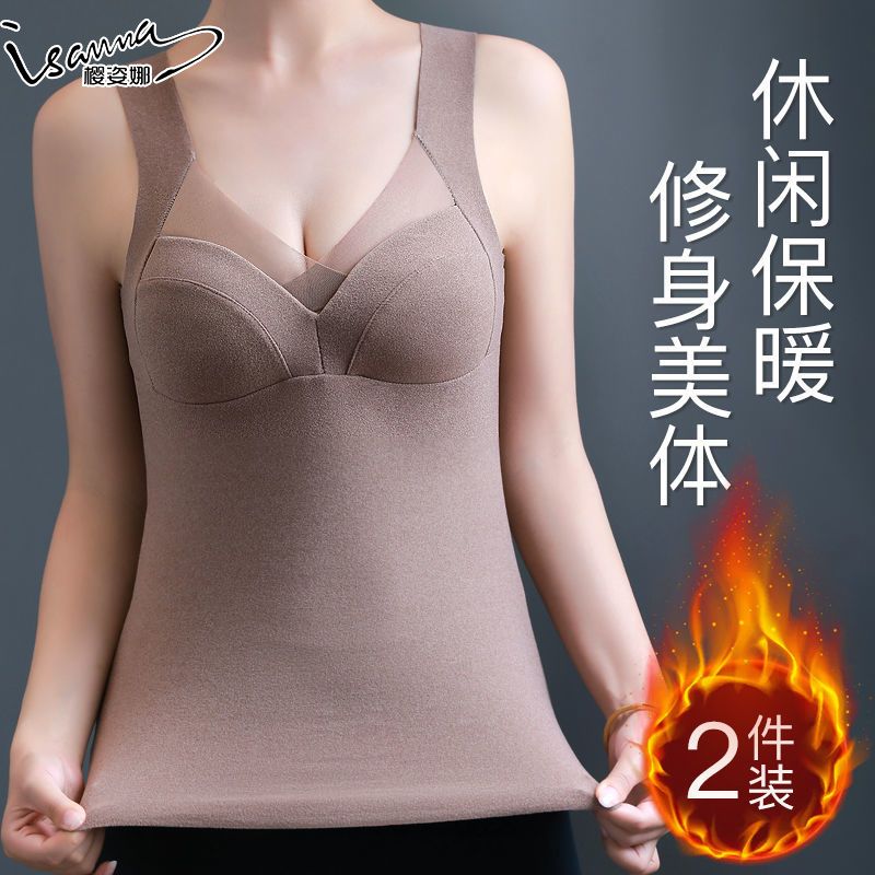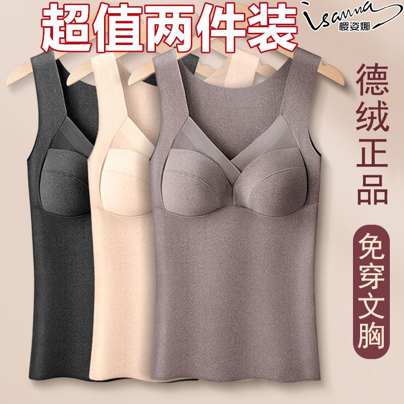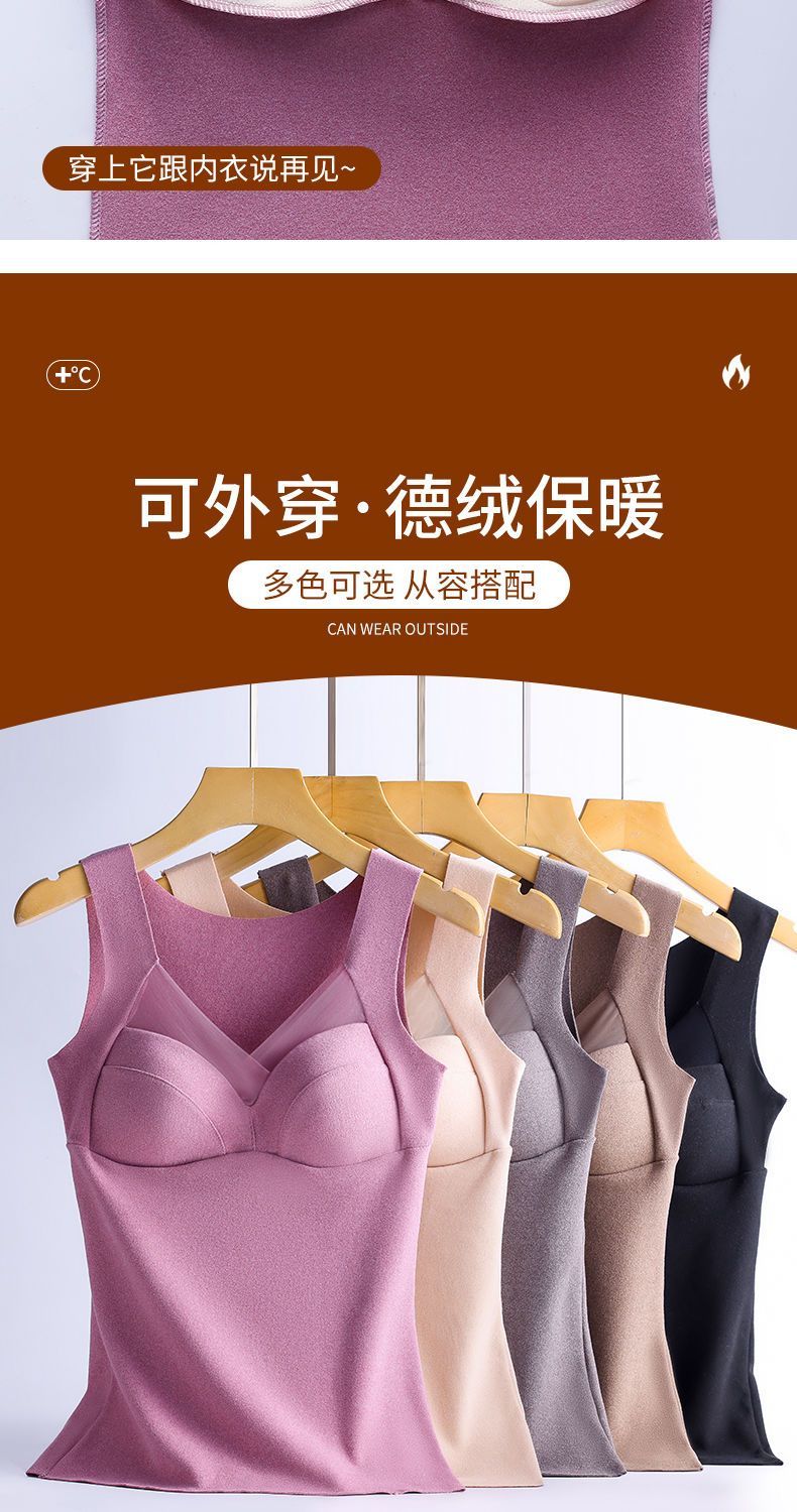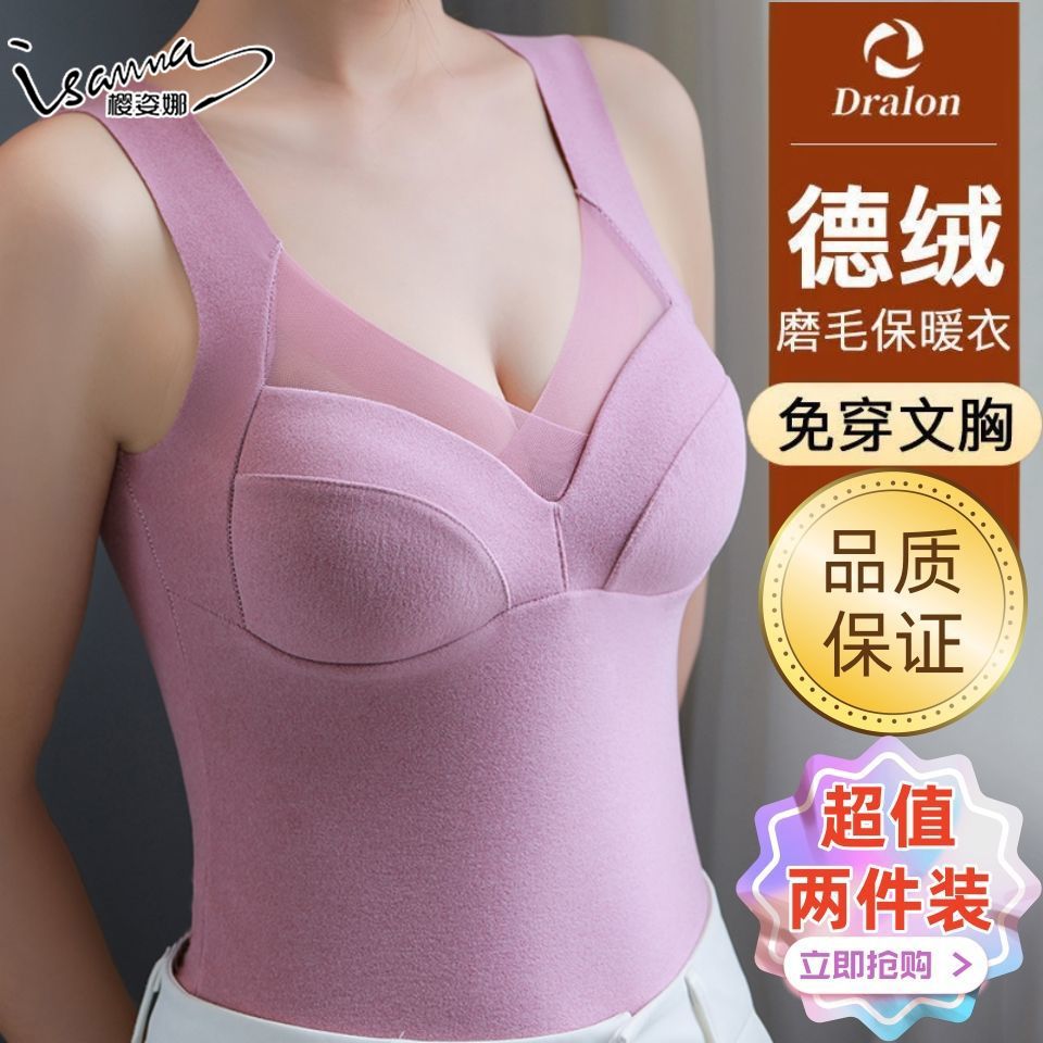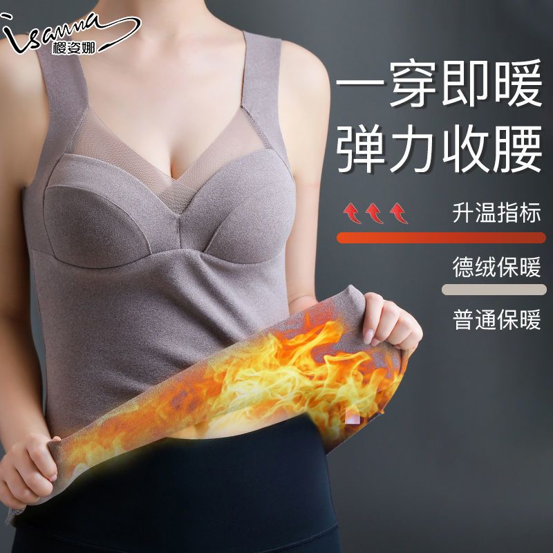 樱姿娜大码德绒保暖内衣女加绒加厚背心女打底衫内搭秋冬保暖衣