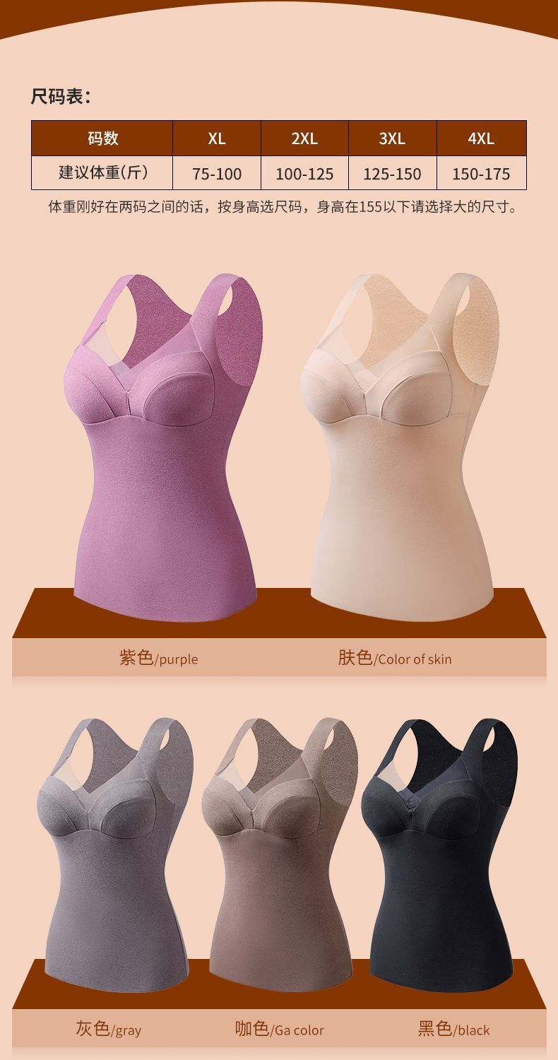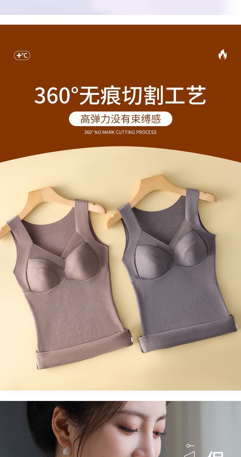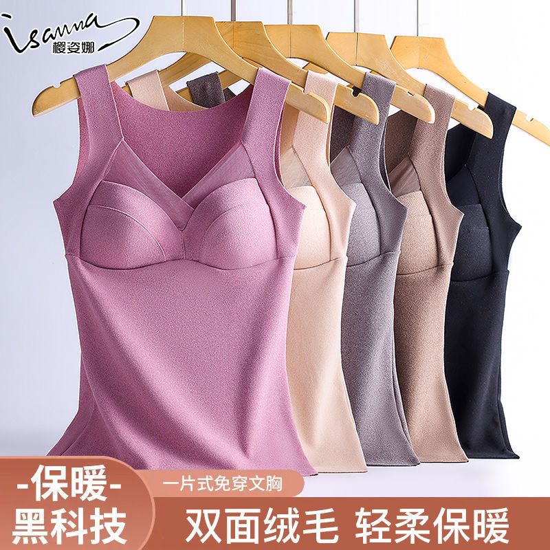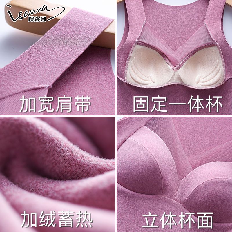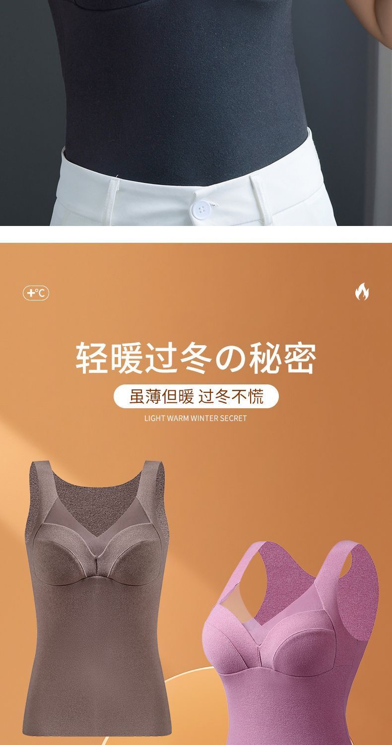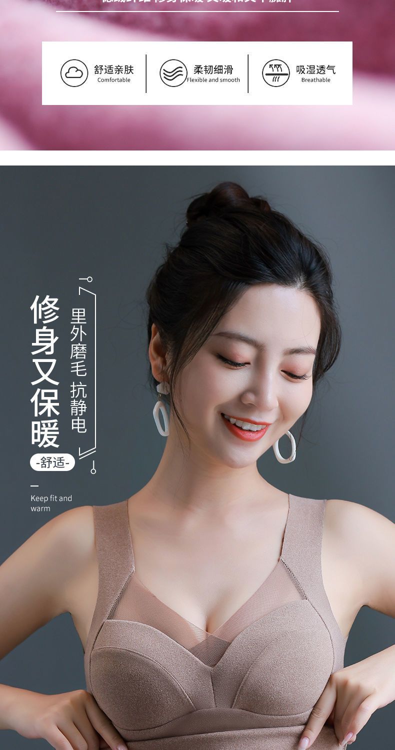 樱姿娜大码德绒保暖内衣女加绒加厚背心女打底衫内搭秋冬保暖衣