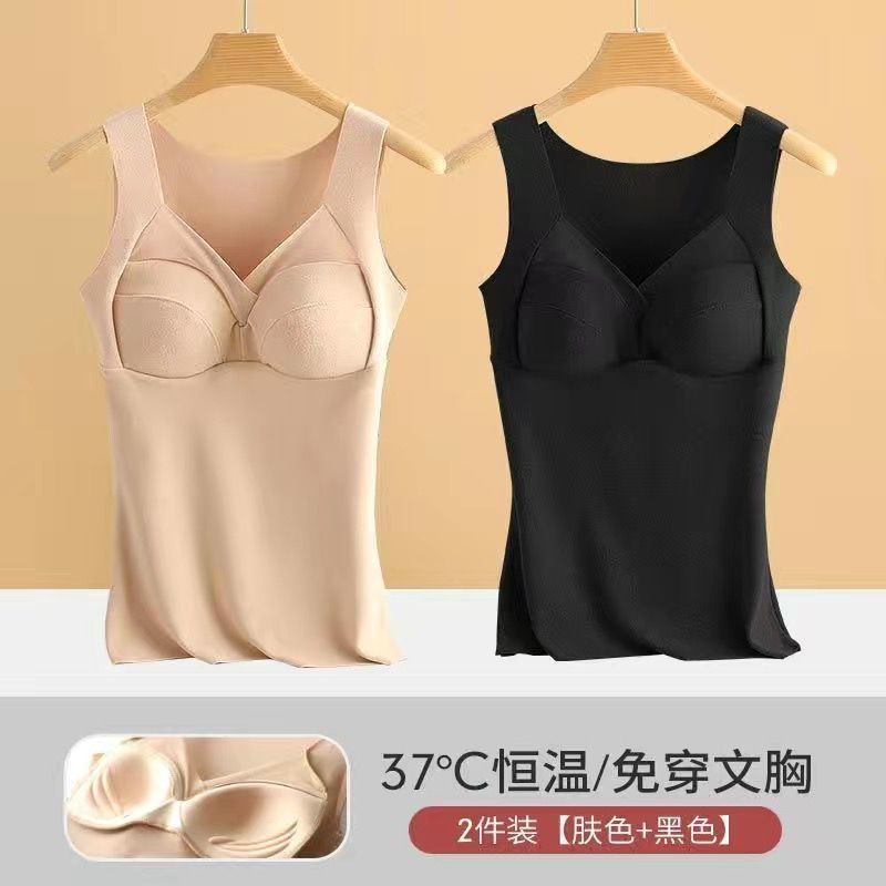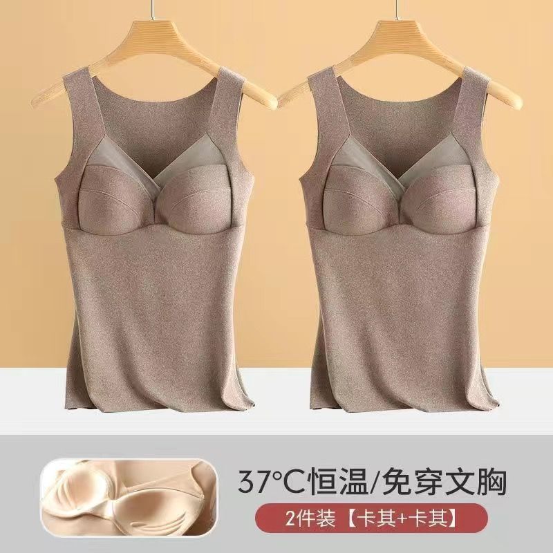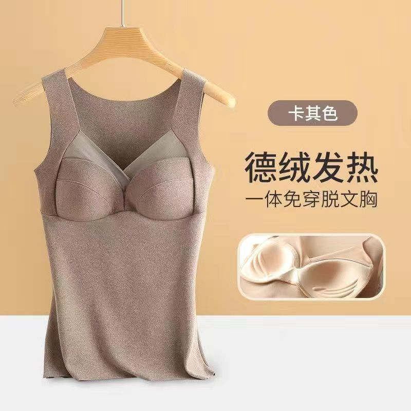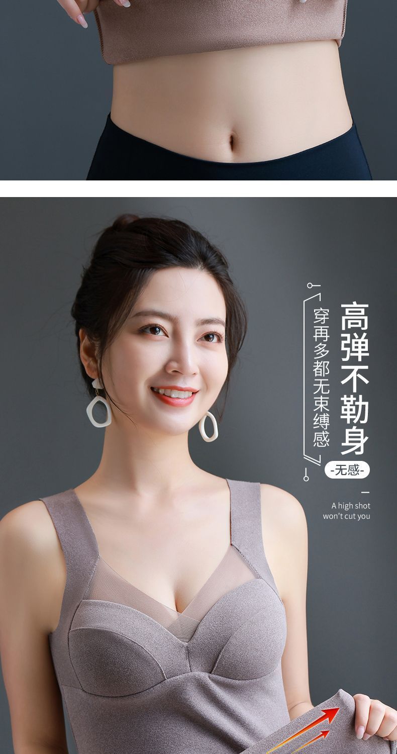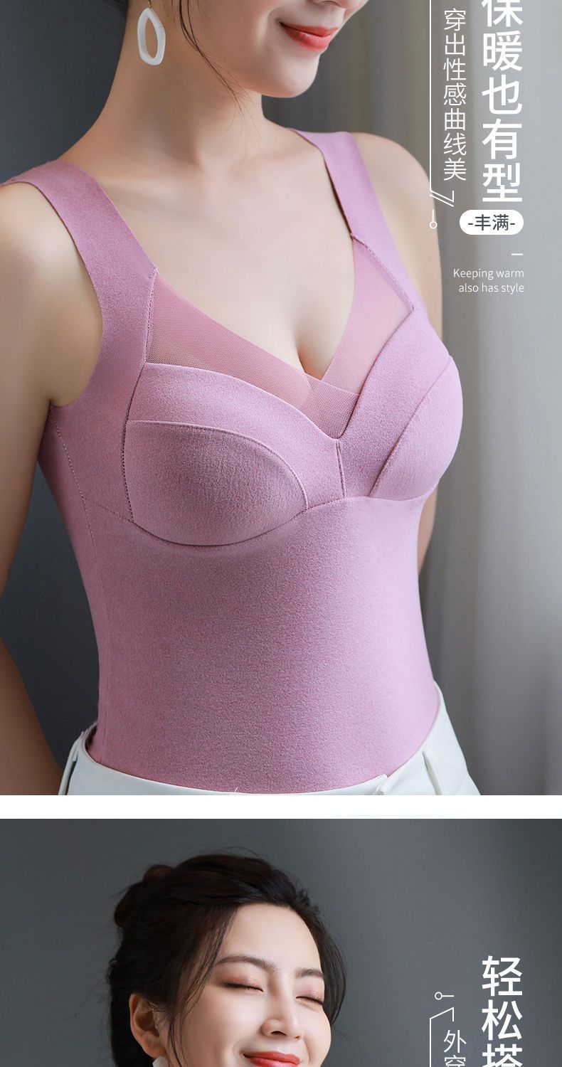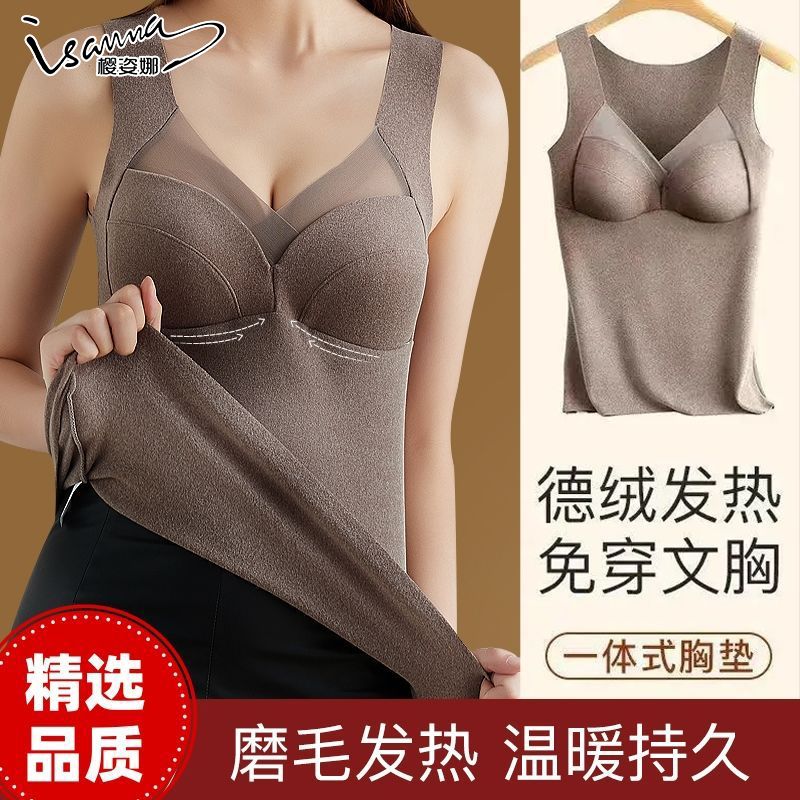 樱姿娜大码德绒保暖内衣女加绒加厚背心女打底衫内搭秋冬保暖衣